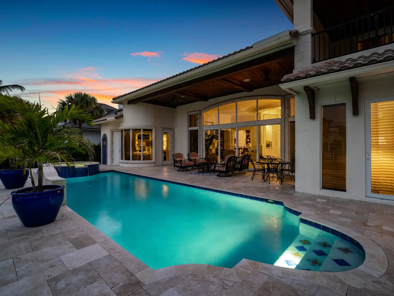 Nestled on one of the many island communities in Ocean Ridge, this stunning home defines the Florida Lifestyle. A desired eastern exposure, this deep water custom home with a 100-foot dock and a 16,000 pound boat lift is a yachtsman's dream. The outdoor entertaining area spills into this majestic home, making this the ultimate place for entertaining. The home boasts a large living area, high-end finishes, fireplace, office, and beautiful pool area, including pool, spa, outdoor shower, and cabana bath. Master suite is located on the lower level and there are 2 guest suites on the second floor with a large balcony with a beautiful view. This home is immaculate and ready for even the most discerning buyer.