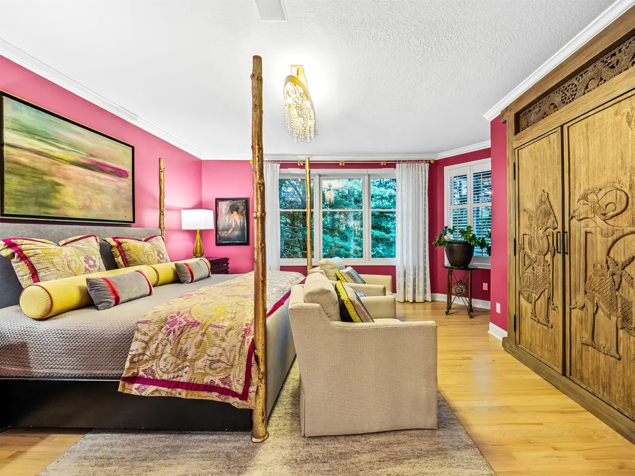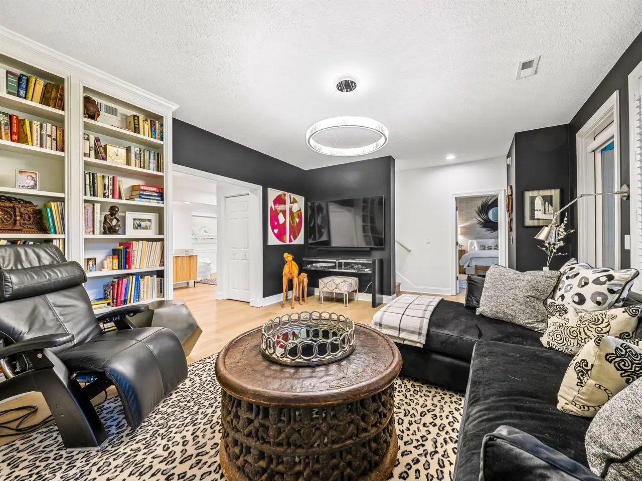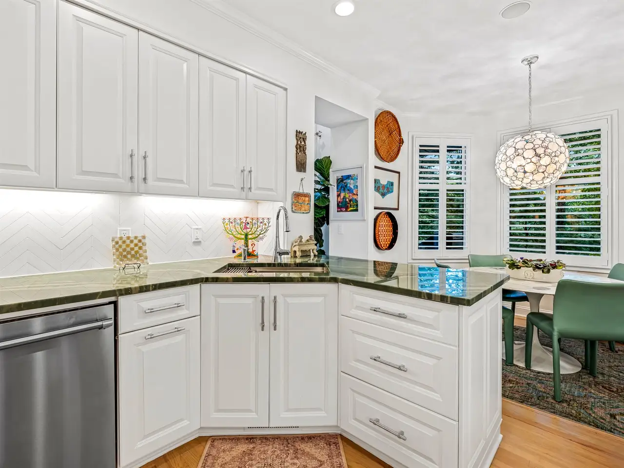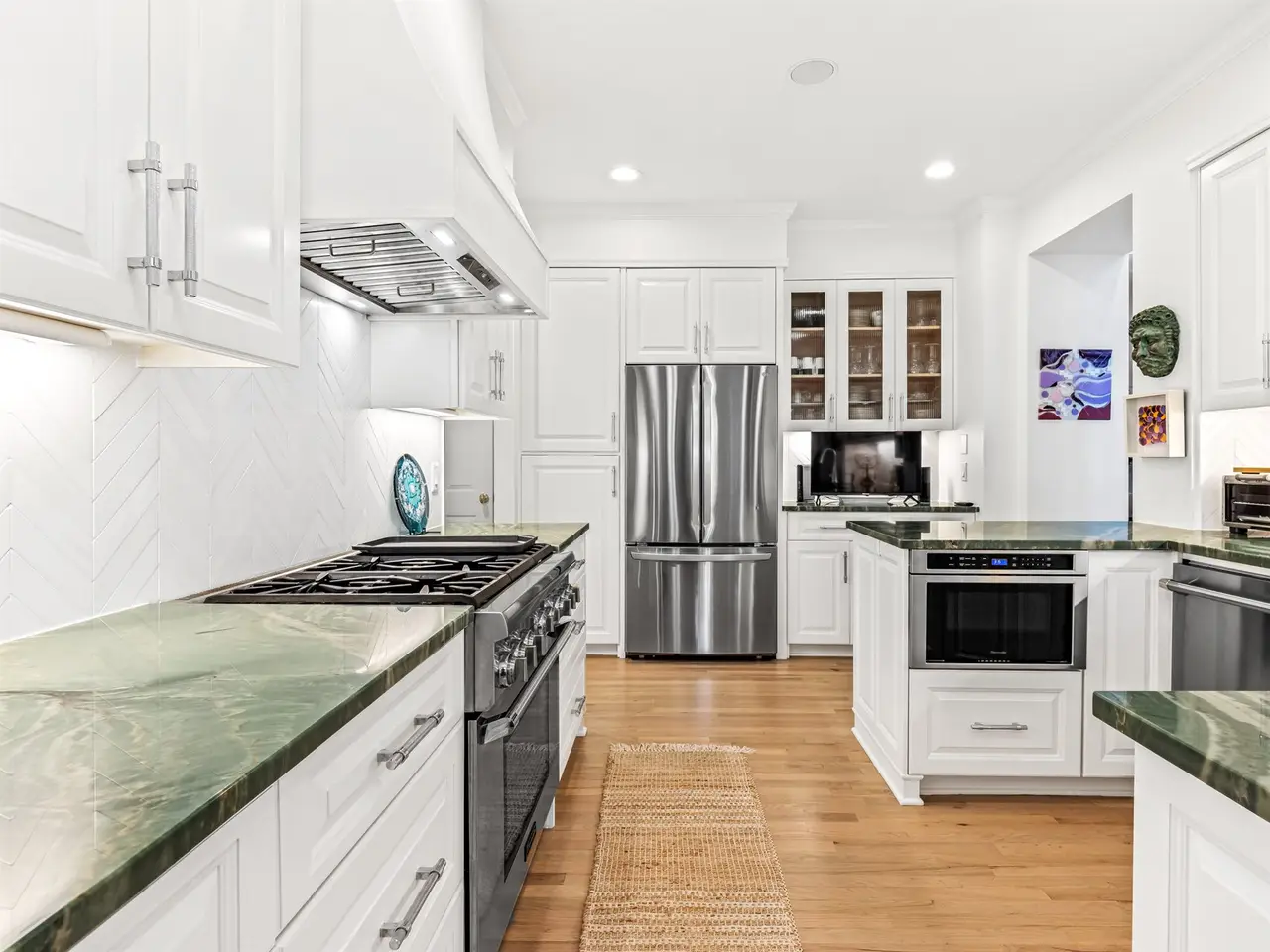 Nestled in Champion Hills above the 12th green, this artist's mountain retreat home pairs modern luxury with an eclectic, world-travel flair. Thoughtful updates and attention to detail bring comfort and style together. From the Samsung Frame TV on a hydraulic TV lift that preserves the aesthetic of the fireplace wall, Brazilian Quartzite countertops in the chef's eat-in kitchen to all the wood floors. The main level's soaring great room and primary suite offer ease of one-level living, while the terrace level is designed for both fun and function with a family room, office, guest suites, and a wet bar. Multiple porches and decks encourage life outdoors - morning coffee on the screened porch, evening wine on the open deck, or quiet afternoons on the covered terrace. Plush yet practical, with golf cart storage, workshop, and abundant space, this home invites you to live serenely in the Blue Ridge Mountains while only minutes from downtown Hendersonville.