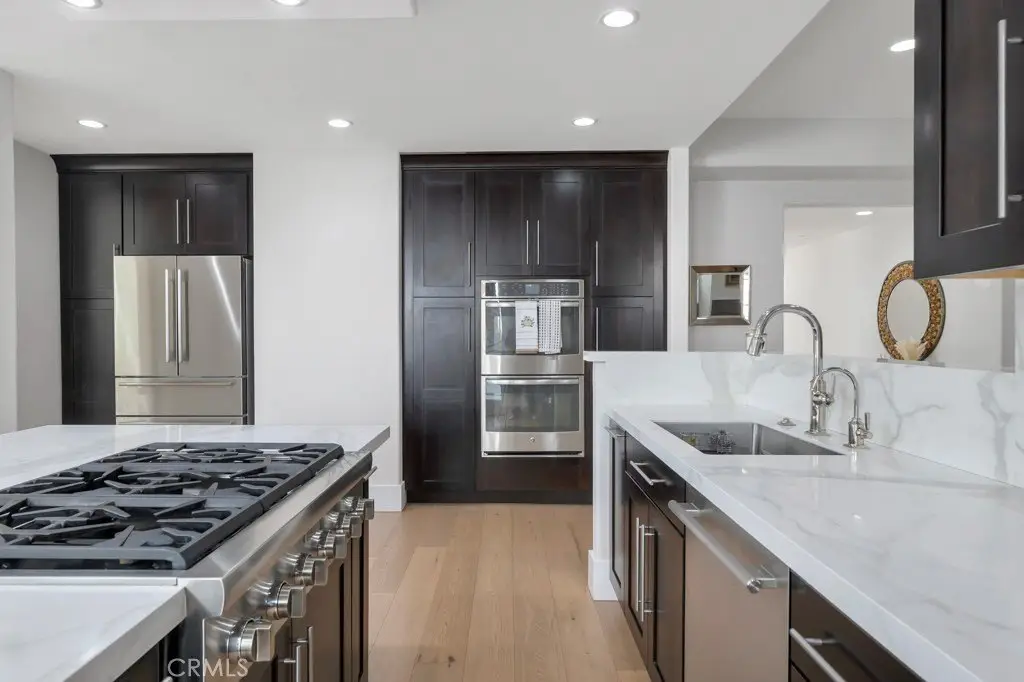 This stunning modern luxury home, offering breathtaking views, features four bedrooms, 4.5 bathrooms, and 4,048 sq. ft. of elegant living space, ideally situated in one of Studio City's most desirable neighborhoods. Thoughtfully designed for sophistication and comfort, the home features an open floor plan with high ceilings, designer finishes, and a gourmet kitchen with a spacious island, custom cabinetry, and top-of-the-line appliances. 3 fireplaces in the main bedroom, living room, and family room. Enjoy engineered wood flooring throughout, plush carpeting in select areas, and beautifully tiled bathrooms. Additional highlights include central air conditioning and heating, a two-car attached garage, solar panels, and a convenient first-floor bedroom with a full bathroom. The expansive primary suite features a walk-in closet & his closet, a spa-inspired bathroom, and a private balcony. Outdoor living shines with a beautifully landscaped yard and a relaxing jacuzzi, perfect for entertaining or unwinding. Conveniently located just a few blocks south of Ventura Blvd, and within proximity to Beverly Hills, the 101 Freeway, top-rated schools, and fine dining, this home perfectly combines modern comfort and timeless elegance.