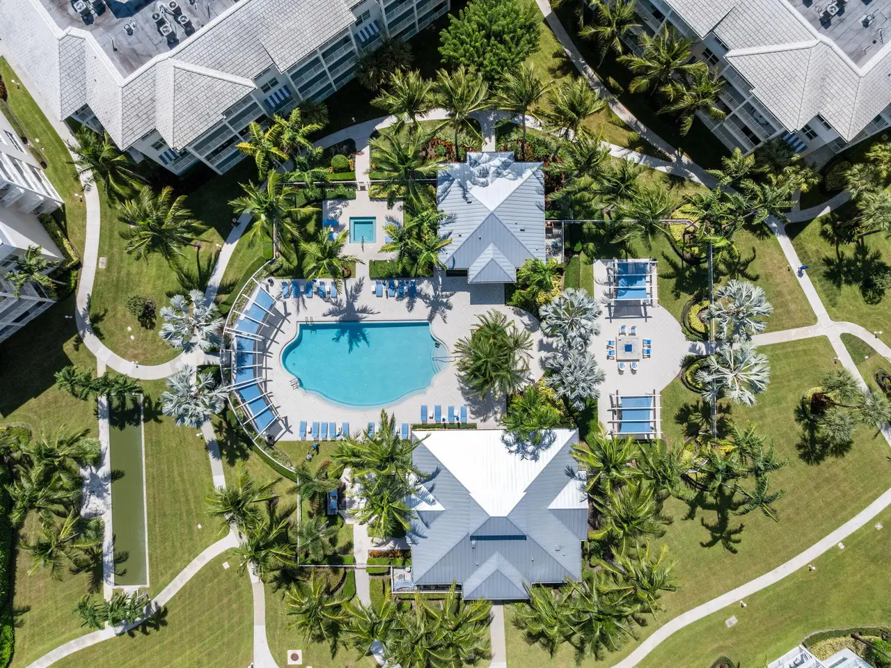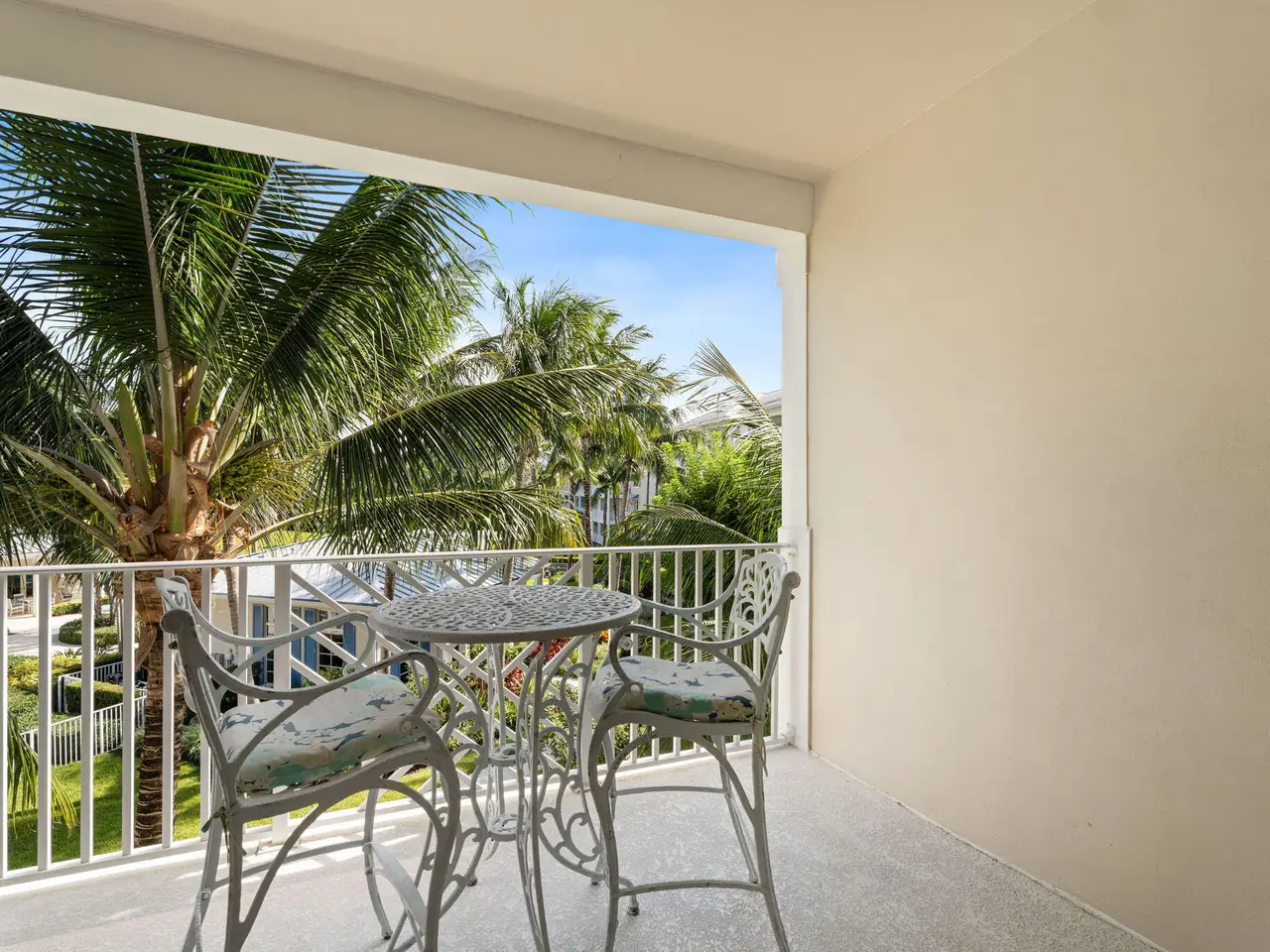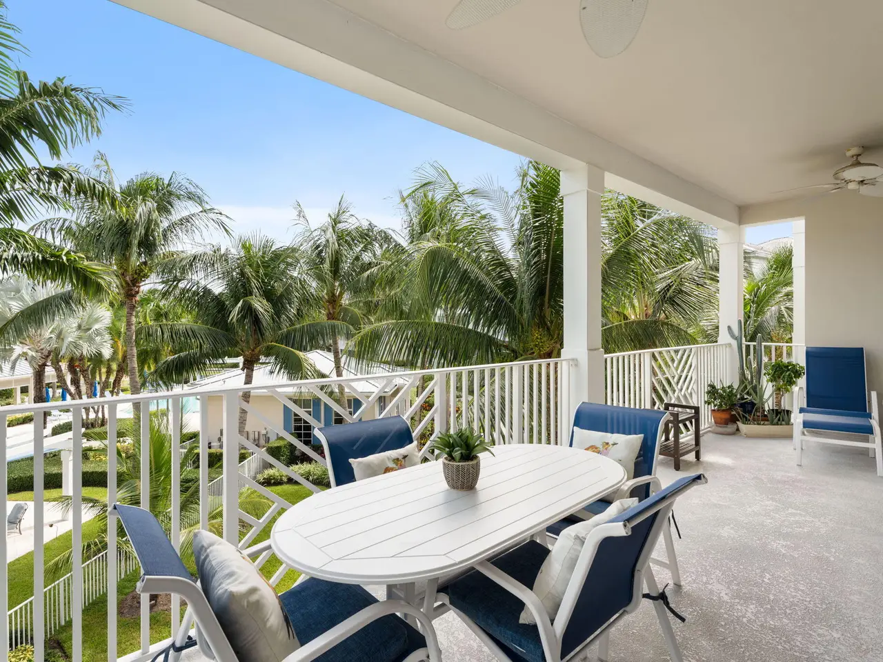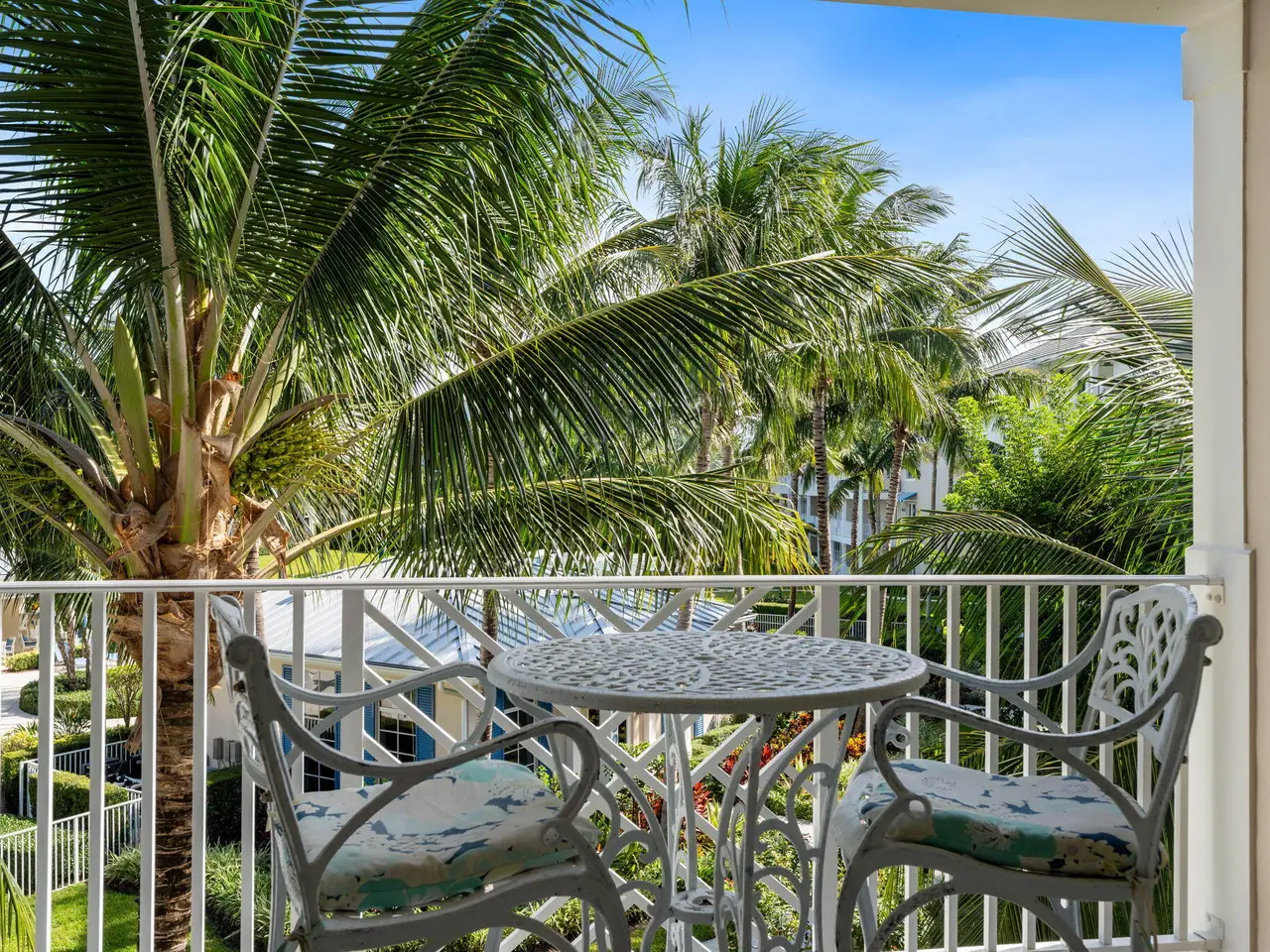 Two balconies with pool views