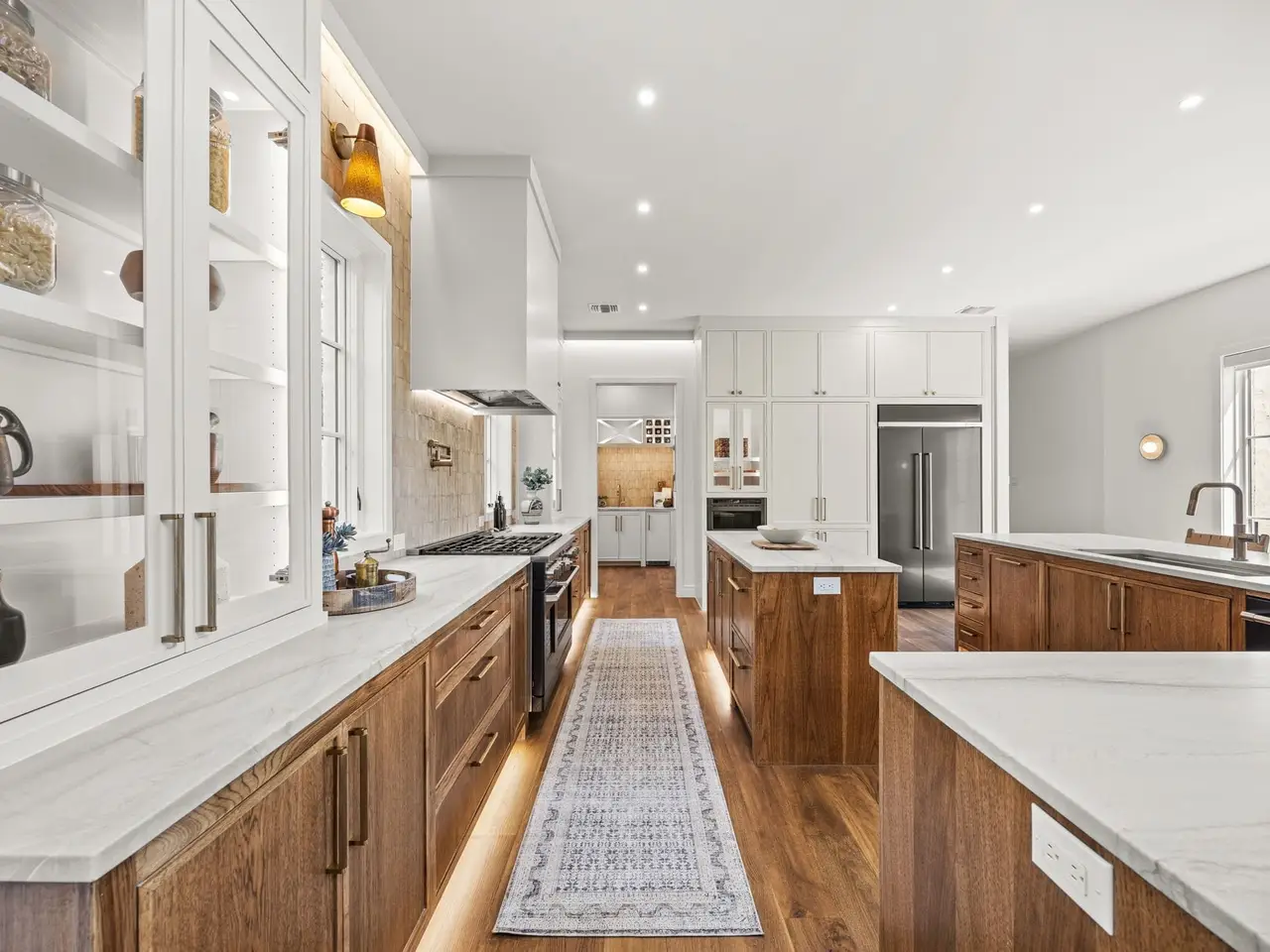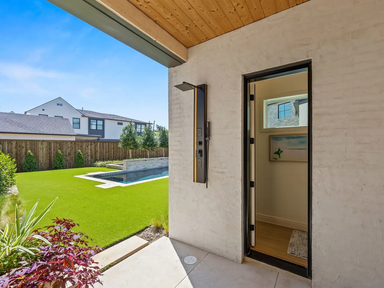 Located within a prestigious Preston Hollow pocket full of architecturally significant and newer homes. This home offers an extraordinary living experience where the floor plan offers a seamless flow from room to room with beautiful spaces to entertain. An outdoor experience awaits with a large pool + spa, expansive living + dining areas with patio screens, outdoor kitchen + outdoor shower + outdoor bath for all seasons enjoyment. The interior showcases warm, organic and earthy materials such as limestone, amber hues, handmade tiles, veined stone, plasters, and cast stone. Smooth walls, clean lines and an open layout enhance the sophistication of the design. Thoughtful lighting adds ambiance and draws attention to expansive art walls ideal for displaying a collection. A Remarkable kitchen features Mykonos stone, imported handmade tile, grass cloth accents, sophisticated cabinet design, bold yet subtle appliances, toe kick and cabinet lighting, prep island with fridge drawers, eat in main island and the kitchen has a working pantry + butler featuring a sonic ice maker, bar ice maker, glass front fridge, wine and bar accessory built ins and unique storage including a special water bottle drawer. The primary suite is located on the 1st floor with striking pool views + a spa experience bathroom + WI closet with cabinet built ins. Split away from the primary is 1 add'l downstairs bedroom and bath. Upstairs has 2 large bedrooms located on 1 wing each with en-suite baths + large closets with tremendous storage. 1 add'l guest bedroom and bath are on the other wing. Living areas downstairs and up offer flexibility for individual needs. Other features include a spacious laundry, fully turfed backyard, epoxy garage floor and 3 spaces, lush landscaping, app controls, video cameras and window shades. Expansive glass walls allows for soothing visuals of beautiful landscaping and a calming pool as your own personal resort. This premier location offers easy access to the area.
