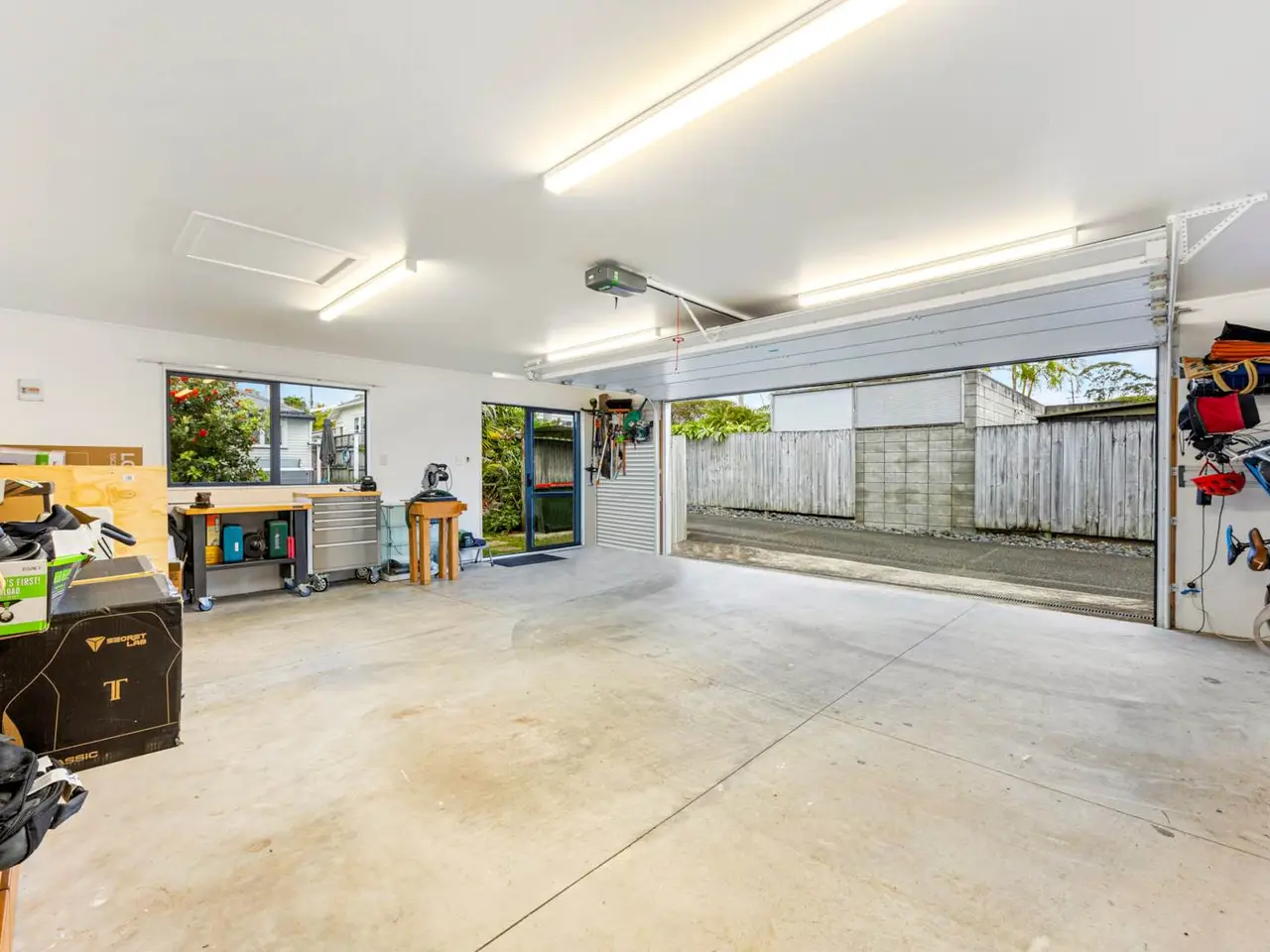 • Fully lined double garage with workshop space