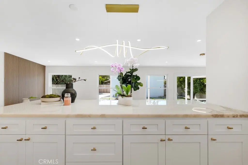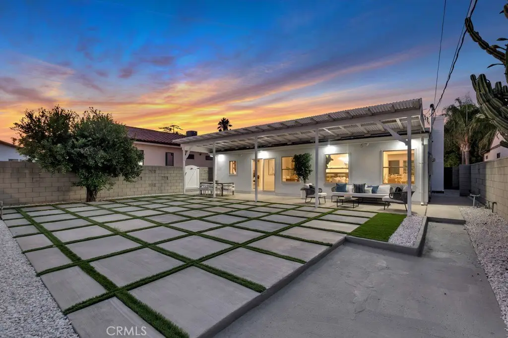 Introducing this beautifully upgraded single-family home in North Hollywood! Spanning 1,650 square feet, this charming residence features 3 bedrooms and 2 bathrooms. Upon entering, you'll be captivated by the exquisite details, including stylish light fixtures, textured walls, and stunning marble countertops. The entire home boasts elegant engineered wood flooring and recessed lighting, creating a warm, inviting ambiance. Step into the cozy living room, complete with a sophisticated fireplace that adds character to the space. The first bathroom, conveniently located in the hallway, showcases a modern design with a floating vanity and a skylight that fills the room with natural light. The primary bedroom includes two spacious closets and an ensuite bathroom for added convenience. The gourmet kitchen is a chef's dream, equipped with a 36-inch professional-grade stove, luxurious marble countertops, a large island, and custom cabinetry. This area flows effortlessly into the open living and dining spaces, making it perfect for entertaining guests. The third bedroom, situated near the dining room, offers flexibility as a potential home office. The thoughtfully designed landscaping and hardscaping enhance the property’s appeal, all framed by a secure perimeter gate that ensures privacy and safety. Additionally, a detached garage at the back presents an exciting opportunity for a fully permitted ADU conversion (approximately 566 sq. ft.), with paid plans available for a 1-bedroom, 1-bathroom unit. This property is move-in ready and ideally located close to the vibrant NoHo Arts District, a variety of shopping and dining options, and major freeways, making it a perfect blend of luxury living and future income potential. Don’t miss out on this incredible opportunity!