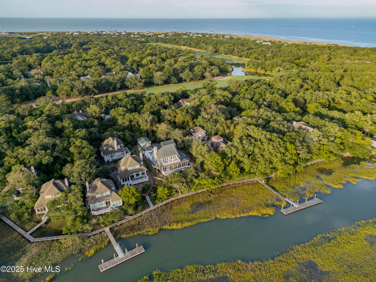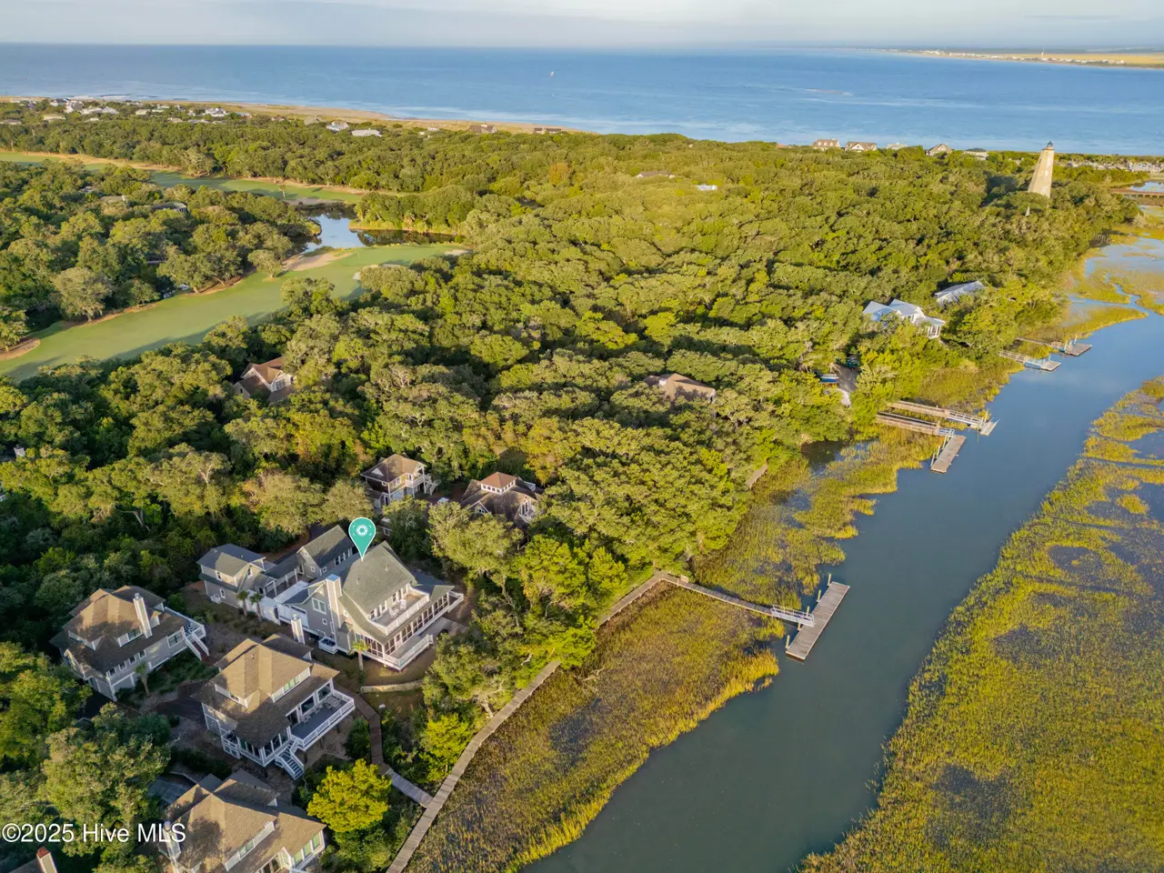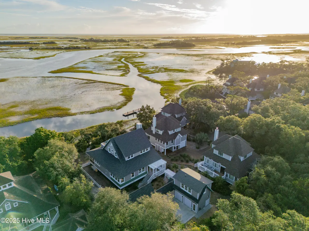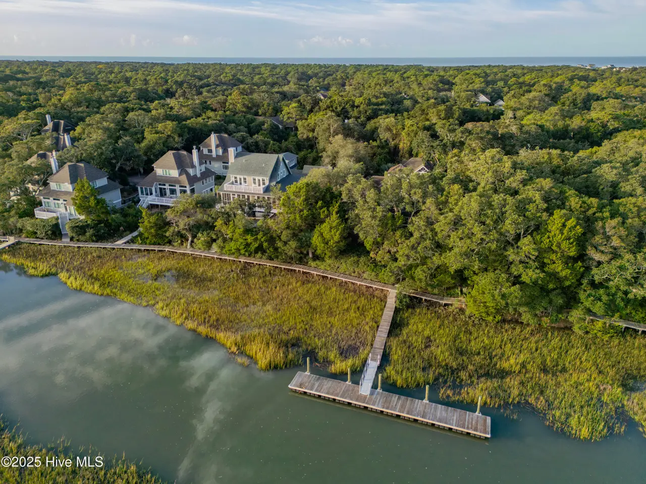 ''There's this One Particular Harbor, so far and yet so near...'' Let the aptly named ''One Particular Harbor'' transport you to a special place on Bald Head. Thoughtfully designed for family gatherings and coastal living, this exceptional waterfront compound features three separate dwellings- a spacious main home and 2 charming crofter cottages, gracefully arranged around a serene central courtyard.Perched on a bluff overlooking Bald Head Creek, this property enjoys the security of an ''X'' flood zone, meaning no flood insurance is required. Step outside to your private deep-water dock, bring your boat home after a day exploring. Kayaki, fish, or crab right from your backyard, where adventure and tranquility meet.From both levels of this newly completed custom home, the panoramic creek and marsh views are breathtaking. With creek access just steps from your door, you don't just admire the scenery -- you are immersed in it.A full-width screened porch beckons you for morning coffee as the sun rises over the tidal marsh, and is the perfect spot for evening alfresco dining over the creek.Six bedrooms + sleeping loft, offers generous space and privacy for family and guests. Unwind in your cedar sauna with Swedish Polar heater, or curl up with a good book in one of the many cozy nooks.Location is everything, and this one is unmatched -- just a 3-minute walk to the marina, restaurants, entertainment, ferry landing and Old Baldy.Expert design by Dan Costa, engineering by Woods, crafted by Cape Fear Design and Build, completed in 2024. Every detail speaks to quality. Custom maple hardwood furniture, perfectly complements the relaxed yet refined coastal style. This exquisite home is offered fully furnished (minor exclusions) Shoals membership is available separately; Sellers to transfer their BHI waitlist position with membership anticipated spring of 2026. ''One Particular Harbor'' is more than a home; it is a front row seat to the beauty of Bald Head