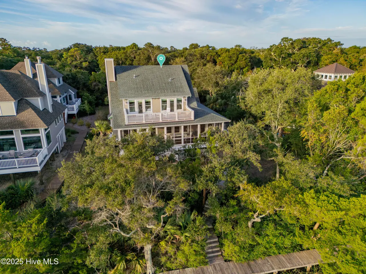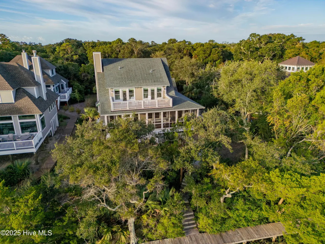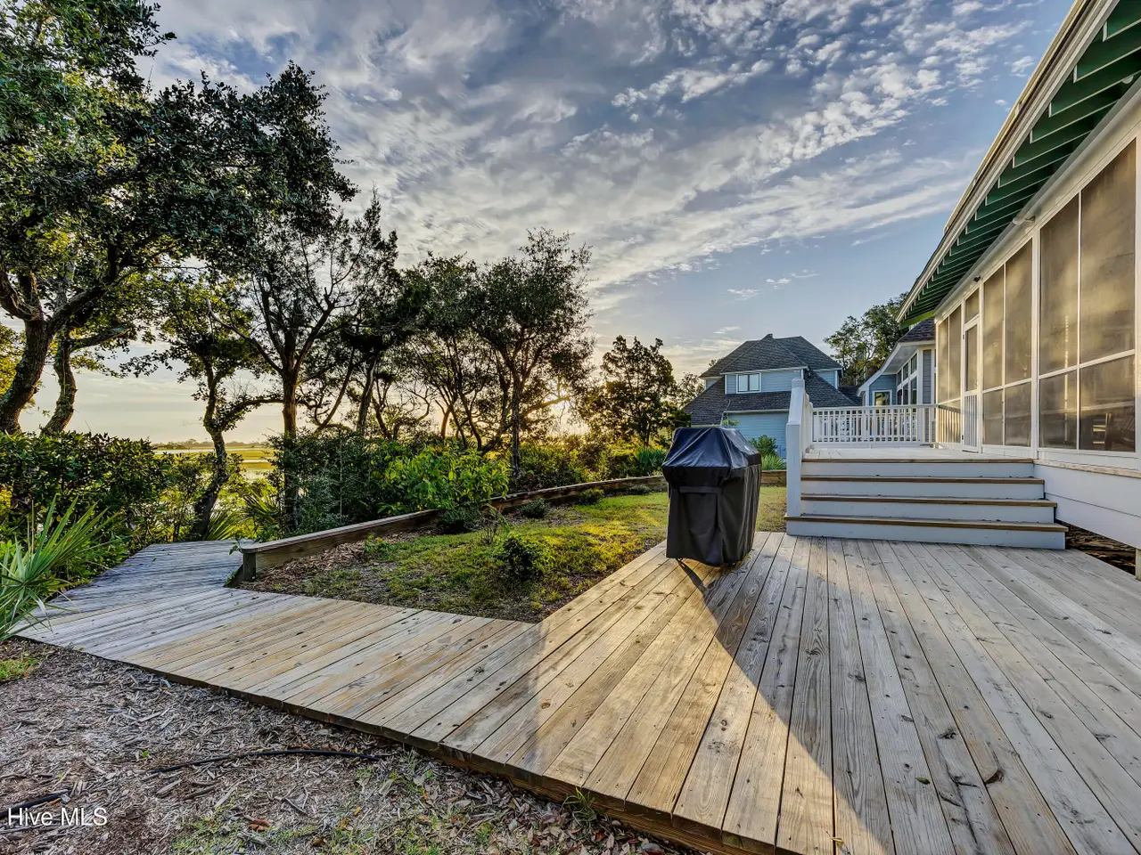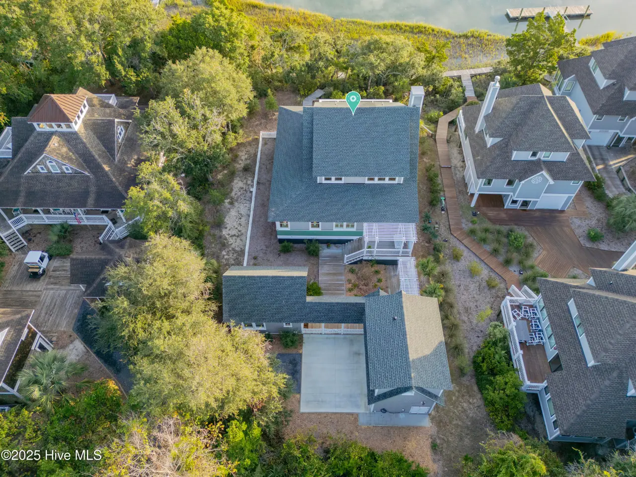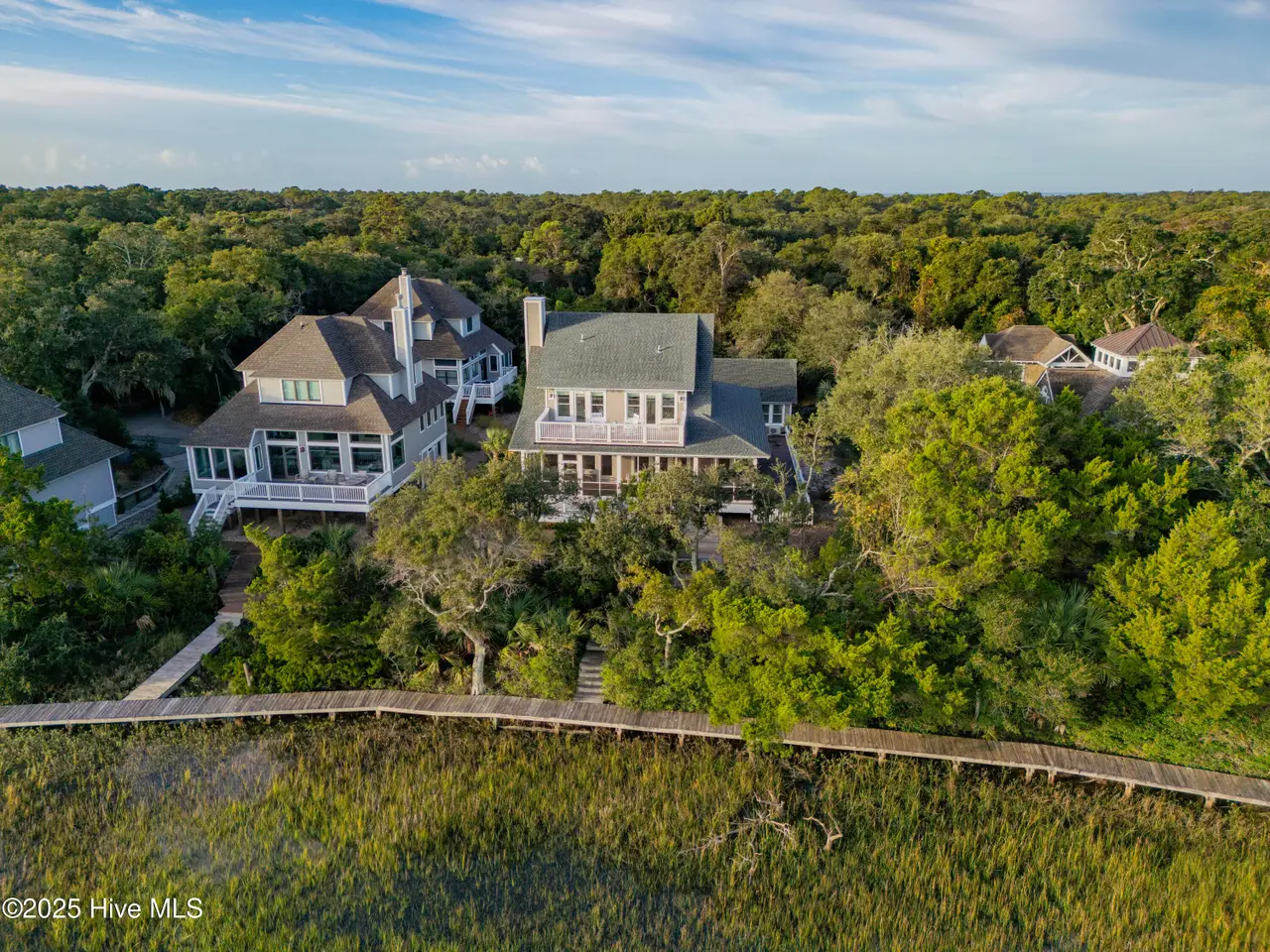 ''There's this One Particular Harbor, so far and yet so near...'' Let the aptly named ''One Particular Harbor'' transport you to a special place on Bald Head. Thoughtfully designed for family gatherings and coastal living, this exceptional waterfront compound features three separate dwellings- a spacious main home and 2 charming crofter cottages, gracefully arranged around a serene central courtyard.Perched on a bluff overlooking Bald Head Creek, this property enjoys the security of an ''X'' flood zone, meaning no flood insurance is required. Step outside to your private deep-water dock, bring your boat home after a day exploring. Kayaki, fish, or crab right from your backyard, where adventure and tranquility meet.From both levels of this newly completed custom home, the panoramic creek and marsh views are breathtaking. With creek access just steps from your door, you don't just admire the scenery -- you are immersed in it.A full-width screened porch beckons you for morning coffee as the sun rises over the tidal marsh, and is the perfect spot for evening alfresco dining over the creek.Six bedrooms + sleeping loft, offers generous space and privacy for family and guests. Unwind in your cedar sauna with Swedish Polar heater, or curl up with a good book in one of the many cozy nooks.Location is everything, and this one is unmatched -- just a 3-minute walk to the marina, restaurants, entertainment, ferry landing and Old Baldy.Expert design by Dan Costa, engineering by Woods, crafted by Cape Fear Design and Build, completed in 2024. Every detail speaks to quality. Custom maple hardwood furniture, perfectly complements the relaxed yet refined coastal style. This exquisite home is offered fully furnished (minor exclusions) Shoals membership is available separately; Sellers to transfer their BHI waitlist position with membership anticipated spring of 2026. ''One Particular Harbor'' is more than a home; it is a front row seat to the beauty of Bald Head