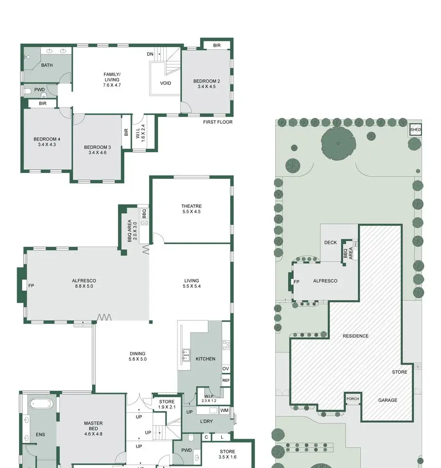 • Spacious alfresco with outdoor gas fireplace & kitchen