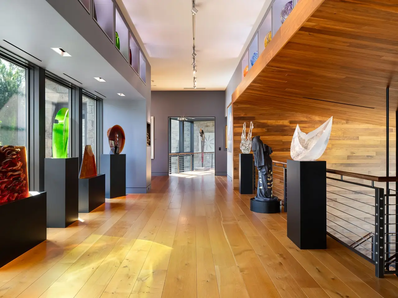 A rare opportunity to own a one-of-a-kind stone and glass residence encompassing 16,000 SF of exceptional design. Currently home to the renowned 7 Bridges Foundation Art Gallery, this breathtaking structure features soaring ceilings, spectacular natural light and three finished levels of expansive, open spaceoffering endless possibilities to reimagine and make it your own. The existing layout includes a spacious one-bedroom suite with private terrace, multiple bathrooms and catering kitchen ideal for large-scale entertaining. Inspired by a modern barn aesthetic, the property seamlessly blends artistry and architecture and can be transformed into an extraordinary private residence. Set on more than 6.5 gated acres, this estate offers unmatched privacy and presence with potential to purchase additional adjacent lots.