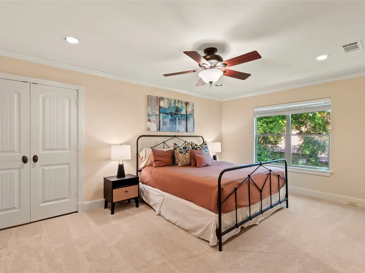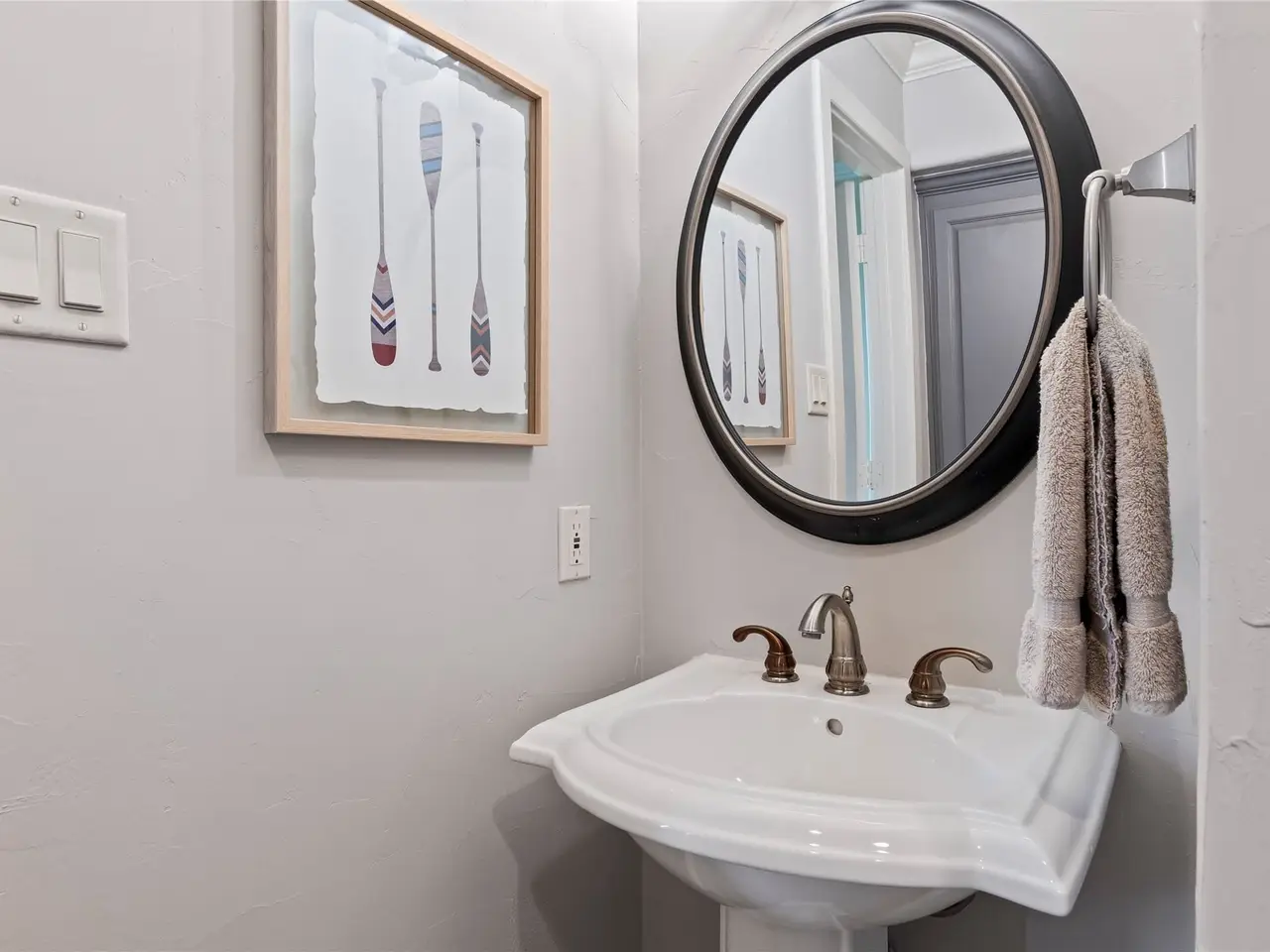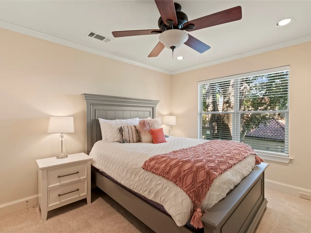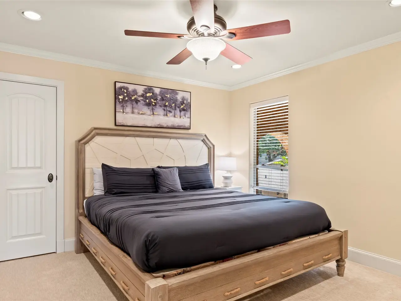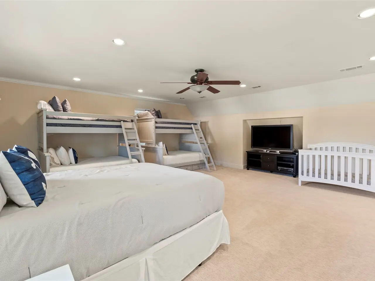 Situated on a stunning half-acre waterfront lot with an impressive 198 feet of shoreline, this expansive five bedroom, 3.5-bath home offers breathtaking open water views and deep water access in one of Cedar Creek Lakes most desirable subdivisions. Perfect as a full-time residence, vacation retreat, or short-term rental, this home is designed for hosting and entertaining. Inside, the living room boasts luxury vinyl plank flooring, a gas fireplace, a wet bar, and panoramic views of the lake. The kitchen features granite countertops, a built-in refrigerator, and an abundance of cabinet and counter space, complemented by a cozy breakfast area and formal dining room ideal for holiday gatherings. The primary suite offers lake views, a spacious ensuite with double vanities, a soaking tub, walk-in shower, and a large walk-in closet, as well as a private waterside sitting area perfect for a home office or peaceful retreat. Upstairs includes three additional bedrooms, two more bathrooms, a generously sized bunk room with a second wet bar, and a large game room with expansive picture windows showcasing unobstructed water views. Outdoor living is elevated with a wraparound deck composite deck overlooking a beautifully landscaped yard, complete with a fire pit, hot tub, and a massive composite-deck 1,337 square foot boathouse featuring a boat slip, dual jet ski platform, covered sitting area, and a party deck with miles of open water vistas. Oversized three-car garage accommodates two vehicles plus room for a golf cart and storing all those water toys. Circle drive and large driveway accommodate several vehicles. The home is sold fully furnished with limited exclusions, making it truly turnkey and ready for immediate enjoyment. Proven short-term rental history available.