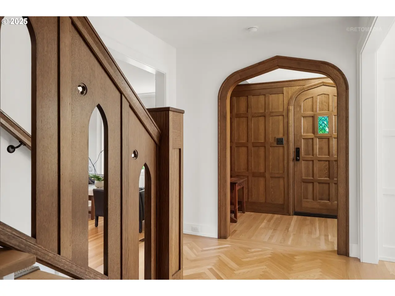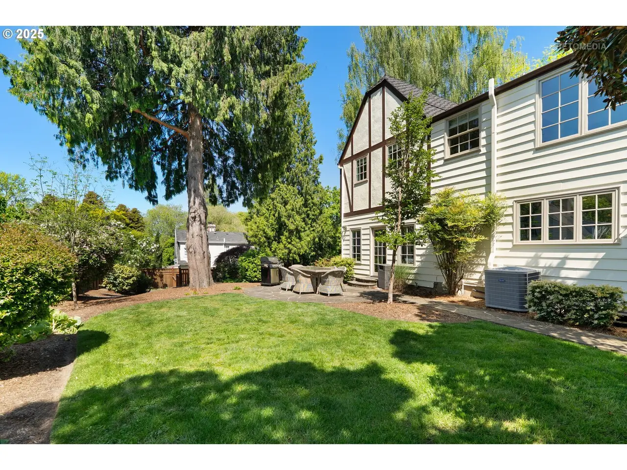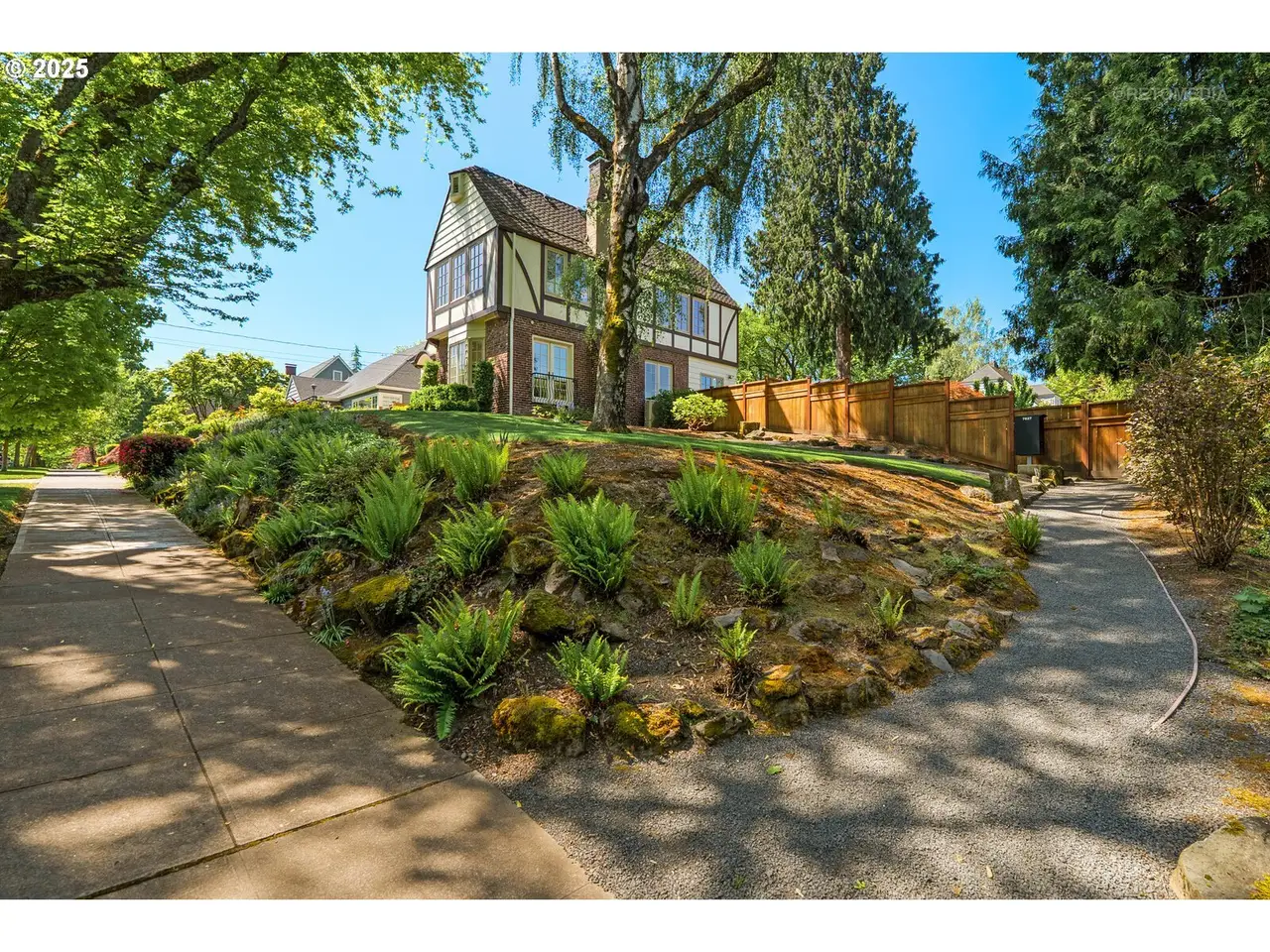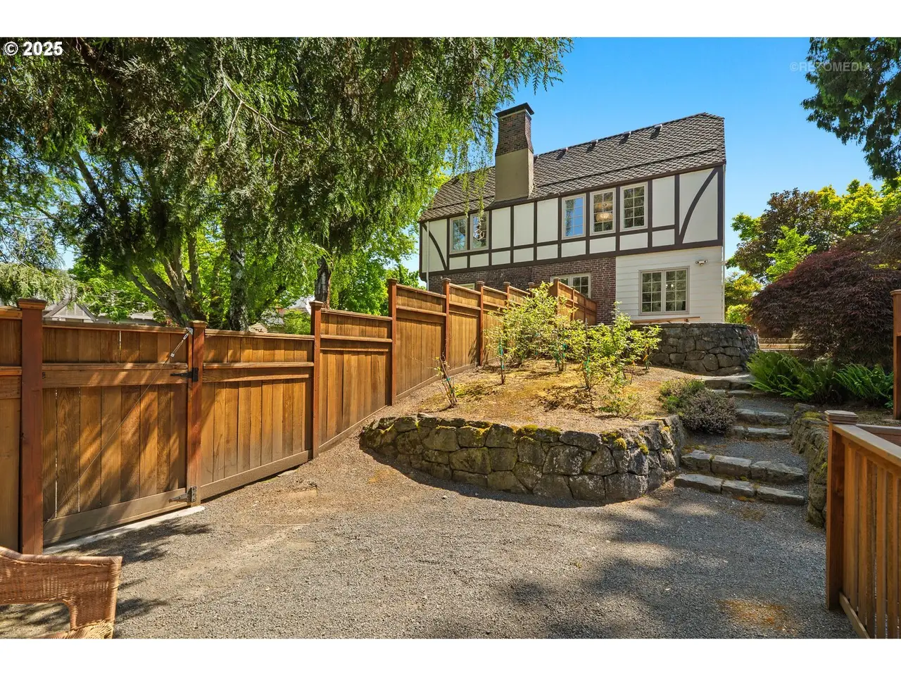 Situated on a rare double lot in Portland’s iconic Eastmoreland neighborhood, this masterfully reimagined 1927 Tudor blends historic character with luxurious, contemporary design. Following a complete studs-out renovation completed in 2021, every detail was curated to elevate both form and function — a true showcase of craftsmanship and style. Original architectural charm remains at the heart of this home, highlighted by custom millwork and handcrafted staircase railings that echo the Tudor lineage. Leaded glass windows, a stucco fireplace, and push-open cabinetry seamlessly conceal storage in the elegant living room. An architectural light fixture from the San Francisco MoMA welcomes you in the entry, while gas lanterns by Bevolo of New Orleans illuminate the front porch with timeless ambiance. The chef’s kitchen is a stunning focal point, outfitted with top-of-the-line appliances including dual Miele dishwashers, a statement LaCornue range, Fulgor wall oven, Sub-Zero refrigerator, and elegant lighting from Original BTC in England. Entertain in style with intuitive flow between kitchen, dining, and living spaces, complemented by a main floor office with custom built-ins and a refined powder room. Upstairs includes the luxurious primary suite with a walk-in closet and adjacent bedrooms reconfigured to maximize space and storage. The lower level offers a finished basement with generous ceiling height including a bonus/media room. A dedicated laundry room with custom drying racks and a full bath complete the space. Outdoors, the beautifully landscaped backyard is a private retreat with raised garden beds, blueberries, and a fenced pumpkin patch. Included with the property is the adjacent lot, bringing the combined property size to an impressive 10,000 sq ft — a rare and valuable find in this established neighborhood. With a 50-year Presidential roof and every detail carefully considered, this Eastmoreland gem offers historic elegance paired with modern livability. [Home Energy Score = 4. HES Report at https://rpt.greenbuildingregistry.com/hes/OR10238881]
