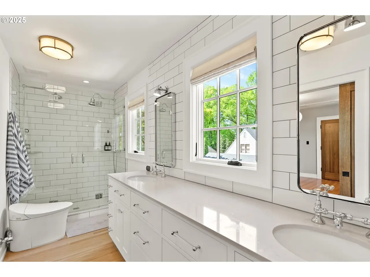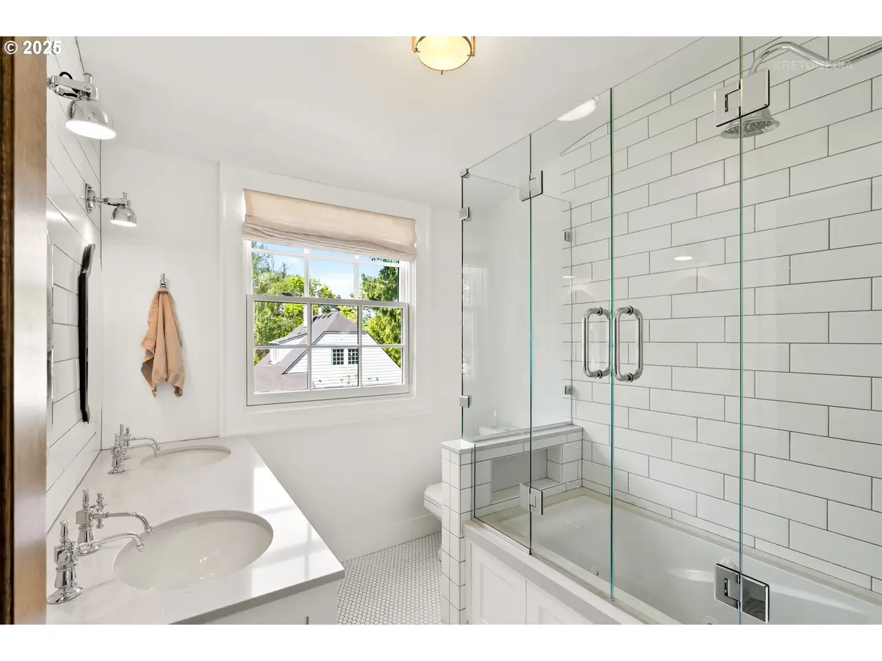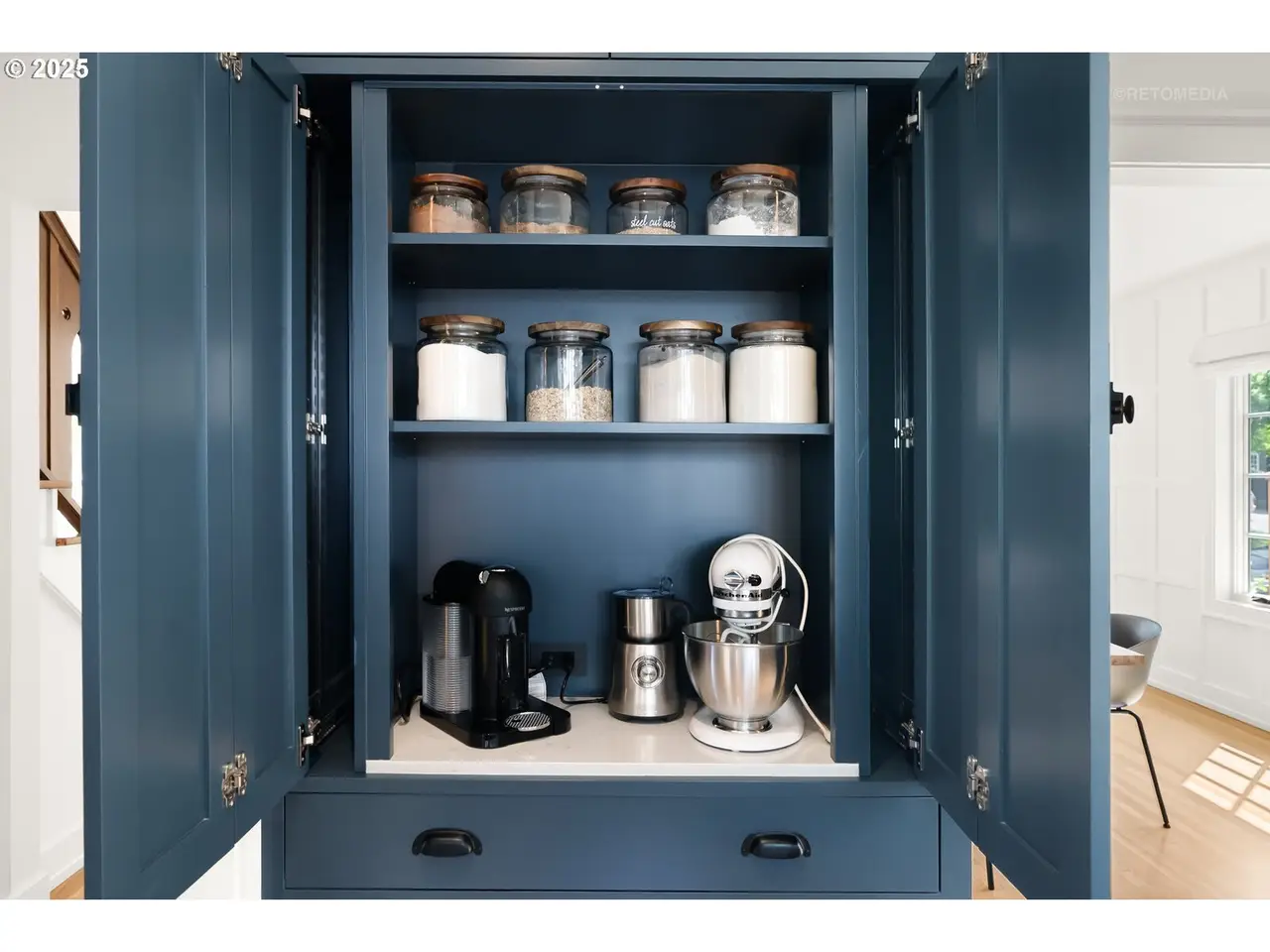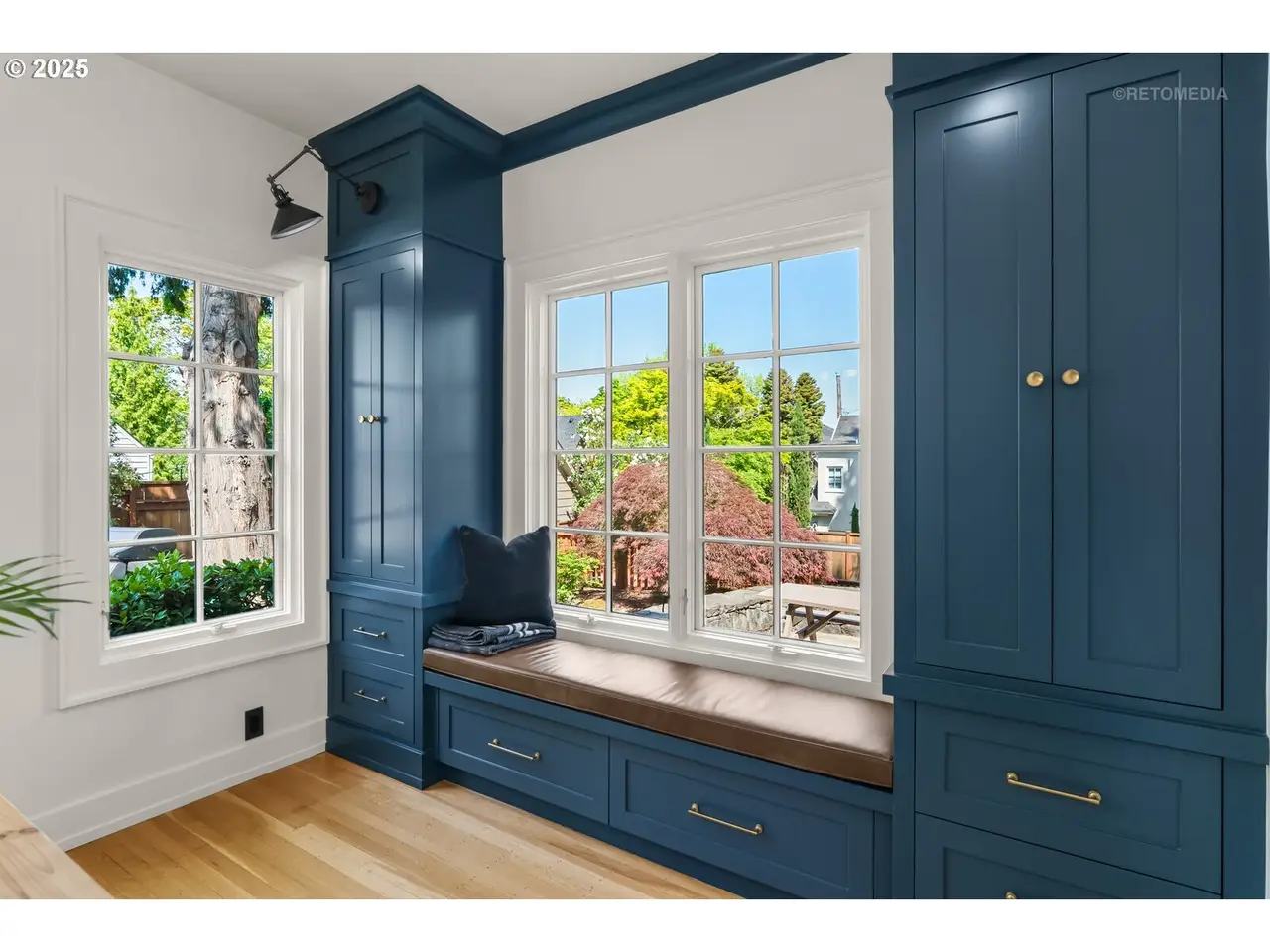 Situated on a rare double lot in Portland’s iconic Eastmoreland neighborhood, this masterfully reimagined 1927 Tudor blends historic character with luxurious, contemporary design. Following a complete studs-out renovation completed in 2021, every detail was curated to elevate both form and function — a true showcase of craftsmanship and style. Original architectural charm remains at the heart of this home, highlighted by custom millwork and handcrafted staircase railings that echo the Tudor lineage. Leaded glass windows, a stucco fireplace, and push-open cabinetry seamlessly conceal storage in the elegant living room. An architectural light fixture from the San Francisco MoMA welcomes you in the entry, while gas lanterns by Bevolo of New Orleans illuminate the front porch with timeless ambiance. The chef’s kitchen is a stunning focal point, outfitted with top-of-the-line appliances including dual Miele dishwashers, a statement LaCornue range, Fulgor wall oven, Sub-Zero refrigerator, and elegant lighting from Original BTC in England. Entertain in style with intuitive flow between kitchen, dining, and living spaces, complemented by a main floor office with custom built-ins and a refined powder room. Upstairs includes the luxurious primary suite with a walk-in closet and adjacent bedrooms reconfigured to maximize space and storage. The lower level offers a finished basement with generous ceiling height including a bonus/media room. A dedicated laundry room with custom drying racks and a full bath complete the space. Outdoors, the beautifully landscaped backyard is a private retreat with raised garden beds, blueberries, and a fenced pumpkin patch. Included with the property is the adjacent lot, bringing the combined property size to an impressive 10,000 sq ft — a rare and valuable find in this established neighborhood. With a 50-year Presidential roof and every detail carefully considered, this Eastmoreland gem offers historic elegance paired with modern livability. [Home Energy Score = 4. HES Report at https://rpt.greenbuildingregistry.com/hes/OR10238881]