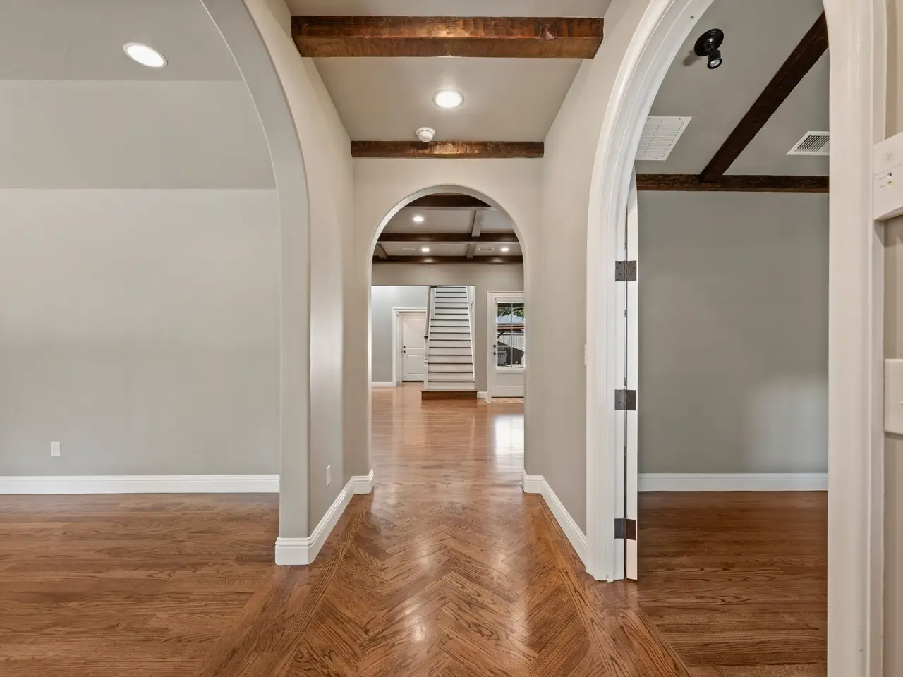 Exceptional craftsmanship and timeless style define this stunning home nestled in Richardsons sought-after Reservation neighborhood. Just down the street from Mimosa Park and within walking distance to Mohawk Elementary and J.J. Pearce High School! Complete renovation & addition in 2009! Nail-down hardwood floors throughout, vaulted beamed ceilings, floating custom vanities in every bathroom and solid core doors, quality is evident in every detail. The spacious floor plan offers two bedrooms downstairseach with private en-suite bathroomsplus a guest half bath, formal dining room, and dedicated private study. The family room impresses with beamed ceilings, abundant natural light, and seamless flow into the gourmet kitchenideal for entertaining. The kitchen features custom solid oak cabinetry, built-in Kitchen-Aid refrigerator and professional grade Viking gas range, premium finishes, and open sightlines to the main living areas. Master bedroom with vaulted beamed ceiling and two walk-in closets. The master bathroom is a true retreat with double sinks, a vanity area, walk-in shower with bench seat, relaxing jetted tub & private water closet. The utility room provides exceptional storage, a built-in sink with RO water, charming pocket door and a Hoshizaki ice-maker for added convenience. Upstairs, a spacious game room with pre-wire surround sound anchors two additional bedrooms connected by a Jack & Jill bathperfect for family or guests. Thoughtful design and high-end finishes continue throughout every space. Enjoy outdoor living at its best with two covered patio areas, flagstone, an in-ground pool, and a board-on-board privacy fence creating a private backyard oasis. The circle driveway adds both beauty and functionality, offering an impressive welcome and ample parking for guests or a large family. This home blends elegance, comfort, and craftsmanship offering flexible living spaces, luxury features, and exceptional attention to detail inside and out.