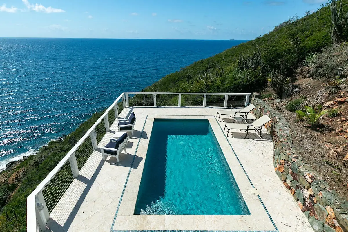 Seller financing option! This bright, airy landing is nestled on a south easterly overlook with open ocean and island views. The high ceilings and intricate stone accents paired with white interior walls, cabinets, and kitchen backsplash complement the new interior furnishings and quartz countertops to create a refreshing, open feel. Recent 2023 renovations also include new PGT sliding doors and windows and an additional laundry facility. Bask in the island sun on the spacious wrap-around deck and back patio, perfectly positioned to watch the sunrise and feel the ocean breeze next to the pool on the new Trex deck with cable rails. Below market rate financing for up to 50% of purchase price with qualified buyer.