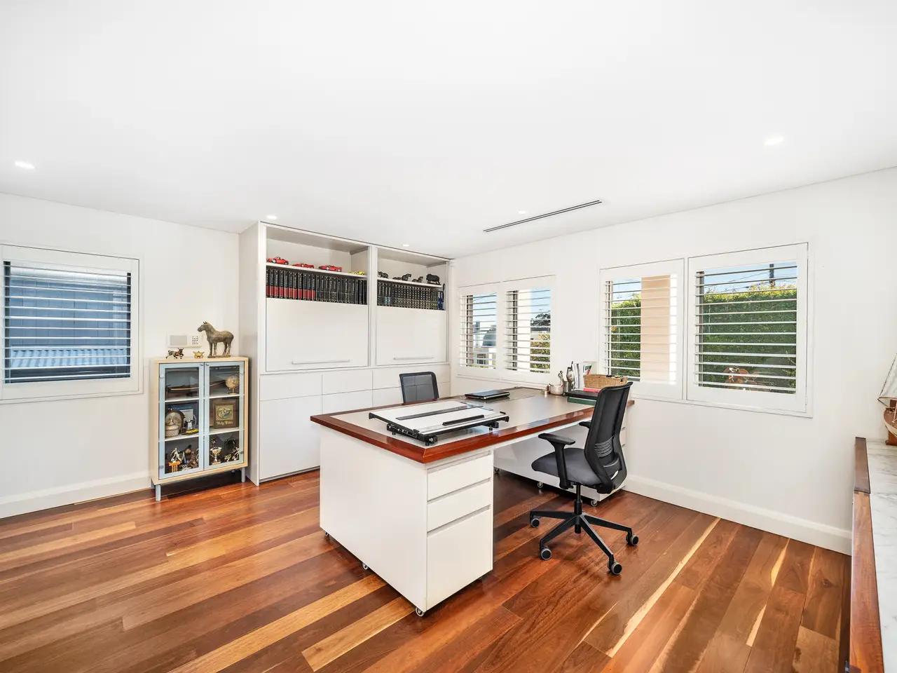 Utterly timeless in every detail, this impressive architect-designed home provides a blue-ribbon family lifestyle underpinned by quality throughout. Maintained with pride and exquisite care by its original owners, with an array of stunning upgrades to enhance modern comfort, it offers five inviting bedrooms plus a large custom office, three versatile living areas spanning dual levels, fantastic outdoor entertaining spaces including a grand sun terrace, and captivating views over the Parramatta River from all the south-facing upstairs rooms. – Elegant and immaculate family sanctuary in an exclusive street – Premium spec with blackbutt flooring, shutters, ducted air and vac – Superb top terrace, saltwater pool and spa with Travertine surround – High-end kitchen boasting a breakfast island and soft-close cabinetry – Generous master quarters complete with chic ensuite and walk-in robe – Solar power, workshop, three-car garaging, easy-care 784sqm block – Approx. 200m to waterfront parks and 1km to cafes, IGA and Rivercat
