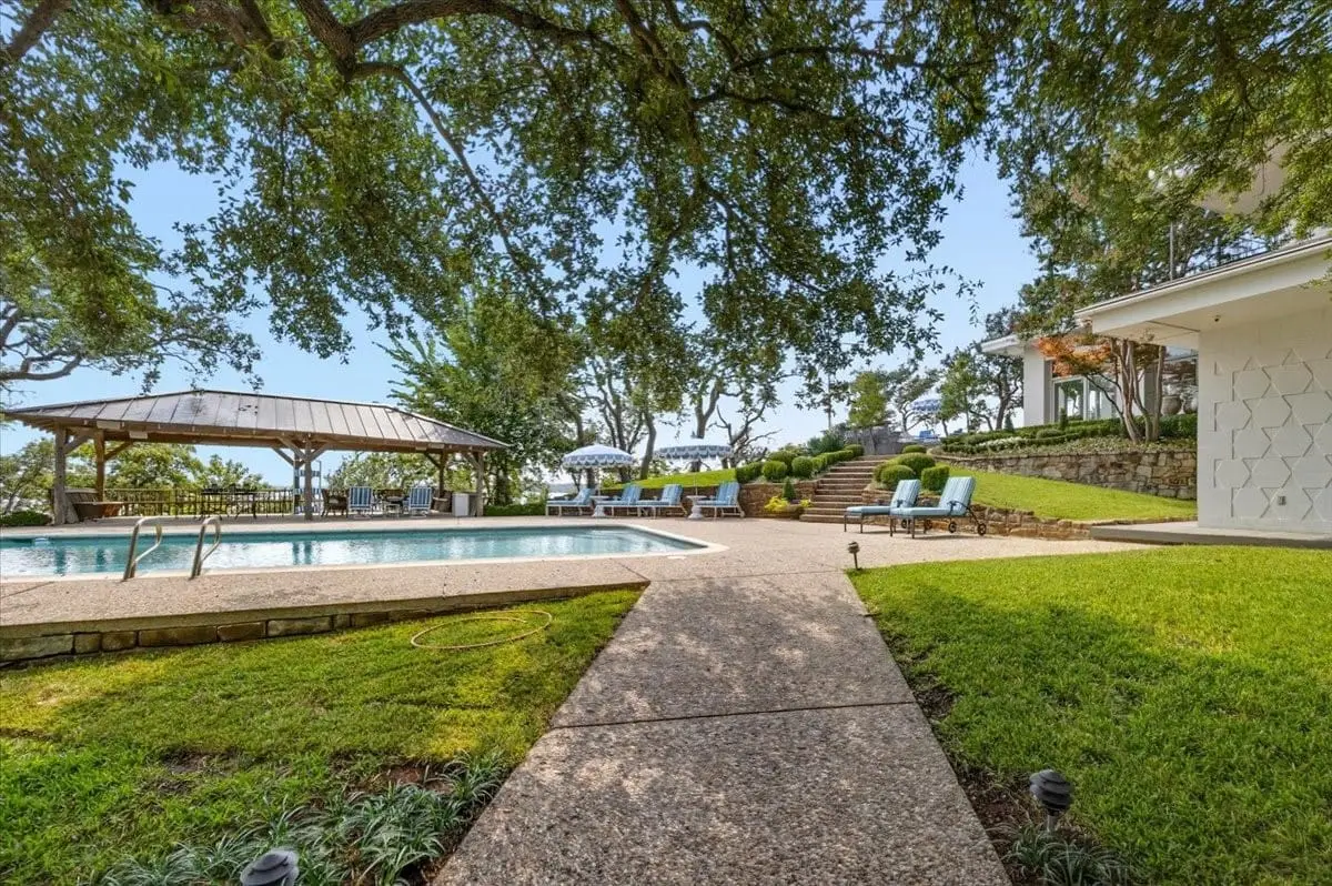Nestled behind private gates on an expansive 3-acre estate, this extraordinary lakefront residence showcases breathtaking panoramic viewsdirectly across the water from the Boat Club. Designed for those who appreciate the finest in waterfront living, this home combines timeless architecture with stylish, thoughtful updates throughout. The main house offers five spacious bedrooms and four beautifully appointed bathrooms, each designed for comfort and privacy. The kitchen is a true showpiecefeaturing bold designer cabinetry, high-end appliances, and stunning finishes that make it both functional and unforgettable. Multiple living and dining areas flow seamlessly, creating inviting spaces for both intimate gatherings and large-scale entertaining. Outside, tiered landscaping leads to a resort-style pool, covered lounge pavilion, and an enclosed boathouse equipped with three slips and garage doorsperfect for enjoying every season on the water. The casita adds flexibility with an additional bedroom and full bath, ideal for guests or extended stays. Every hour here hits differentfrom easy mornings on the lake to evenings that feel like vacation. With space to host family, friends, and unforgettable lakefront events, this is next-level living at its finest.