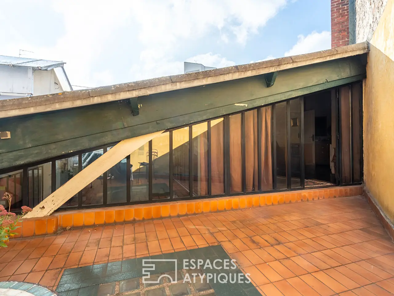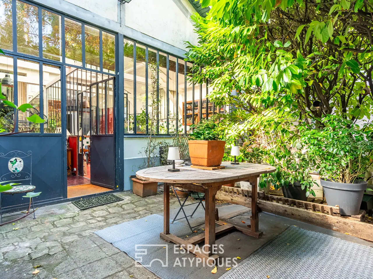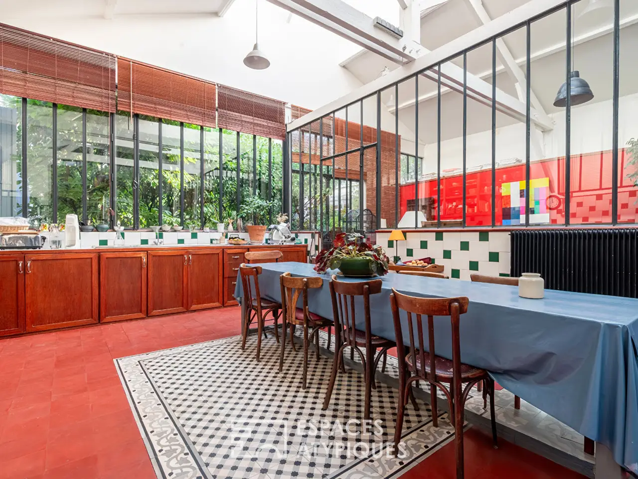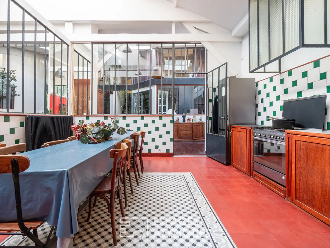 Located between Paul Bert and Les Quatre Chemins, this loft is part of a condominium resulting from the rehabilitation of a former glass factory from the early 20th century. It offers 166.65 sq.m. of floor space (162.95 sq.m. Carrez law) and benefits from a 12 sq.m. courtyard, a 16 sq.m. terrace, and an unfinished 50 sq.m. workshop located in the lower level (souplex) that can be converted.From the common paved courtyard, hidden behind a hedge, the tree-lined terrace leads to the main entrance. The hall opens onto a vast living space of almost 90 sq.m., open to a fitted kitchen and enhanced by a ceiling height of 5.80 meters.Two secondary-day bedrooms (rooms without a window directly to the outside) and a bathroom with shower and water-closet complete this level.The upper floor hosts two additional bedrooms, one of which has a terrace. A shower room with water-closet completes the sleeping area.Accessible from the inside, a 42 sq.m. basement/cellar is added to the property.Outside, below, a semi-underground 50 sq.m. workshop, lit by an English courtyard (light well) and benefiting from 3 meters of ceiling height, offers an independent volume ideal for a creative space, an office, or a studio.The numerous glass partitions, the old terracotta floor tiles (tomettes), the solid wood flooring, and the generous volumes give this family loft a unique character, blending authenticity, light, and an industrial workshop spirit.Metro Lines: Line 7 Aubervilliers-Pantin Quatre Chemins (6 min); Line 12 Mairie d'Aubervilliers (13 min)REF. 13333Additional information* 5 rooms* 3 bedrooms* 1 bathroom* 1 bathroom* 2 floors in the building* 6 co-ownership lots* Annual co-ownership fees : 1 322 €* Property tax : 2 921 €* Proceeding : NonEnergy Performance CertificatePrimary energy consumptiond : 179 kWh/m2.yearHigh performance housing*A*B*C*179kWh/m2.year33*kg CO2/m2.yearD*E*F*GExtremely poor housing performance* Of which greenhouse gas emissionsd : 33 kg CO2/m2.yearLow CO2 emissions*A*B*C*33kg CO2/m2.yearD*E*F*GVery high CO2 emissionsEstimated average annual energy costs for standard use, indexed to specific years 2021, 2022, 2023 : between 2550 € and 3520 € Subscription IncludedAgency feesThe fees include VAT and are payable by the vendorMediatorMediation Franchise-Consommateurswww.mediation-franchise.com29 Boulevard de Courcelles 75008 ParisInformation on the risks to which this property is exposed is available on the Geohazards website : www.georisques.gouv.fr