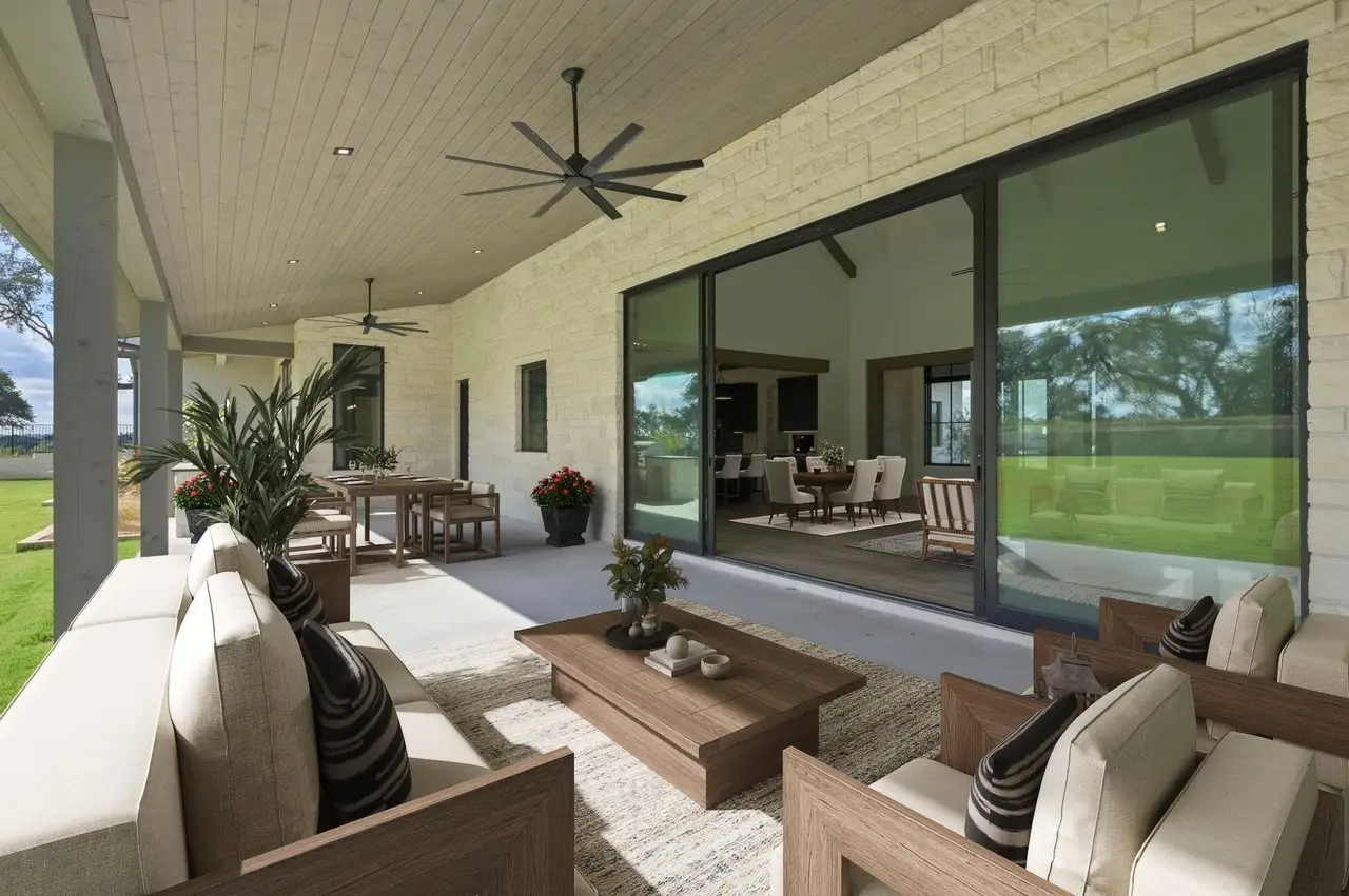 Situated in Bee Cave’s desirable gated community, Madrone Canyon, this new construction single-level home showcases refined Hill Country living with stunning craftsmanship. Soaring vaulted, wood-beamed ceilings and a statement fireplace anchor the open great room, complemented by beautifully engineered hardwood floors. The immaculate kitchen impresses with a spacious center island, stainless steel appliances including double ovens and a wine cooler, dual sinks, and a walk-in pantry, perfect for entertaining or everyday luxury.The expansive primary suite offers a peaceful retreat with a spa-like bathroom featuring a soaking tub, glass-enclosed shower, and massive walk-in closet. Three additional bedrooms provide ample space for guests, while a versatile living/game room with a wet bar enhances the home’s entertainment appeal. The utility room with built-in storage and a new 36” refrigerator, washer, and dryer and the three-car garage add to the home’s practicality.Enjoy seamless indoor-outdoor living through large sliding glass doors that open to a spacious covered patio with a built-in outdoor kitchen, ideal for al fresco dining. The beautifully landscaped yard offers lush greenery and scenic Hill Country views, with the yard already pre-plumbed for easy pool installation. With placement in the highly rated Lake Travis ISD, this Bee Cave residence blends modern elegance with functional design in one of the area’s most coveted new communities.