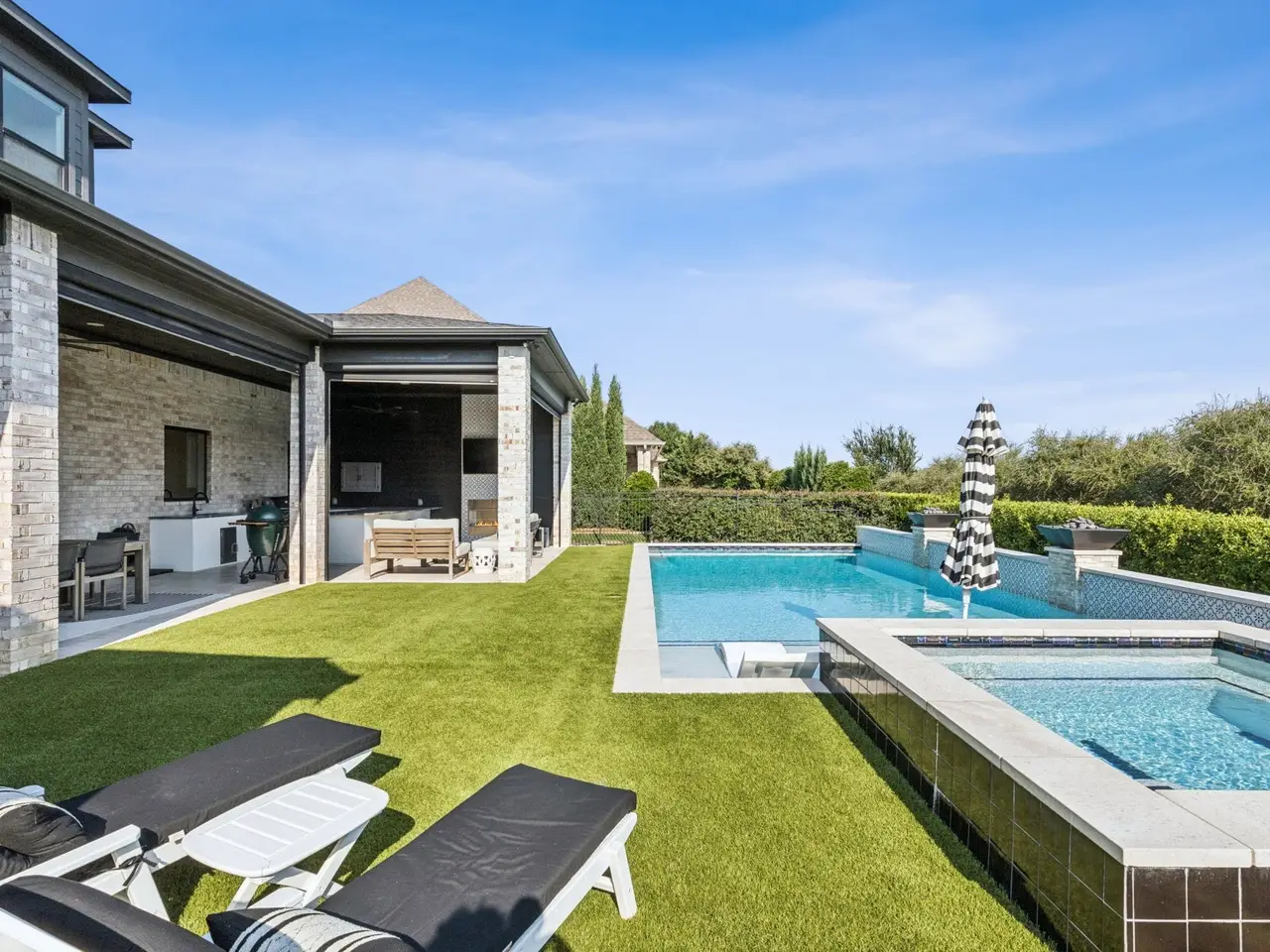 Welcome Home to this Gorgeous, Modern, open floor plan, Luxury home in Southlake Carroll ISD! Exquisite finishes compliment the modern, open, airy aesthetic to create the perfect home for everyone! Built in 2020, this light and bright house boasts 5 bedrooms each with its own Walk-in Closet plus En-suite Bathroom, 3 Living areas including a Media Room and separate Game Room, and a fantastic Chef's Kitchen complete with a back Pantry-Prep area. Designer finishes throughout including stunning wood floors, stone countertops, modern hardware, and designer lighting. Step outside to enjoy the best of Summer with the rectangular modern pool, spa, and turfed pool area for the perfect backyard. The Outdoor living area boasts over 700 sq. ft. of covered living space ready for Entertaining with large Ui grill, beverage fridge, sink and tons of stone countertops, plus a large sitting area with a Fireplace and automated screens for year-round enjoyment! The Upstairs Game room is currently fitted with a state-of-the-art PuttView Putting System, which does not convey but could possibly be purchased from the Seller. *Smart Home with Savant Home System and outdoor cameras convey with the home* Current owner has put many new upgrades to the home including an entire house water filtration system, automatic window shades, new garage modern glass doors in both garages to bring in day light and all media system in media room and new flatscreen TVs inside and outside!