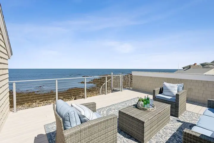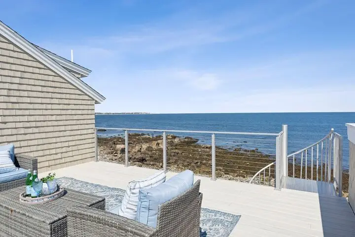 Perched along the pristine shores of Biddeford's coveted coastline with commanding views of the Atlantic, 1 Moore Lane is a rare 0.52-acre oceanfront sanctuary that tastefully blends timeless New England architecture with understated luxury. This distinguished four-bedroom, three-bathroom residence spans 2,458 sq ft and offers refined coastal living in one of Southern Maine's most desirable enclaves. At the heart of the home lies a sun-filled chef's kitchen designed to capture the beauty of the sea at every angle. Outfitted with sleek soapstone countertops, custom maple cabinetry, a Wolf gas cooktop with professional-grade hood, built-in wall ovens, and a walk-in pantry, the space balances form and function with effortless sophistication. The adjoining living and dining areas flow seamlessly to dual oceanfront terraces - ideal for elevated outdoor entertaining against the rhythm of the waves. The sun-drenched family room features soaring vaulted ceilings with exposed beams, exquisite hardwood flooring, and a striking stone gas fireplace that anchors the space with warmth and character. Designed with both privacy and comfort in mind, the home's layout includes a private bedroom wing with an adjacent full bath and steam shower, while the opposite wing offers two additional bedrooms, a full bath, laundry, and a dedicated office with fireplace and direct access to the deck. The renovated primary suite is a coastal haven, where expansive windows frame uninterrupted ocean vistas and natural light pours across warm hardwood floors. A spa-inspired en-suite bath appointed with marble finishes, a frameless glass shower, and polished chrome fixtures add to the design. Each space is generously proportioned and curated to evoke a sense of serenity, elegance, and enduring quality for both quiet retreat and stylish hospitality. Within minutes from the beautiful beaches of Biddeford, Kennebunkport, UNE, local restaurants/bars, & downtown! Make it yours today!