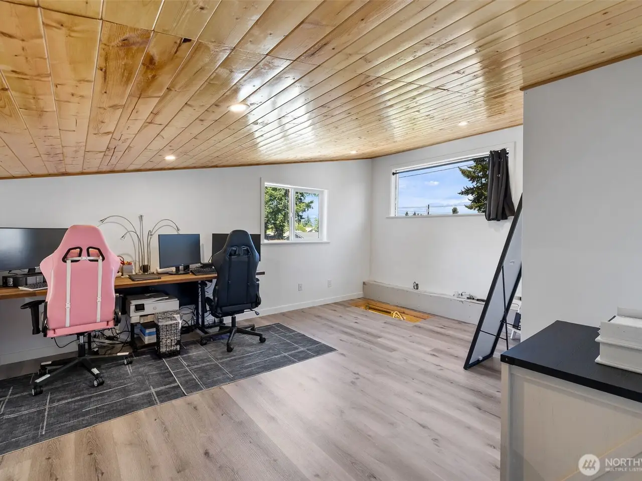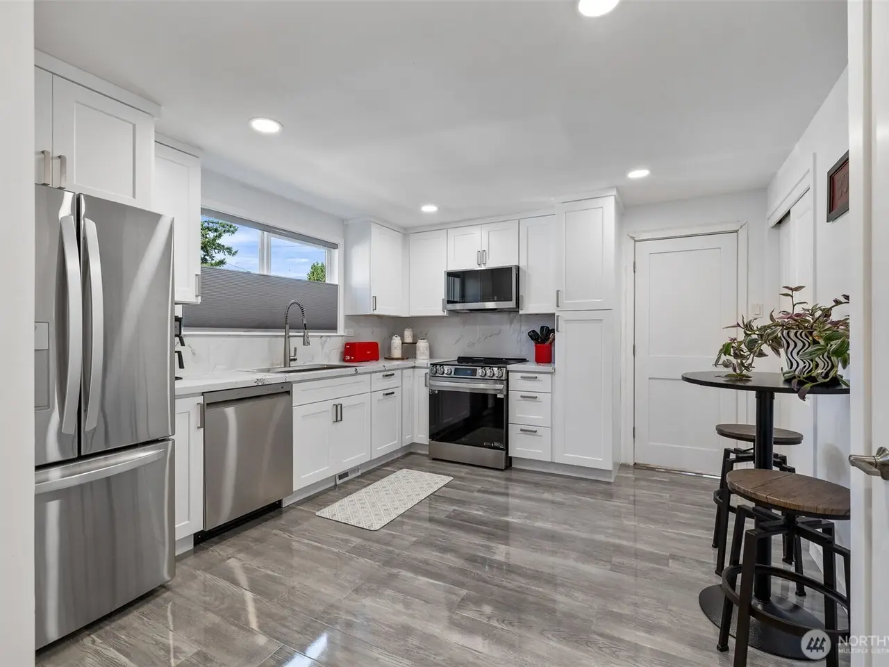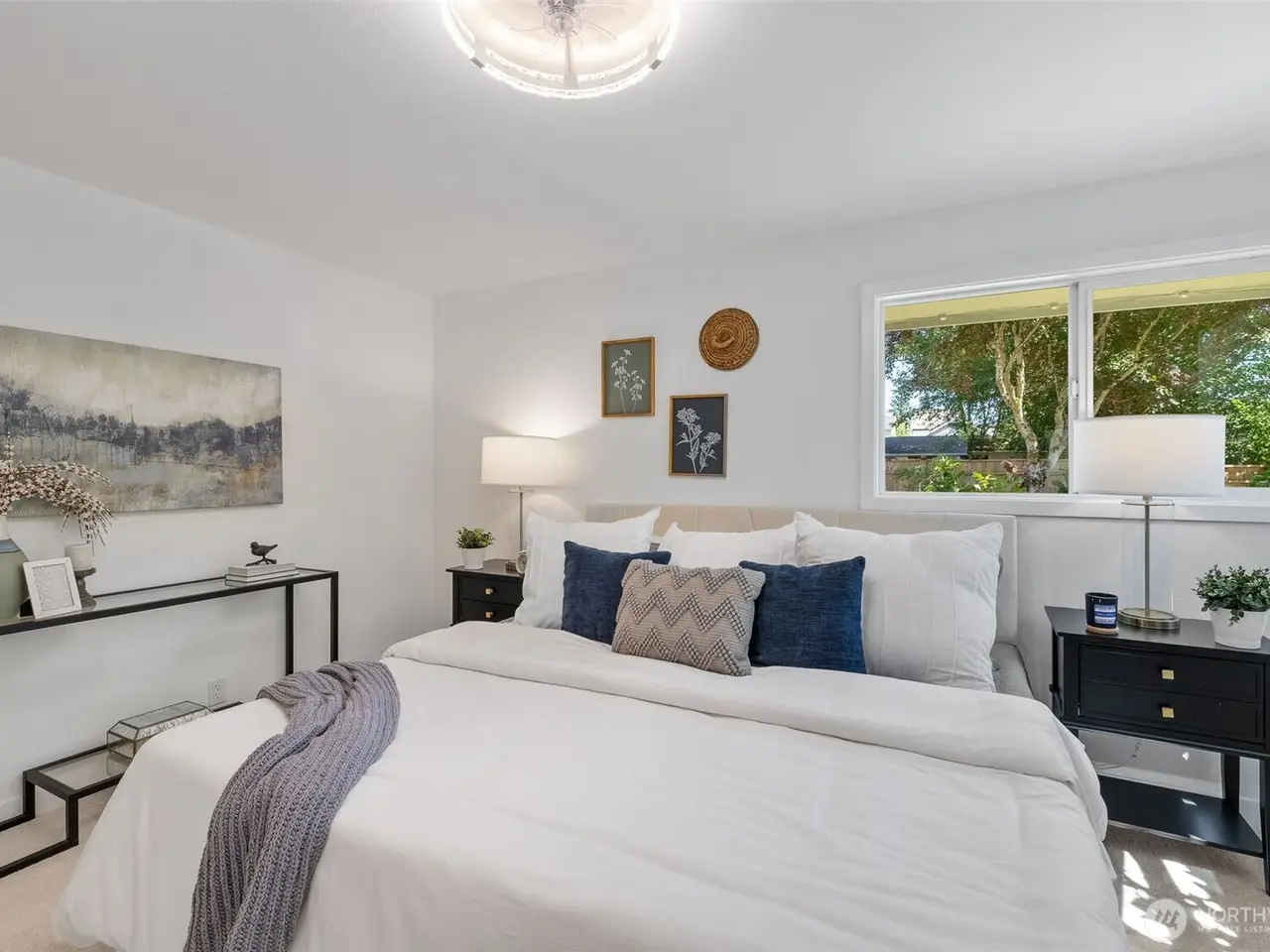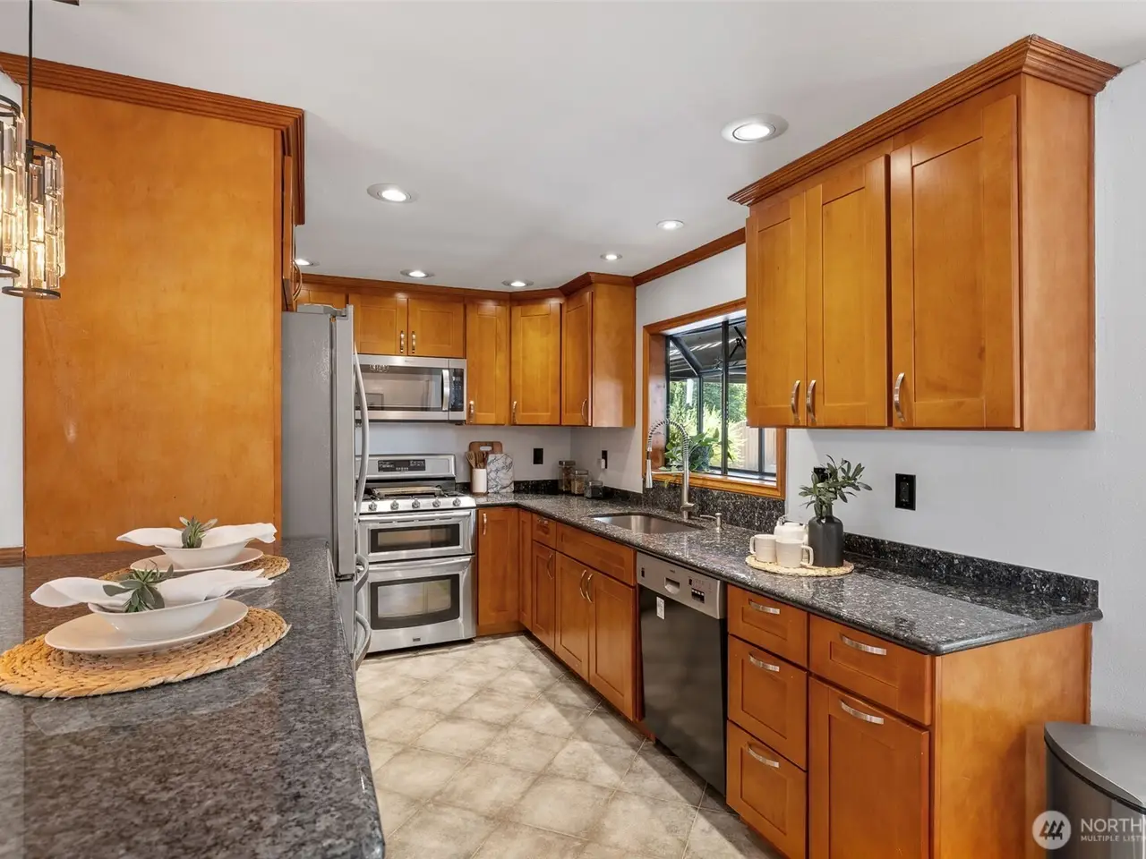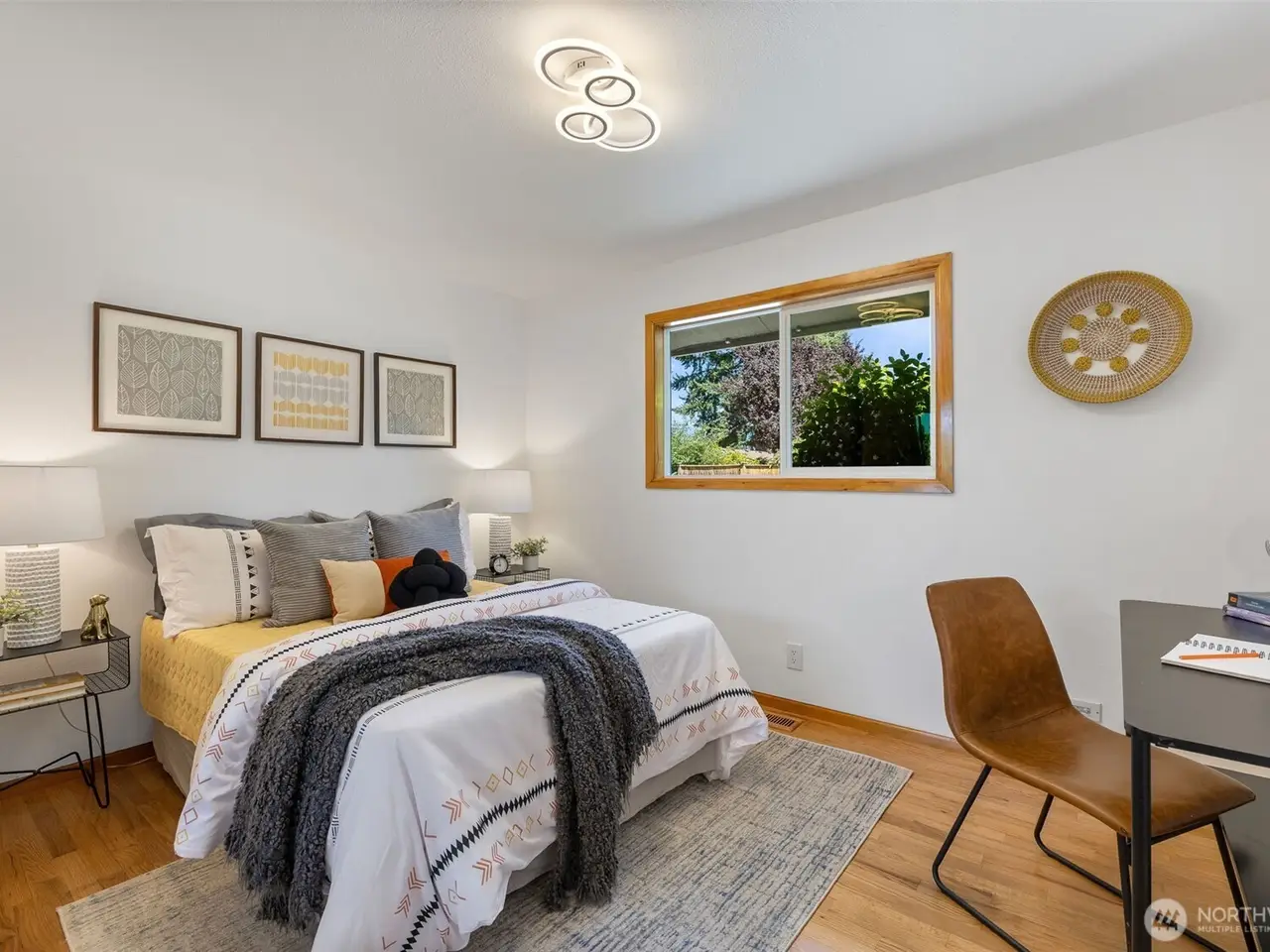 Tucked at the end of a quiet cul-de-sac, this beautifully renovated rambler offers rare flexibility & charm. With 3 bedrooms, 3 full baths, and a full second kitchen, it's perfect for multigenerational living or income potential--rent one side and live in the other! The main home features 2 beds, 2 baths, spacious primary suite has a jetted tub & walk-in closet. Nice updated kitchen. Studio suite is loaded with charm! Steam sauna and bidet in bathroom! New kitchen! Enjoy privacy in the fenced backyard with afternoon shade, an Italian plum tree, covered patio, and shed. Attached garage, heat pump w/AC, & extra space upstairs for an office or storage. Large driveway, over a 1/4 acre lot, potential for a detached ADU. Easy access to I-5 & 405!