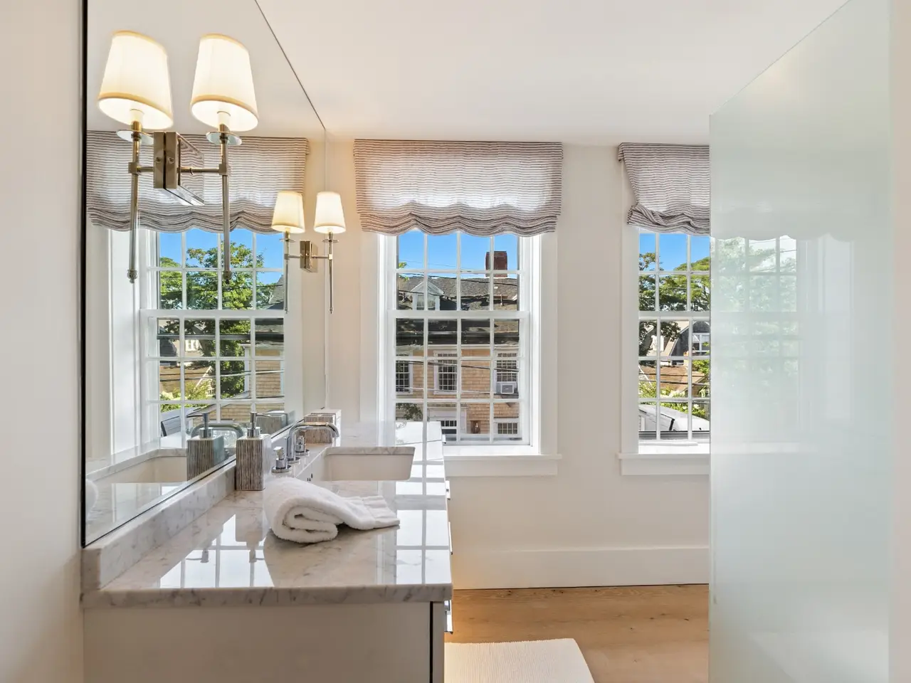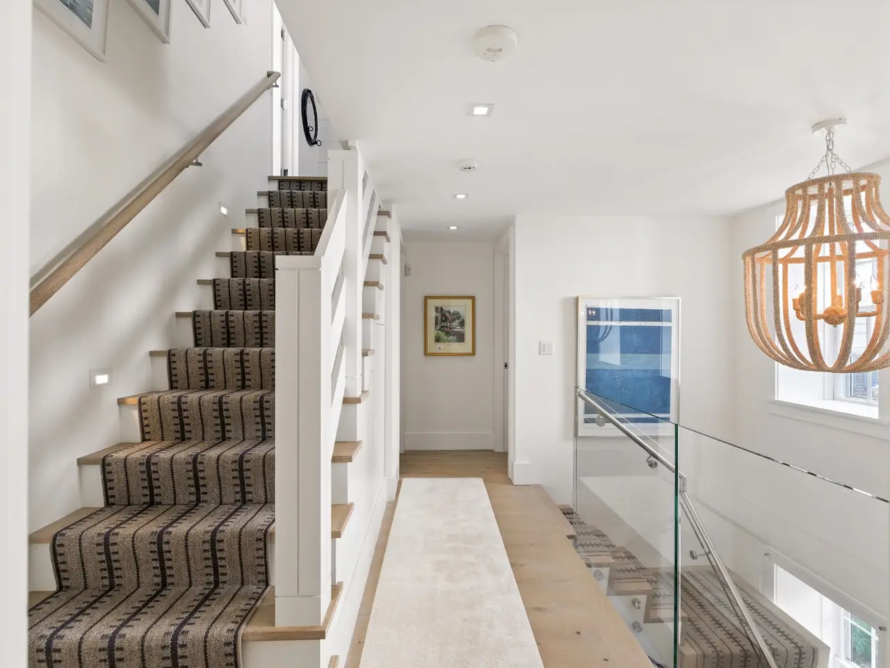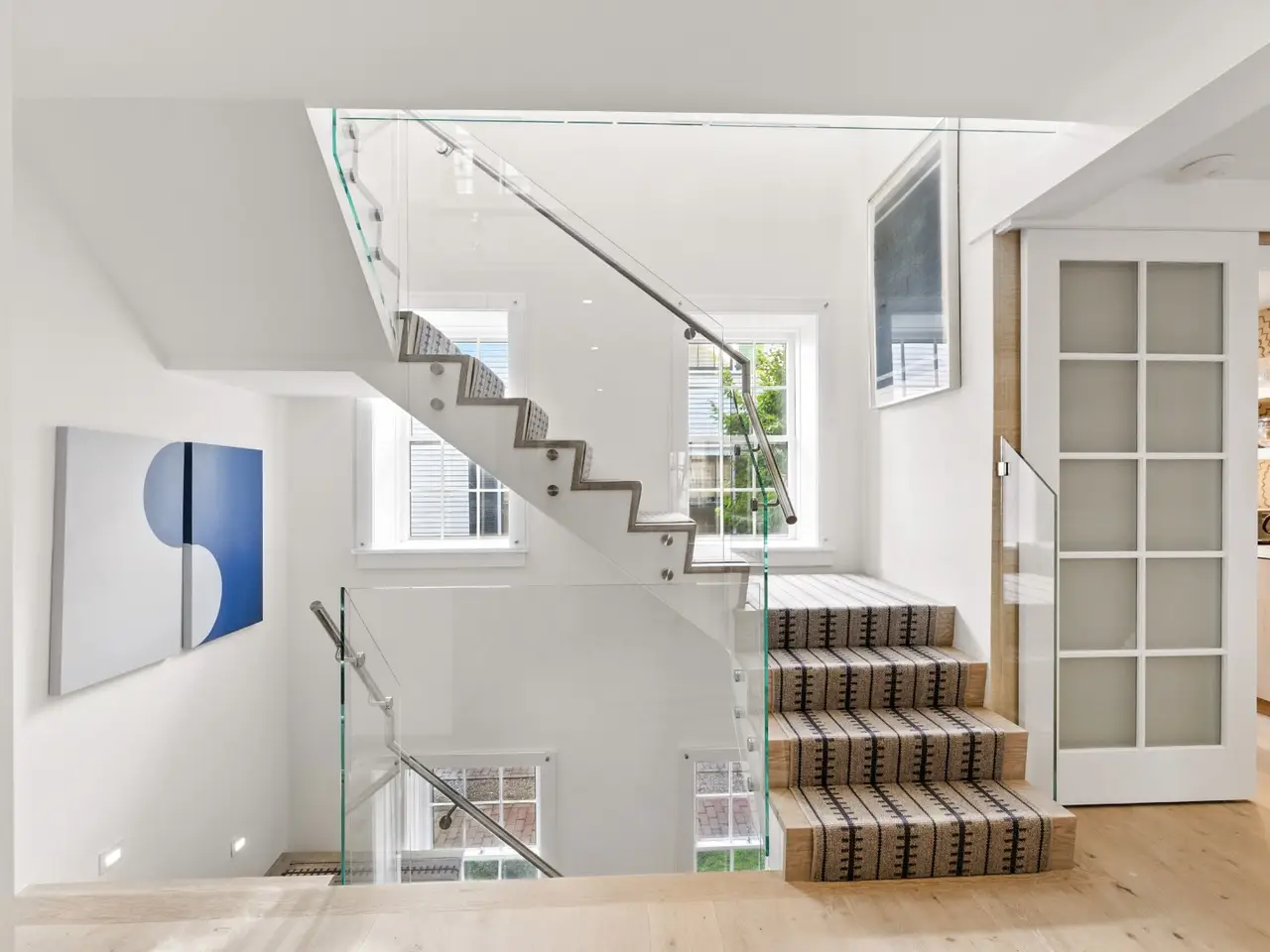 Originally built in the 1800s, this exceptional property has been masterfully reimagined through the collaborative efforts of Main Street Construction and Mark Cutone Architecture. The result is a seamless fusion of historic preservation and modern luxury. Located just moments from Main Street in the heart of Nantucket's historic district, the home's front facade maintains its timeless charm, while the rear opens to sophisticated contemporary living. A stunning three-story custom staircase, crafted from glass and wood by EeStairs, serves as the visual and architectural centerpiece of the main residence. Spanning four levels, the home features five bedrooms - including one currently utilized as a dressing room - and three elegant living areas, offering a perfect blend of comfort and functionality. Completed in 2018, the detached studio provides additional space for entertaining and relaxation, all overlooking the private, beautifully landscaped yard. High-end finishes are found throughout both structures, including custom wire-brushed white oak flooring, integrated LED lighting, remote-controlled window treatments, and bespoke cabinetry by Faneuil Cabinetry. The property also includes two off-street parking spaces and is being offered fully furnished, presenting a rare turnkey opportunity in one of Nantucket's most coveted locations.