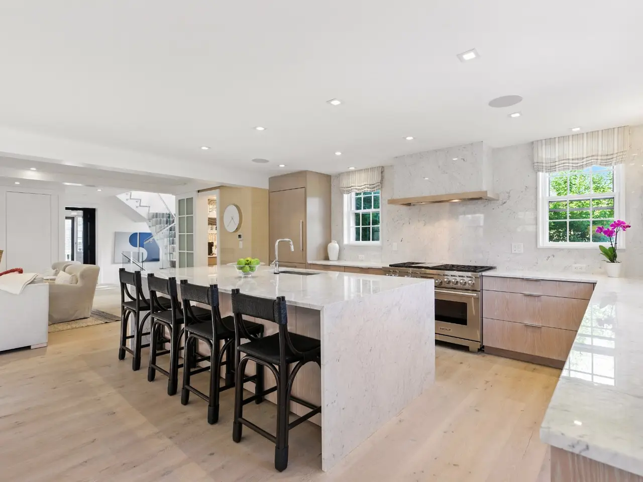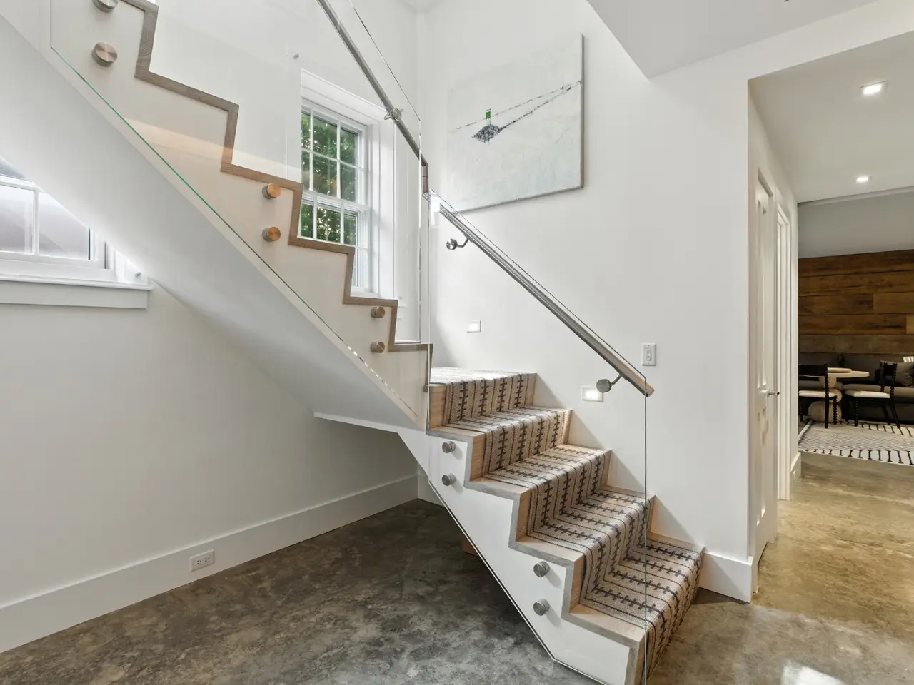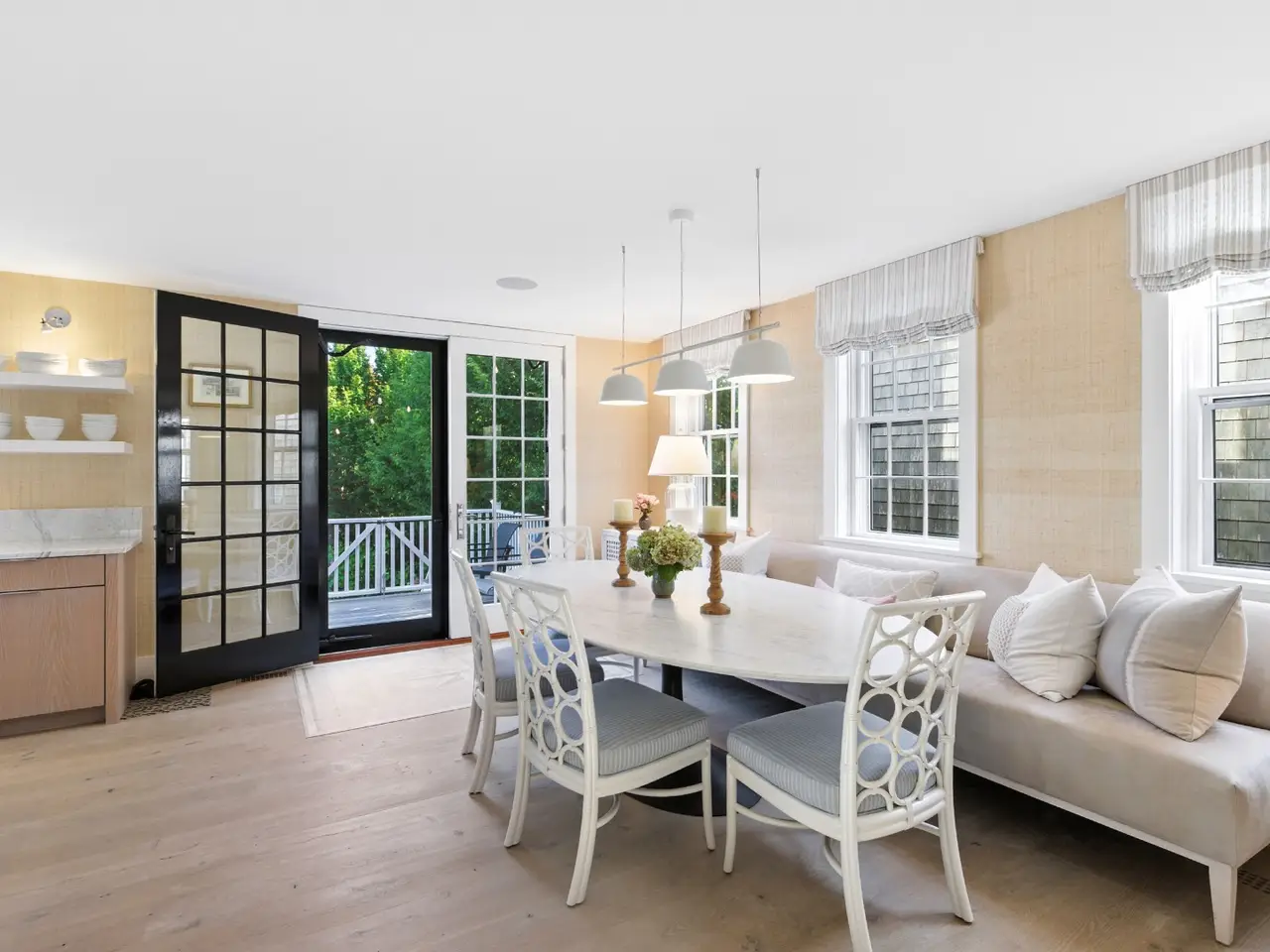 Originally built in the 1800s, this exceptional property has been masterfully reimagined through the collaborative efforts of Main Street Construction and Mark Cutone Architecture. The result is a seamless fusion of historic preservation and modern luxury. Located just moments from Main Street in the heart of Nantucket's historic district, the home's front facade maintains its timeless charm, while the rear opens to sophisticated contemporary living. A stunning three-story custom staircase, crafted from glass and wood by EeStairs, serves as the visual and architectural centerpiece of the main residence. Spanning four levels, the home features five bedrooms - including one currently utilized as a dressing room - and three elegant living areas, offering a perfect blend of comfort and functionality. Completed in 2018, the detached studio provides additional space for entertaining and relaxation, all overlooking the private, beautifully landscaped yard. High-end finishes are found throughout both structures, including custom wire-brushed white oak flooring, integrated LED lighting, remote-controlled window treatments, and bespoke cabinetry by Faneuil Cabinetry. The property also includes two off-street parking spaces and is being offered fully furnished, presenting a rare turnkey opportunity in one of Nantucket's most coveted locations.