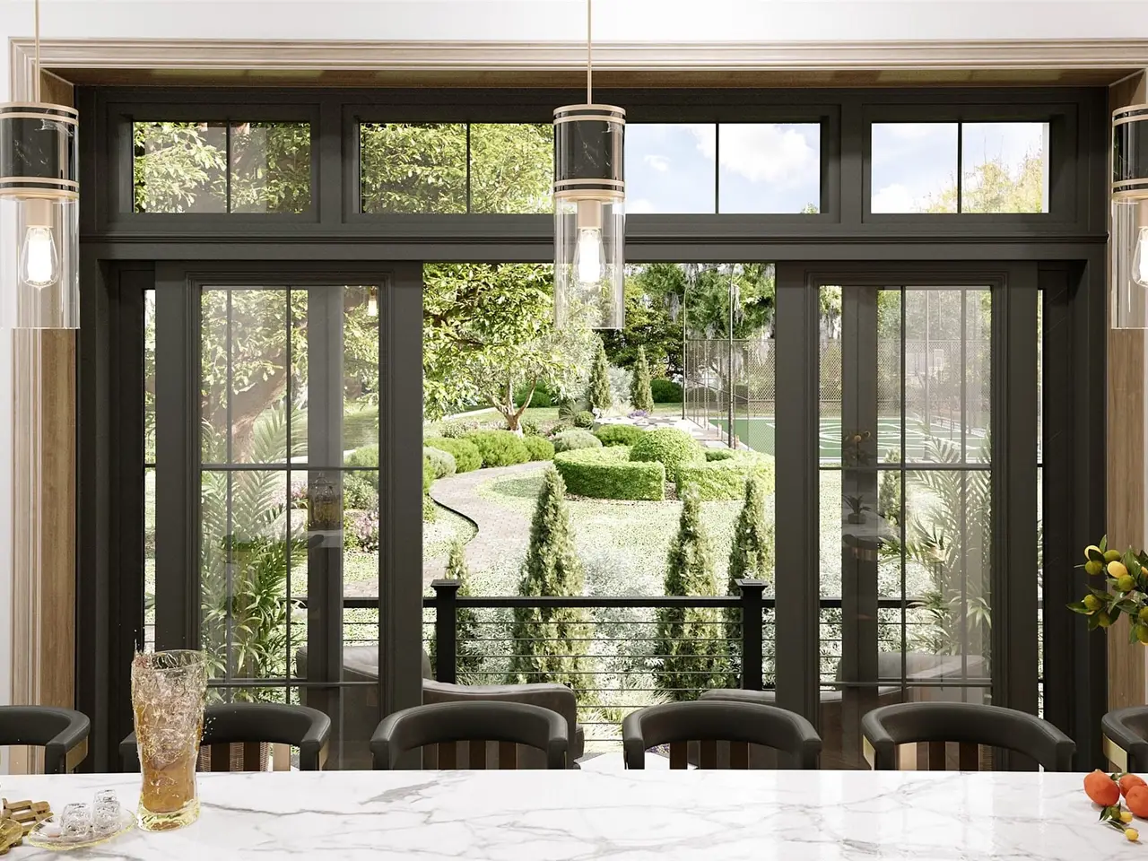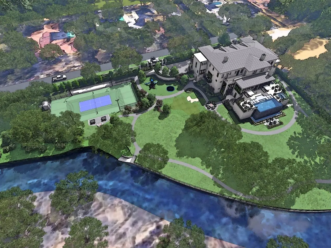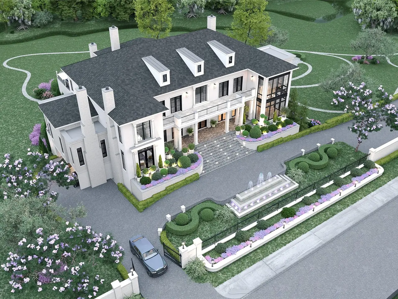 Tucked away on 2.2 private acres along Bachman Creek, 10010 Strait Lane is a California Transitional estate of 16,600+ sf blending craftsmanship, elegance, & luxury. Interiors ft soaring ceilings, clean lines, & floor-to-ceiling Kolbe windows. Designed for comfort & entertaining, chefs kitchen boasts 2 La Cornue dual-fuel ranges (10-burners total), Subzero, Wolf, & Miele appliances, & Thomas O’Brien chandeliers. Catering kitchen includes elevator access to support events with ease. Sunroom & Formal Living space soar w 24 ceilings, glass walls, & Vida chandelier. Owners wing ft vaulted ceilings, fireplace, indoor outdoor sitting areas, Julie Neill chandelier, spa bath w Bain Ultra tub, dual water closets, beverage bar, towel warmer, Romani Travertine (Italy), Nobu Ribbon tile (Spain), Kalta Fiore marble, Kelly Wearstler, Arteriors lighting. 2 walk-in closets Hers w island, hidden shoe,handbag, jewelry closets; His w safe & luggage storage. Other amenities include elevator, wellness retreat for massage & fitness, opt 1,600-bottle glass wine room &or lower-level wine vault, golf sim rm, craft & music rm, 3-tier theater, & study w fireplace. Entry ft 25 ceilings, 23-light John Richard chandelier & oak herringbone floors. 3 utility rms (1 per floor), mudroom w dog shower. Outside ft screened loggia w fp & heaters, outdoor kitchen w pass-through window to main kitchen, negative-edge pool, spa, sun deck, & opt fire pit create a resort retreat. 4,181 sf air conditioned 10-car garage that doubles as an event venue. 8 terraces include cigar balcony, primary terraces, upstairs suites, front colonnade, & back loggia. Landscape lighting, optional tennis or sport court. Surrounded by mature trees & creek, offering privacy in prestigious Preston Hollow neighborhood. Built w concrete walls & steel framing, ensuring bunker-like strength, this home will be ready by end of year, 2025. 10010 Strait Lane offers a once-in-a-lifetime opportunity on Dallas’s most iconic street.
