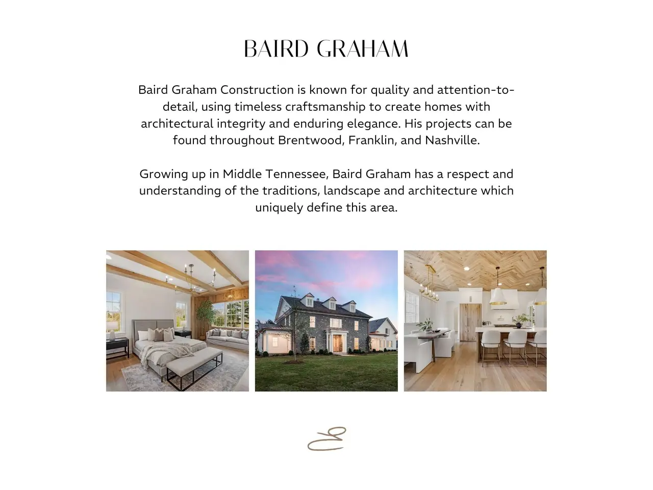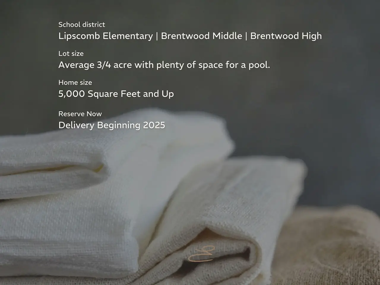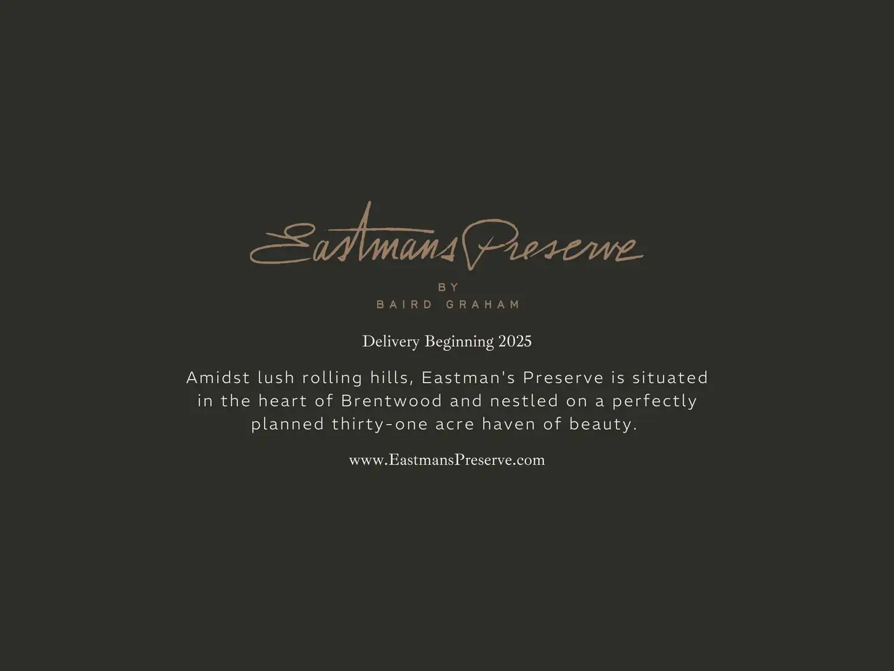 Amidst lush rolling hills, Eastman's Preserve is situated in the heart of Brentwood and nestled on a perfectly planned thirty-one acre haven of beauty. Only 25 homes will be available. This home sits on a private, level lot in the back of the community. Designed by renowned architect Pfeffer Torode, this masterpiece boasts an immaculate master suite on the main level. The sprawling kitchen with Butler Pantry, breakfast room, and dining room provide all the space you need for entertaining and opens up into the great room so you can seamlessly host and enjoy your guests. 4 additional bedrooms upstairs make it easy and convenient for visiting family or guests to enjoy their stay. The convenience to the heart of Brentwood cannot be matched and you'll find the top restaurants and shopping less than 10 minutes away. Additional lots available upon request.