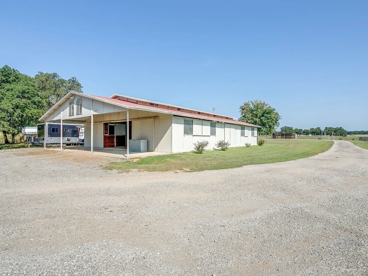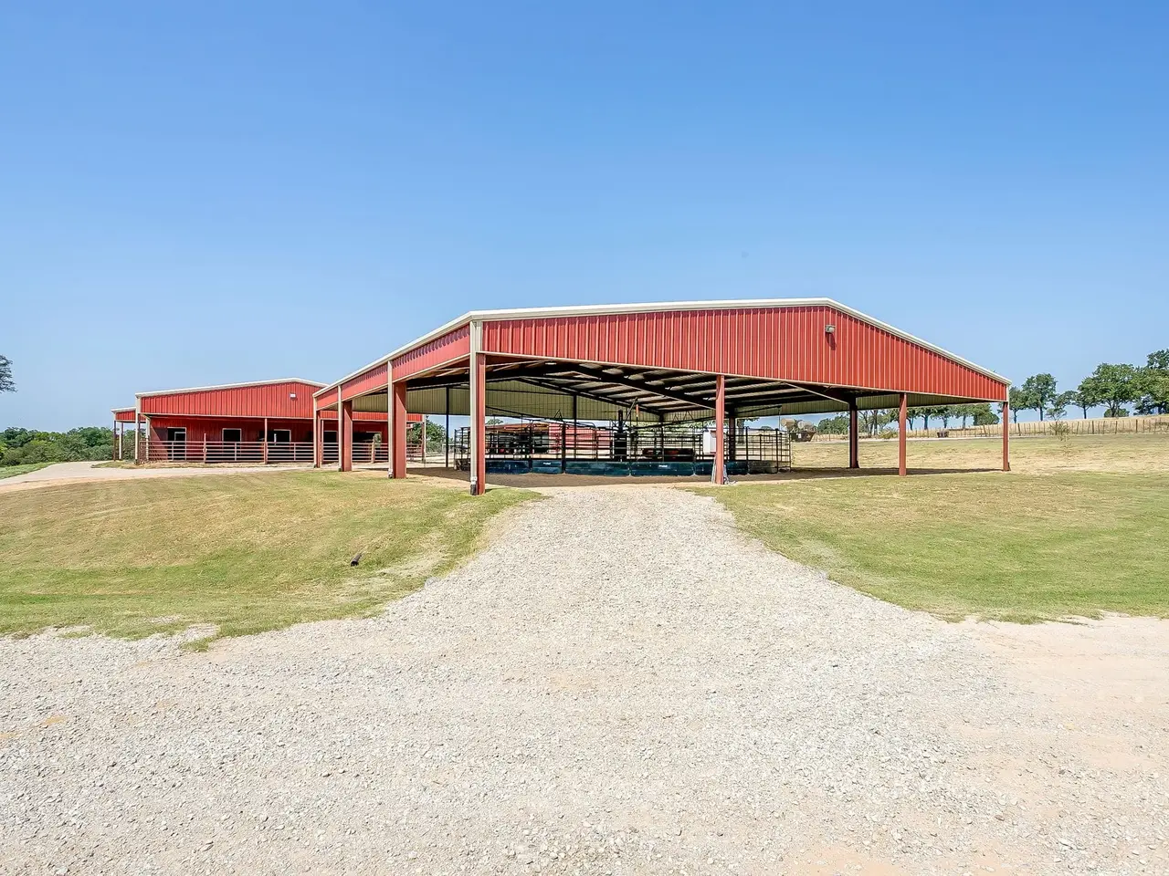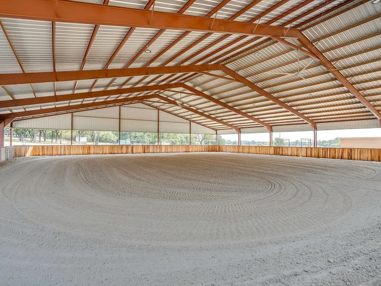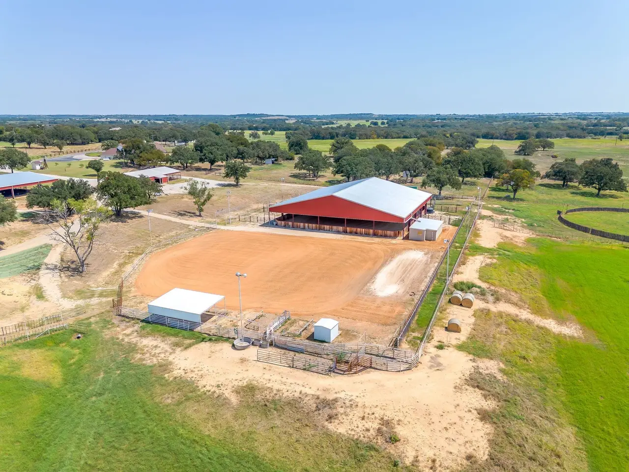 Nestled in the heart of the cutting horse capital of the world, this stunning 122-acre property is a dream for any cutting horse enthusiast. Described as highly functional, efficient, and meticulously maintained, it offers everything you need. Just 40 min from the Will Rogers and mere minutes from the nation's top veterinary care, this property is perfectly situated for your cutting horse needs. The residence is 3,413sqft, offering a comfortable and welcoming atmosphere and is move-in ready The property features 2 barns, a 4-stall and 10-stall, each equipped with runs, flanking a six-horse walker, all overlooking a generous 175 x 200 arena. A covered 125 x 125 section of the arena connects directly to cattle pens and pastures, making it a versatile space for training and events. Unique to this facility is a 50k gal rainwater catchment system used to irrigate the arena and provide water for livestock troughs throughout the ranch. Accommodations for guests and staff are ample, including a newly renovated barn-dominium, a cozy small cabin, and a newer single-wide mobile home that offers rental income potential or comfortable housing for employees. Grindstone Creek meanders through the southwest corner of the property, nourishing the fertile soils essential for exceptional coastal Bermuda and native grass production. The ranch's water system is a standout feature, supplied by two water wells, Parker County SUD, the aforementioned rainwater catchment system, and multiple stock tanks. Additionally, and included in the 122 acres, an adjacent 17-ac parcel can operate independently or in conjunction with the main estate. It includes a charming three-bedroom, 3-bed, 3-bath home with 1,694 sqft, an 8-stall barn, and a 125 x 125 arena connected to pens and a loading chute. Various traps and loafing sheds enhance the functionality and usability of this impressive ranch. Discover the perfect blend of comfort, convenience, and capability in this exceptional cutting horse property!
