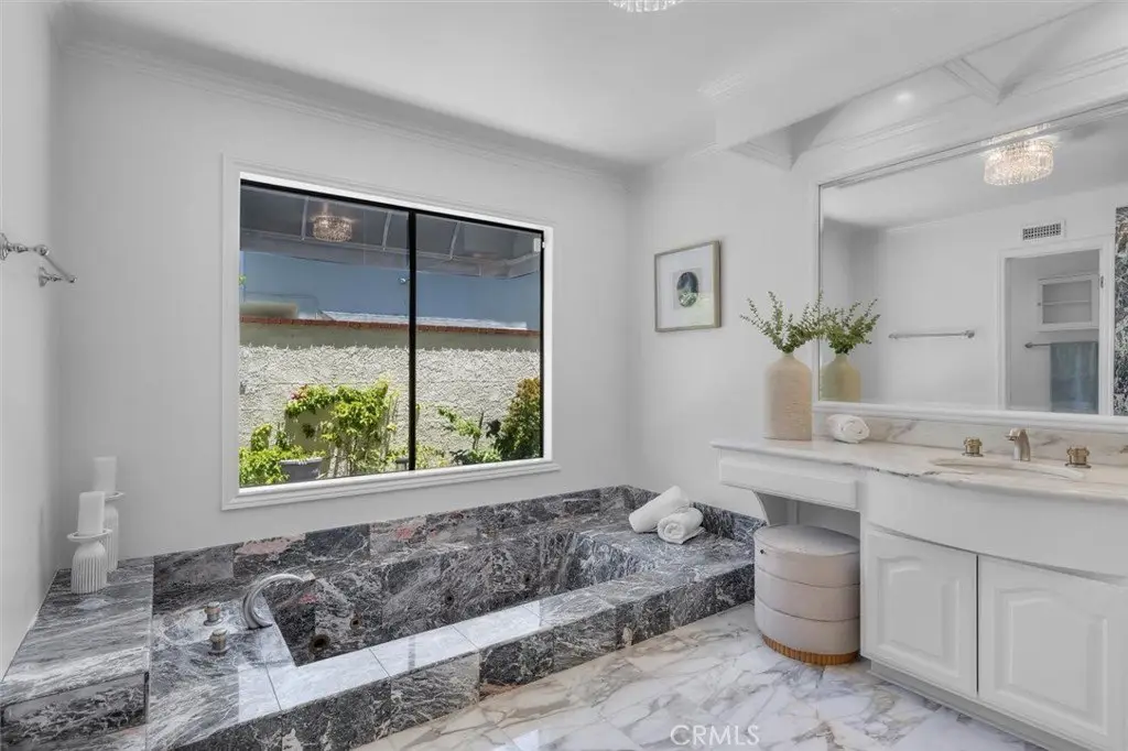 PRICE REDUCED...ISLAND VIEW HOME...stunning Single-Level home located in a highly sought-after Island View Community. This 4 Bedroom, 3.5 Bath residence spans just under 3,000 SQFT & features a sparkling Saltwater Swimming pool & Jacuzzi surrounded by lush greenery, all nestled in a peaceful oasis. Upon entering, you are greeted by a grand entryway with a beveled glass door, stunning chandelier, and elegant marble flooring. New Interior Paint . The bright & open Living Room boasts High-Ceilings and Marble surround Gas-Fireplace, while the spacious Dining Room features a coffered ceiling, New chandelier, and crown molding. A convenient guest bathroom is located just off the entryway. The inviting Family Room adjacent to the kitchen has a gorgeous view of the backyard and includes a gas fireplace with built-in shelving and cabinets, beverage center, wetbar, and hardwood floors. The Kitchen is fully-equipped with White cabinets, Granite countertops, high-quality appliances, including a Samsung stainless refrigerator, two GE Profile microwave/convection double ovens, and a walk-in pantry. Additionally, the Breakfast bar and eat-in area is a wonderful space to enjoy the view of the camellia trees and blooming flowers while savoring your breakfast. The Primary Bedroom is spacious retreat including two walk-in closets, along with a beautiful en-suite bathroom featuring a separate bathtub and shower, and double sinks with marble vanities. Two Bedrooms include built-in bookshelves, double-mirrored closets, and a window seating area. The Remodeled Bathroom with walk-in shower and Quartz Tile Surround is located conveniently in the hallway. The 4th bedroom, located off the kitchen area, can serve as a wonderful guest room or private office space and includes a three-quarter bathroom. The laundry room is conveniently located just off the kitchen, equipped with a wash sink, and provides direct access to your 3-Car Garage with ample built-in storage. Outside, you’ll find a lovely garden with a birdbath, outdoor seating areas, swimming pool with an overflowing jacuzzi. The upper-tiered yard includes landscaping & apple, lemon, and plum trees. A Peek-a-boo Ocean view from the top tier could allow for seating to enjoy the ocean sunsets. This wonderful private & quiet community includes 2 Pickleball courts to enjoy. Walking distance to Del Cerro Park & Nature Trails. Close to the finest restaurants, shops, & Terranea Resort. Award-Winning Palos Verdes School District.