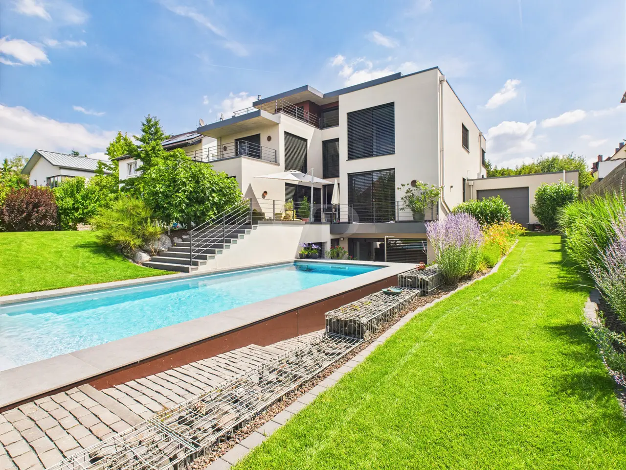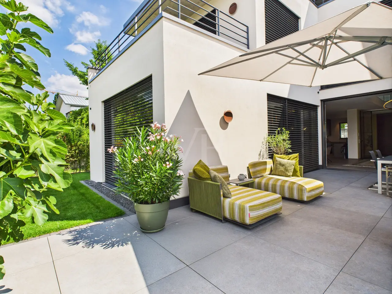 Welcome to a home that leaves nothing to be desired - a place where design, discretion and attention to detail merge to create a living space that is second to none. Completed in 2021, this property is not just a building - it is an architectural commitment to aesthetics, generosity and uncompromising quality. On around 450 m² of living space, a living concept is revealed that understands space not just as an area, but as an expression of style and attitude. Architecture that speaks - rooms that touch: Even the first impression is a statement: the reception area opens wide, breathing in light, air and space - an entrance that is not inviting, but welcoming. Large windows combine the inside and outside into a harmonious unit, creating views, depth and an incomparable sense of space. The open-plan living and dining area looks as if it has been cast from a single mold. Every view, every line is perfect. The kitchen - equipped with state-of-the-art technology and the finest materials - is more than just a place to prepare food. It is the focal point, meeting place, stage and retreat all in one. Family life, dinner parties or quiet moments with a glass of wine - every scenario finds its place here. The quiet presence of well thought-out technology lies above it all: the underfloor heating provides cozy warmth in every room, unobtrusively, efficiently and naturally. The garden: a refuge The outdoor area is more than just a garden - it is a green stage for life. Professionally designed, discreetly enclosed, with space for hours of sunshine, conversations by the fire or summer evenings in the open air. Two double garages elegantly round off the overall picture. This property is made for people who do not seek quality, but expect it. For personalities who don't need space - but design it. For families who not only want to live, but live. Luxury is not loud. It is quiet, well thought out - and rare. This house is such a place. Are you interested in getting to know this promising investment with lots of potential and charm? The von Poll Team Aschaffenburg looks forward to hearing from you!