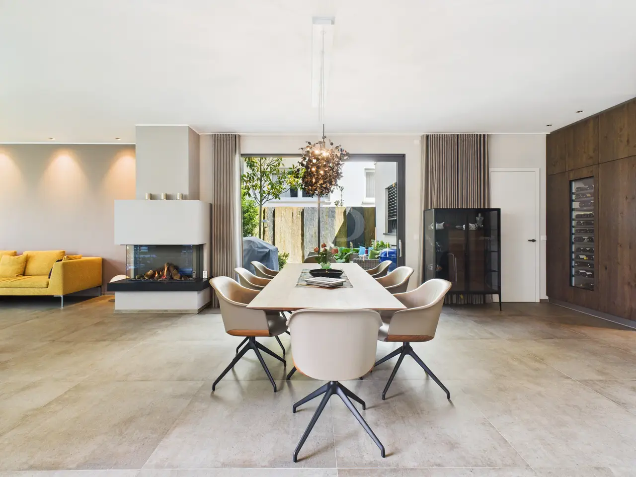 • Open-plan living and dining area with seamless design