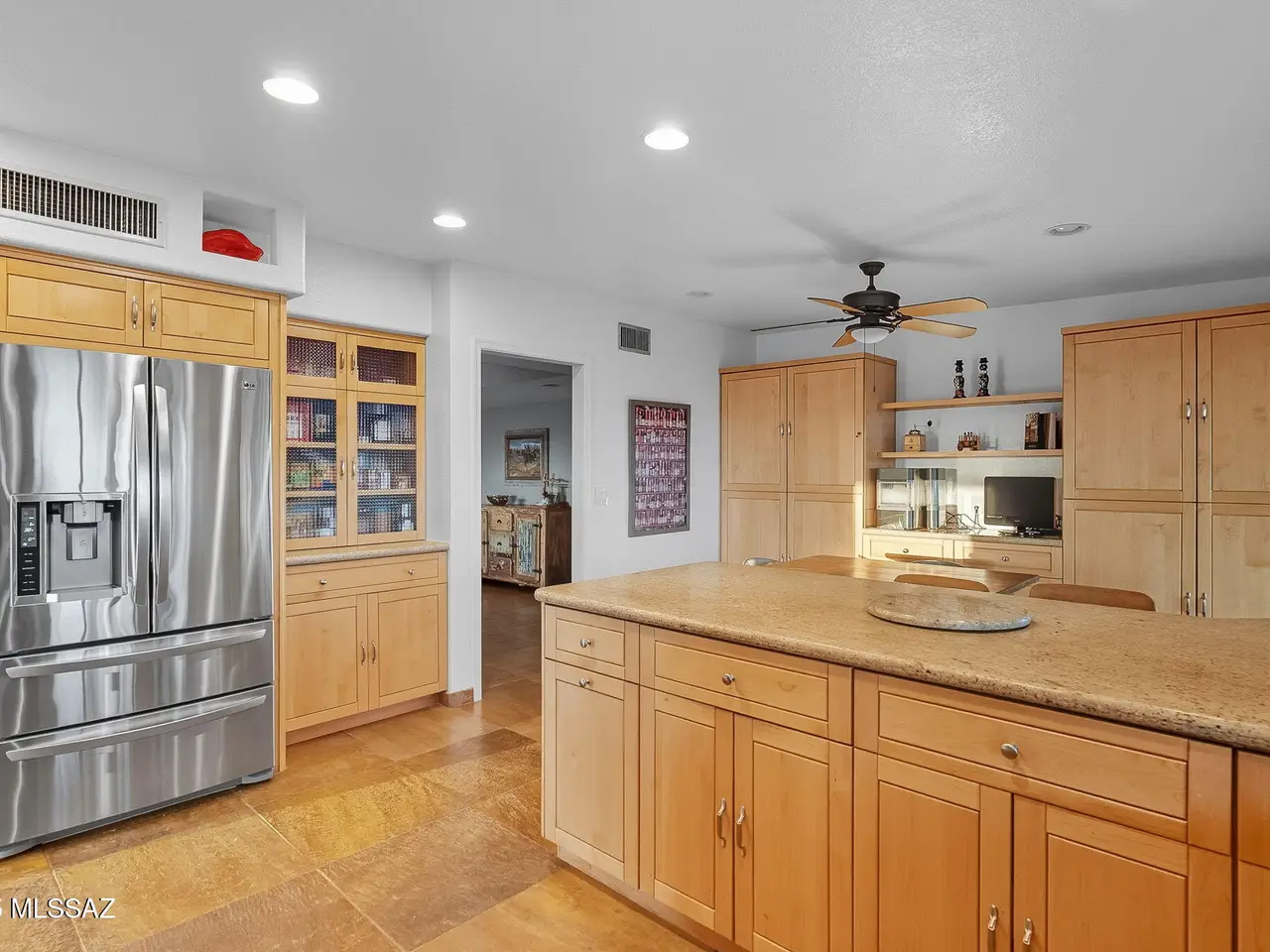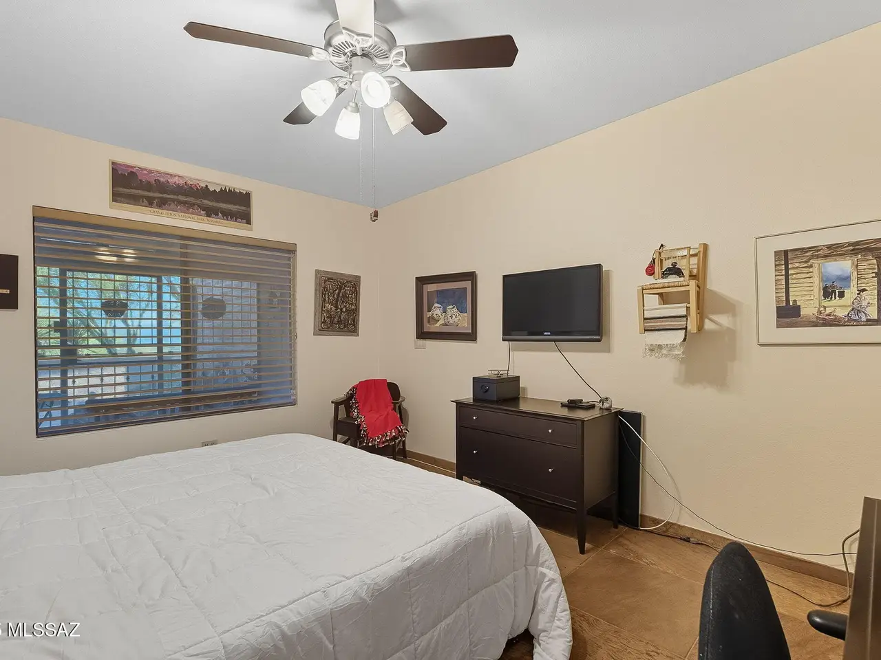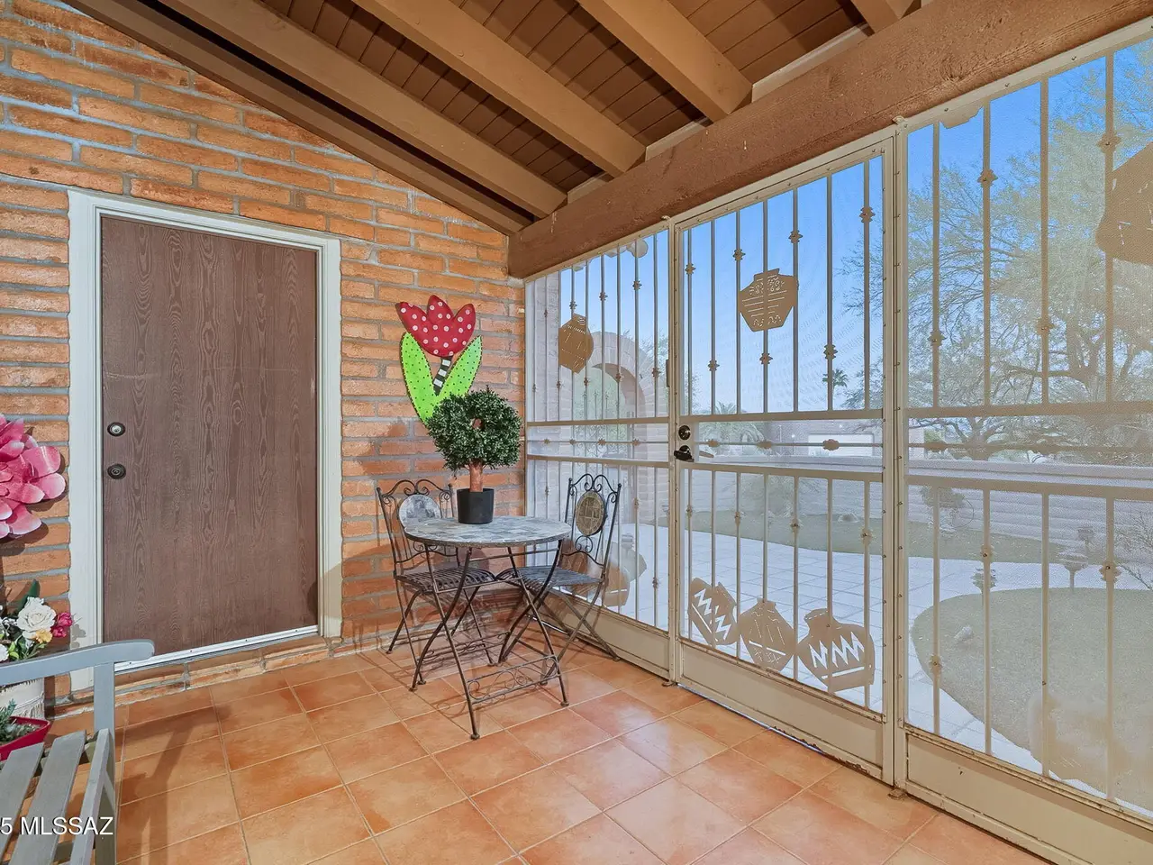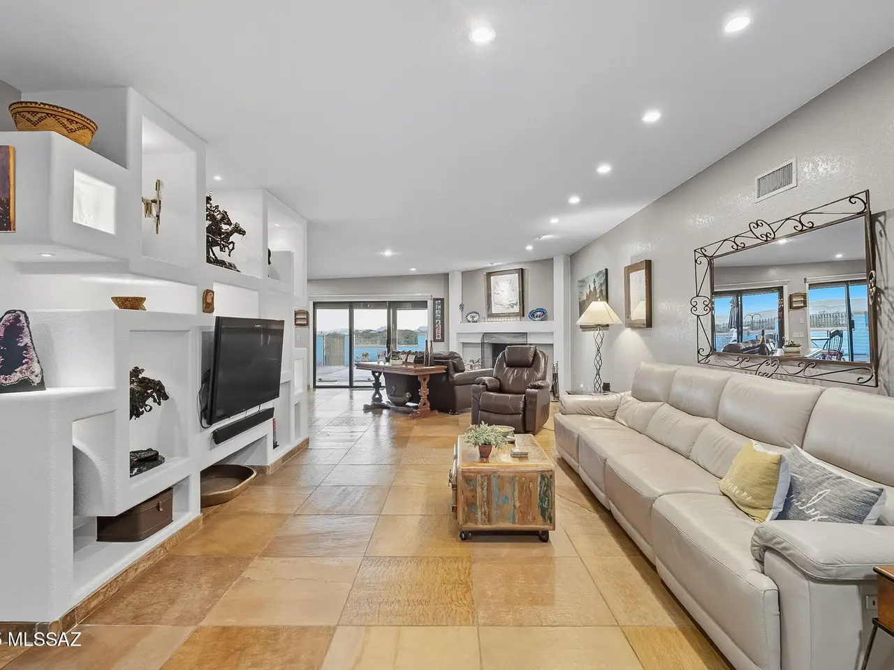 Detached expanded Miramar. Step into this beautifully appointed home with secure entry porch with a wrought iron enclosure offering both charm and peace of mind. Inside, you'll find a spacious living area featuring handcrafted built-ins--ideal for showcasing art, collectibles, and media. A cozy gas fireplace anchors the space, creating a warm and inviting atmosphere. The open dining room offers breathtaking views of the desert landscape and sparkling city lights, perfect for entertaining or quiet evenings. The versatile second bedroom doubles as a home office, complete with a custom Murphy bed, two built-in chests of drawers, and dual closets for maximum functionality. Recently remodeled bathrooms include an oversized master shower that feels like a private spa retreat.