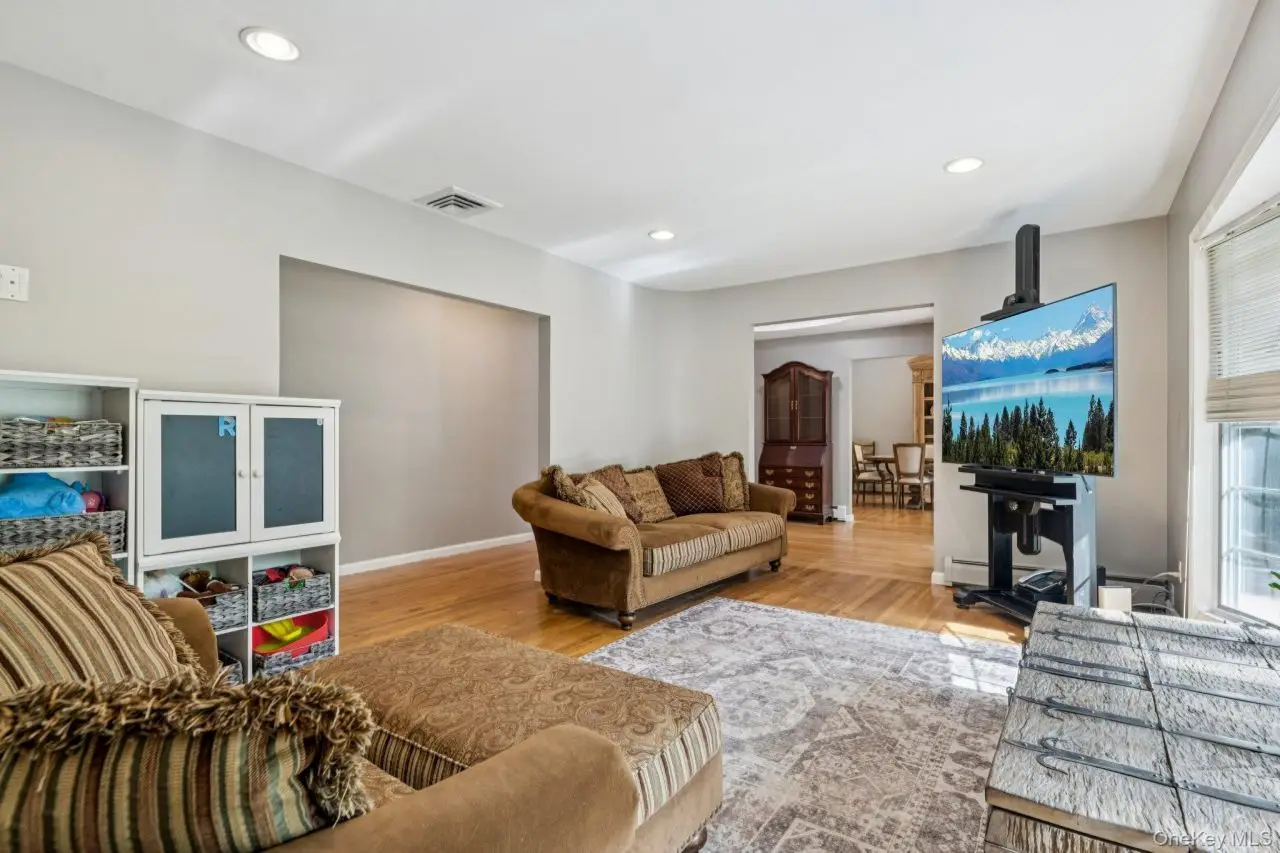 Prepare to fall in love with this stunning home nestled in the exclusive hamlet of Fort Salonga. Located within the highly regarded Kings Park School District, this is a rare opportunity to own a spacious ranch on a desirable lot.Enjoy true single-level living with an open-concept eat-in kitchen featuring granite counters and stainless steel appliances, hardwood floors, a cozy fireplace, and three main-level bedrooms. Step outside to your private oasis on over an acre of landscaped grounds. Relax and entertain with a dedicated garden area and a fenced, heated in-ground saltwater pool.Priced to sell, schedule your appointment soon. This gem will not last!
