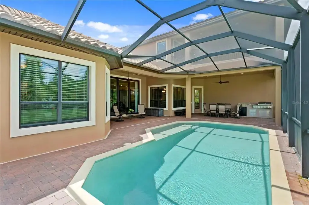 The charm of Ladera Estates - live expansively, privately, and beautifully. Known for its blend of tranquility and convenience, Ladera Estates offers a unique, gated lakefront community on Lake Merrywater. Welcome to 1213 Merry Water Drive with a timeless design, modern comfort, and breathtaking natural surroundings. Built in 2015 and situated on just under an acre with no rear neighbors, this custom-built residence offers 4,882 square feet of total living space. Set on .98 acres, this estate is designed for both grand entertaining and everyday luxury. Key Features: • GREAT ROOM – Enter through double doors into the Great Room with 12-ft ceilings, surround sound, and views of the pool, conservation and pond. A comfortable family room with sliding glass doors for seamless living to the outdoor terrace. • DESIGNER KITCHEN – An oversized granite island anchors the space, complemented by a hidden walk-in pantry with a coffee bar and dining room built in storage. Open concept living with an oversized casual dining room - ideal for gatherings large or small. • PRIMARY SUITE & MAIN LEVEL ROOMS – The main-level primary suite includes dual custom walk-in closets, and spa-inspired bath with freestanding tub and oversized walk-in shower. Three additional bedrooms, as oversized study, and drop-zone with built-ins next to a large laundry room complete the thoughtful main floor. • UPSTAIRS LIVING – Two oversized suites upstairs, each with private baths and large closets—perfect for guests, teens, or multigenerational living. The upstairs entertainment zone includes a large bonus room, wet bar with fridge, and balcony overlooking the serene pond and backyard conservation views. A separate movie room with 1/2 bath complete this entertainment space • RESORT-STYLE LIVING Heated pool with sunshelf, covered and fully screened terrace, full summer kitchen, and access to a pool bath. Lush, mature landscaping and lots of extra green space are a perfect space for play or pets • ADDITIONAL HIGHLIGHTS – Features 8-foot doors on both levels, 3-car garage, custom-finished walk-in closets, pantry and additional storage closet, crown and tray ceilings throughout. • This estate is more than a home- it’s a retreat. Wake up to sunrise views, unwind in complete privacy, and enjoy the serenity of expansive natural surroundings that draw you to Ladera Estates. • Located in Lutz- one of the Tampa Bay area’s most sought-after communities for its natural beauty, larger homesites, and tranquil lifestyle- you’ll enjoy the peace of country-style living with the convenience of being just minutes from top-rated schools, hospitals, dining, shopping, major highways, and Tampa International Airport. It’s the perfect balance of space, serenity, and accessibility.