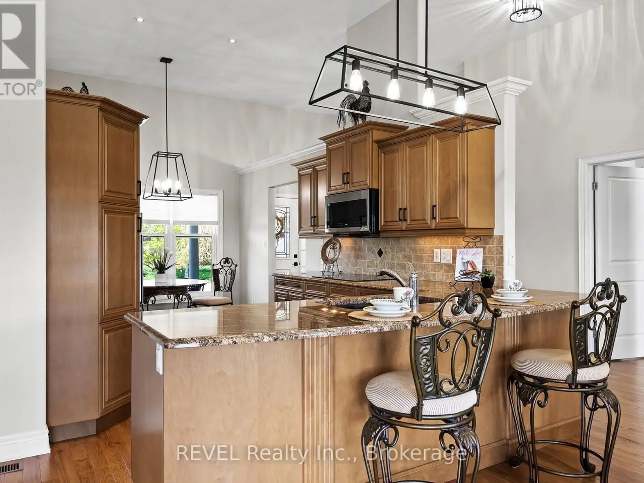 What you've been waiting for!! Rarely available, sought after interior bungalow with walk-out basement! The highly desired community of Ridgeway By The Lake offers serene living with all the amenities and a neighbourhood that boasts pride of ownership at every turn. Freshly painted inside and out, this 3 bedroom home has it all. Main floor primary bedroom with 5 piece ensuite bath, his and hers closets, cathedral ceiling and walk-out to the back deck. The front bedroom can also be used as an office, or guest bedroom and conveniently has a full 3 piece bath just outside it's door. The kitchen is ready for entertaining, with built in appliances including a new microwave and new dishwasher, granite countertops, breakfast bar and breakfast sitting area. Your open concept main floor features a formal dining area, cozy living room with gas fireplace, sunroom with skylight, multiple access points to the back deck, and a built-in wifi enabled sound system! Additionally you have central-vac for easy cleaning, potlights throughout and direct entry from the garage to your functional mudroom/main floor laundry room. And that's all just the main level! Downstairs you have a fully finished basement set up with all the potential for multi generational living, or the perfect space to relax and unwind. Complete with a bedroom, full bathroom, separate laundry, second gas fireplace, separate entrance and potential for a kitchen, it truly checks all the boxes. Open the door and walk-out to your covered stone patio area (2024) where you can take in and enjoy the peacefulness of no rear neighbours. Backing onto a ravine area, perfect for evening strolls, this home is one of kind! (id:7434)