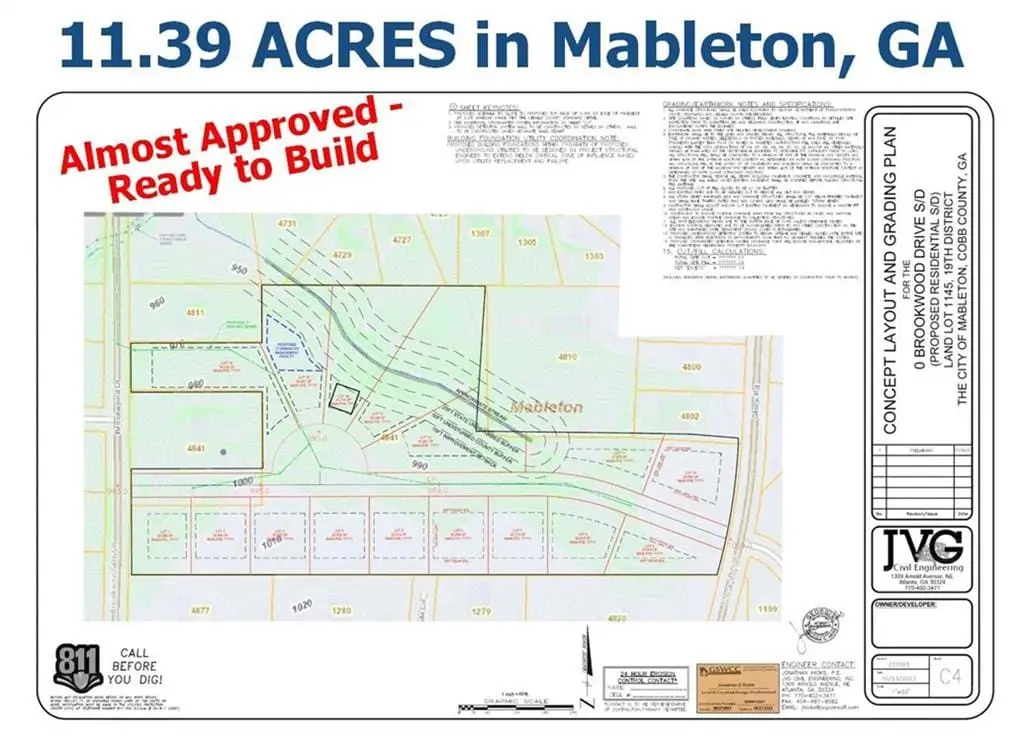 *** SUBDIVISION APPROVAL MOSTLY COMPLETED! *** All the hard work has almost been completed. This is WONDERFUL building opportunity in Mableton, GA on 11.39 Acres!! Builders and Developers don't miss this opportunity to be a part of this up-and-coming area of Cobb County. Favorable topo that can be beautifully developed. Zoned R-20 with all utility accessible. Lot is surrounded by Brookwood Drive, Glore Road and Bellemeade Cir. Great lot for all uses!