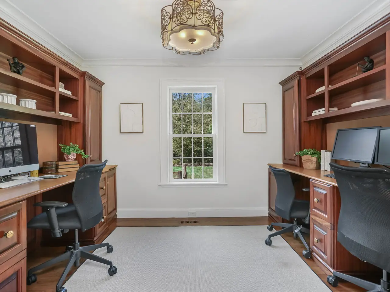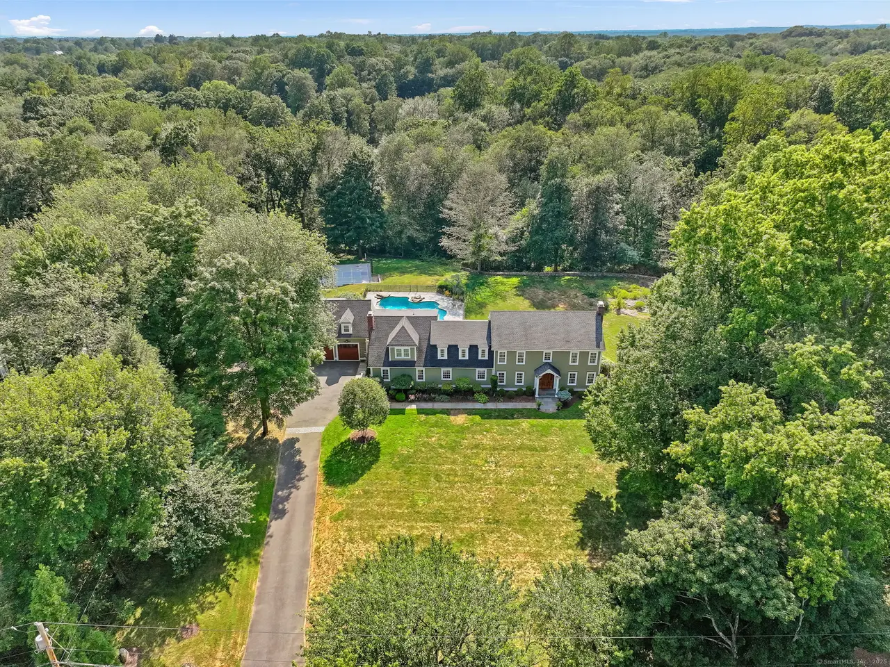 Welcome to 545 Shrub Oak Lane, an expanded Colonial on 2 private acres in Greenfield Hill. This home sits on a beautifully flat front yard that enhances its curb appeal. Fully renovated in 2012, the family room and oversized kitchen is the heart of the home. The custom designed kitchen has an 10 foot mahogany island with granite countertops, walk-in panty, and mahogany wood framed glass doors that create a seamlessly indoor-outdoor experience. The first level offers a formal living and dining room, an office and an expanded mudroom. Upstairs, the primary suite includes french doors to a private deck, a steam shower, a jacuzzi tub, walk-in closet, and a separate sitting room. Four additional bedrooms, two baths, and laundry room complete the upper level. The lower level offers a rec room, extra laundry, an office and ample storage. The oversized three-car garage with unfinished bonus space above is ideal for a in-law suite or future expansion. Outside is an entertainer's paradise, a custom designed lagoon-style pool with diving rocks, multiple bluestone patios, an elevated covered patio, two mahogany decks and an incredible recreational setup, including a full-size lighted basketball court, a turf area for bocce ball/batting cage, fire pit and more!