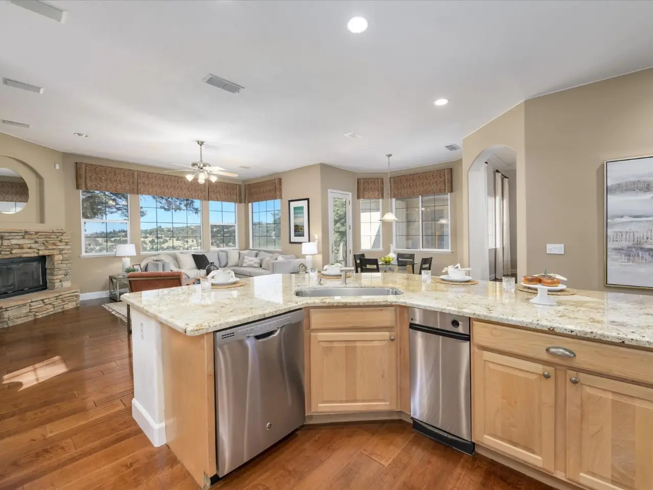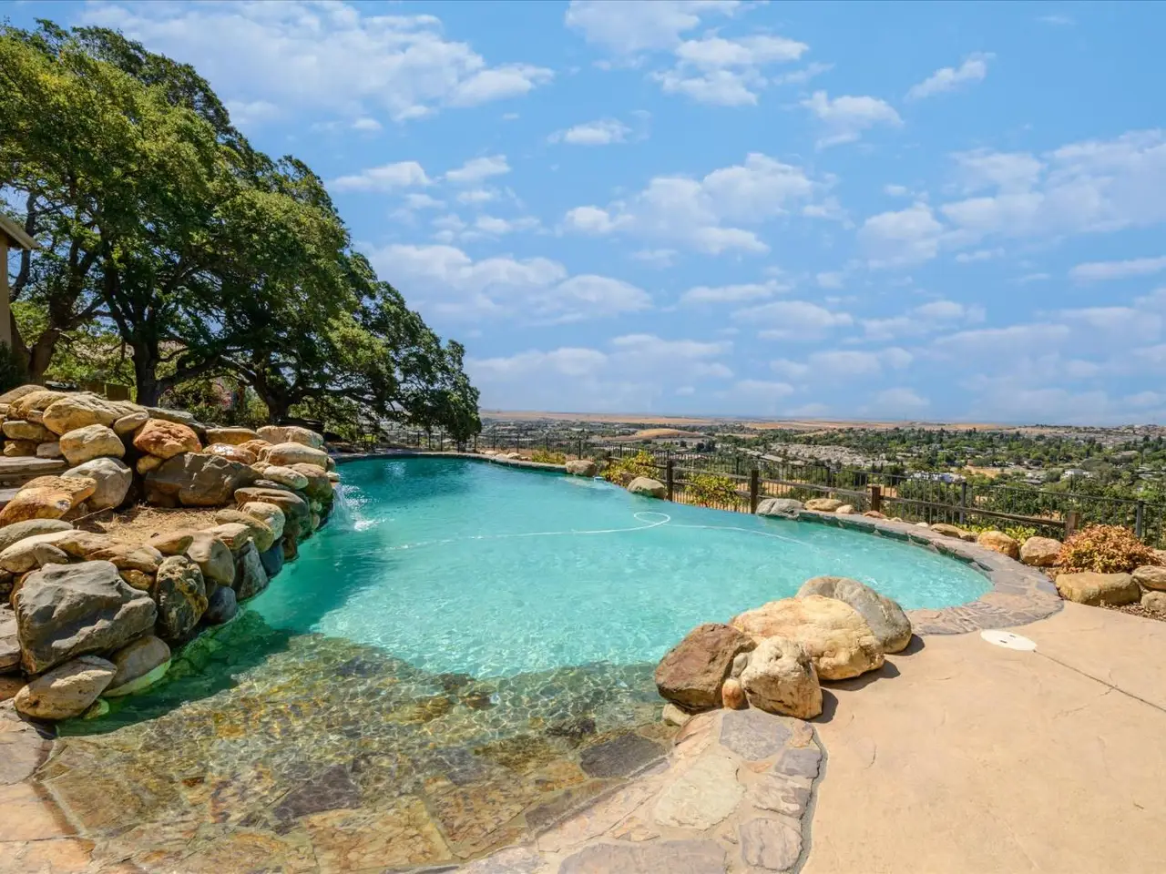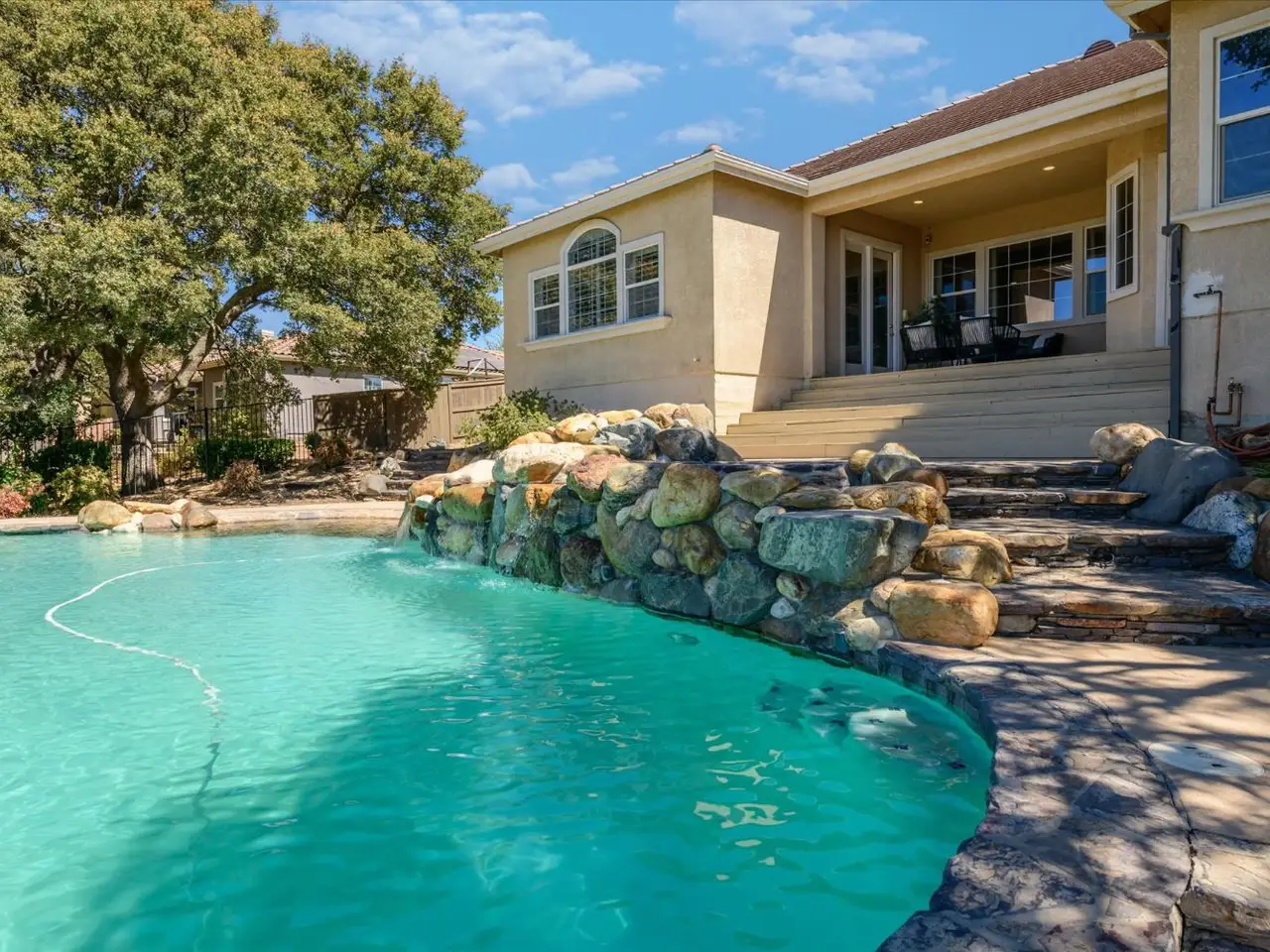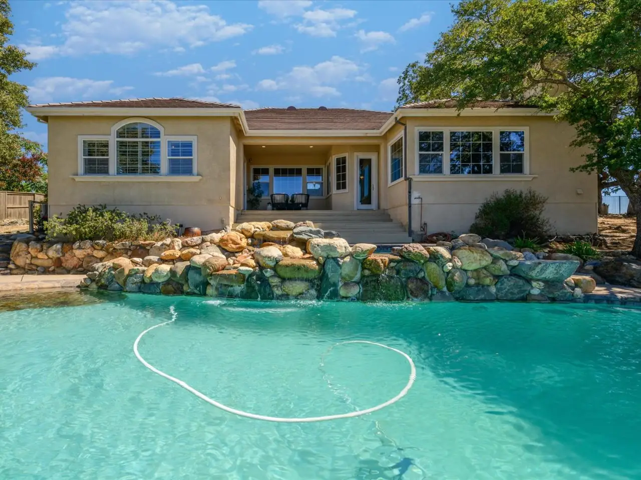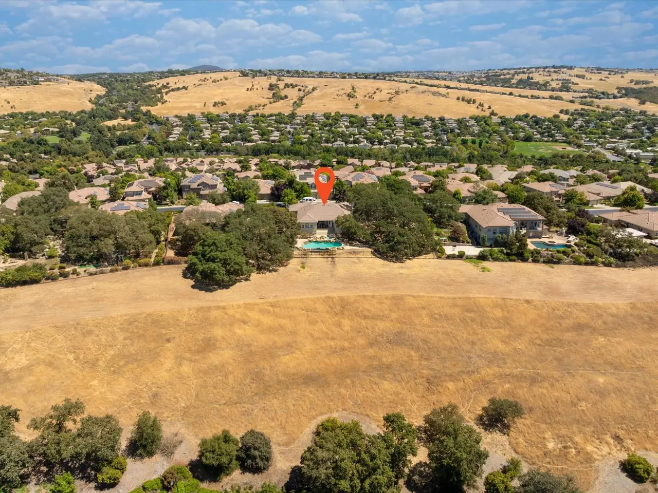 Welcome to your private retreat in the prestigious gated community of Serrano, where luxury living meets breathtaking scenery. This elegant single-story residence sits on a tranquil .57-acre lot shaded by mature oaks, offering unmatched privacy and serenity. Designed for both relaxation and entertaining, the home's open layout showcases a chef's kitchen with granite counters, stainless appliances, and a grand center island that opens to a spacious great room, while a formal living and dining room provide the perfect setting for entertaining with style. Expansive windows frame panoramic views of El Dorado Hills and the Sacramento Valley, filling the home with natural light. The primary suite is a true sanctuary, with direct deck access, a spa-inspired bath, and sweeping valley vistas. Outside, discover your resort-style escape with a sparkling infinity-edge pool, beach entry, and spa, where sunsets become your daily backdrop. A dedicated office or workout space, three bedrooms, and a rare 4-car garage complete the home's thoughtful design. Located in the highly desirable Oak Ridge High School district and surrounded by Serrano's trails, parks, and golf, this is more than a home - it's a lifestyle.