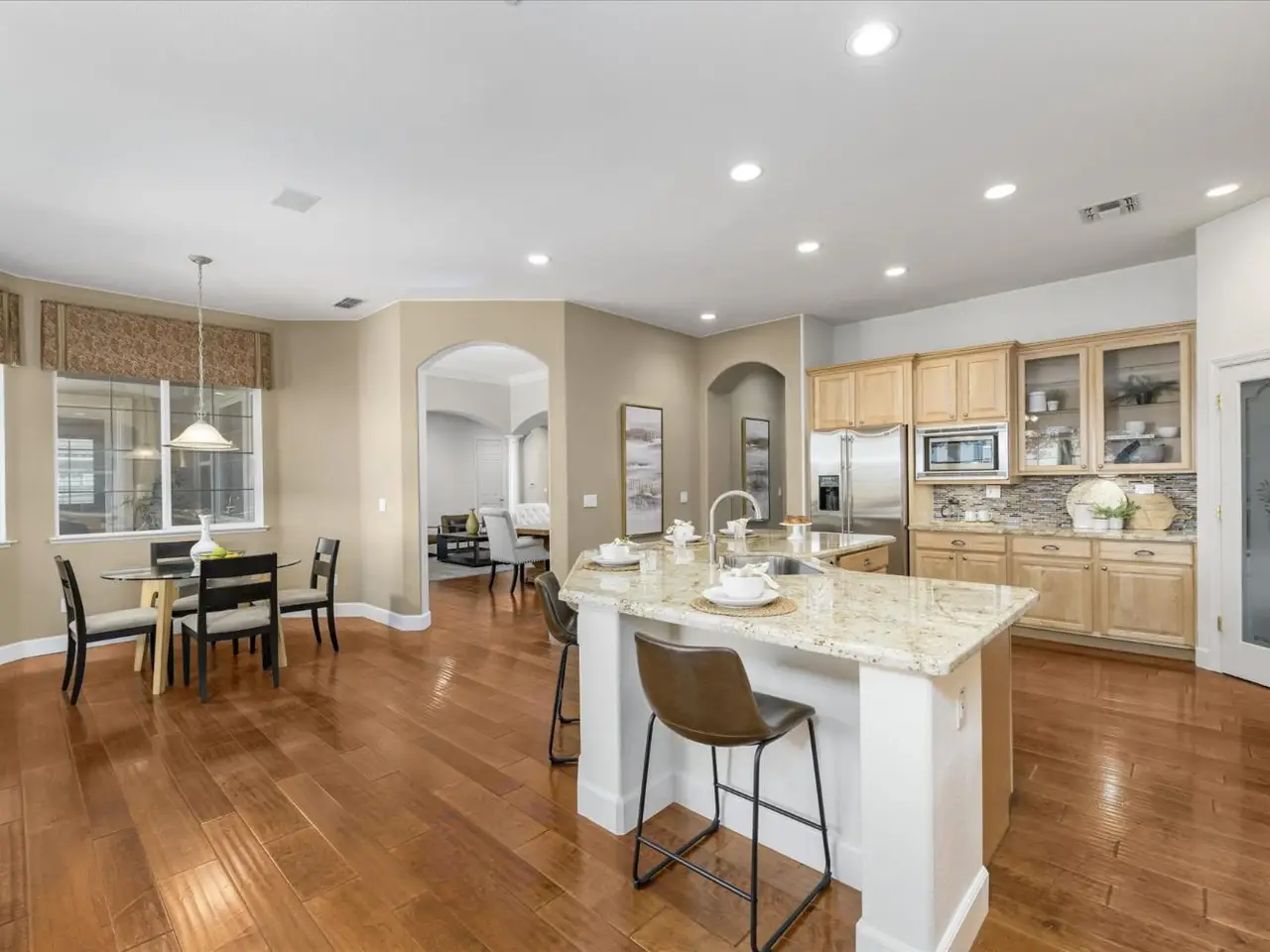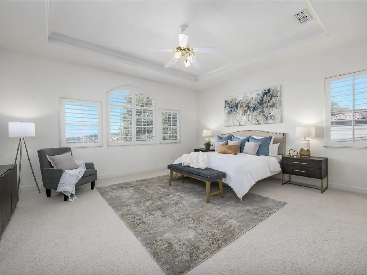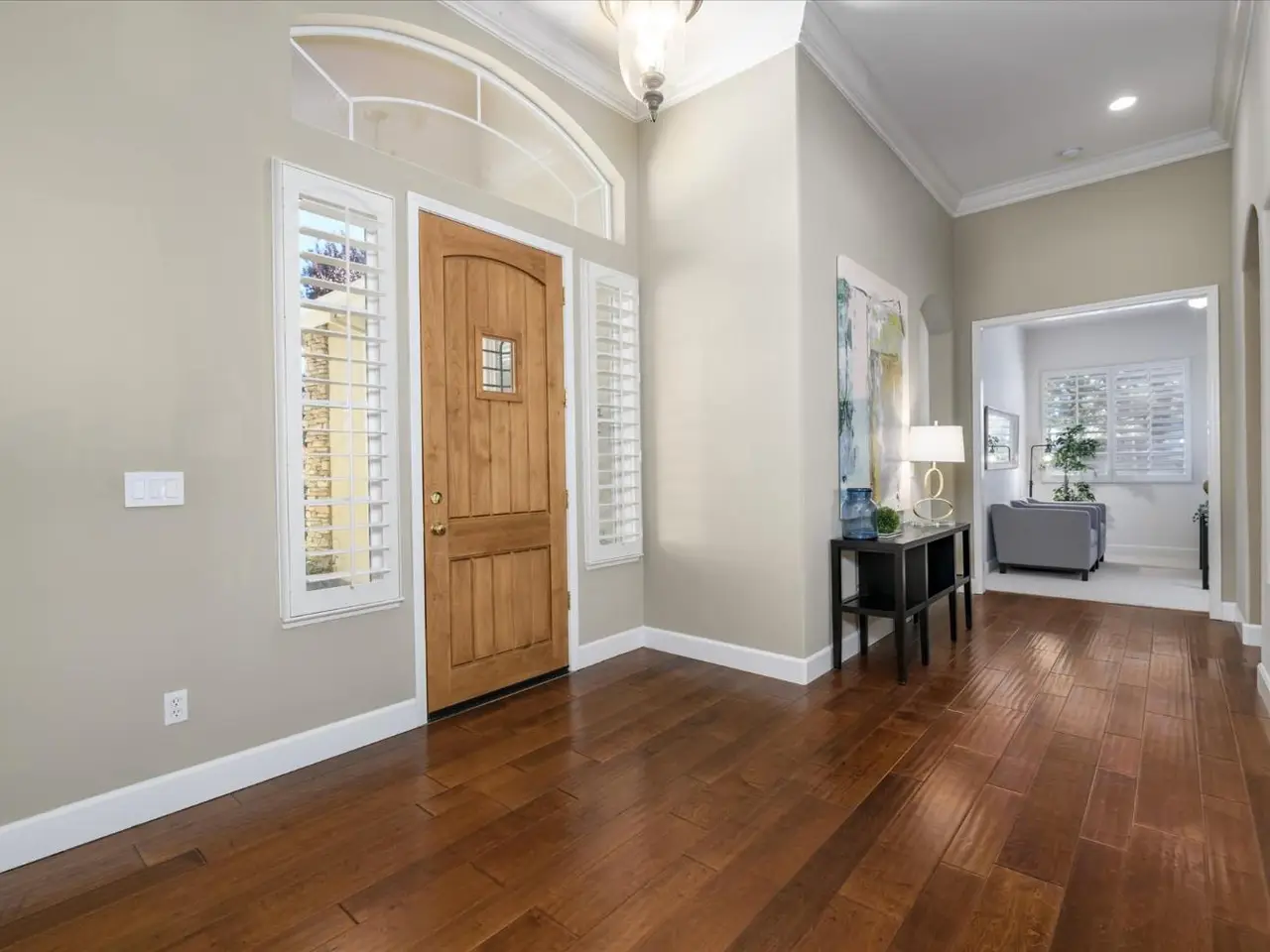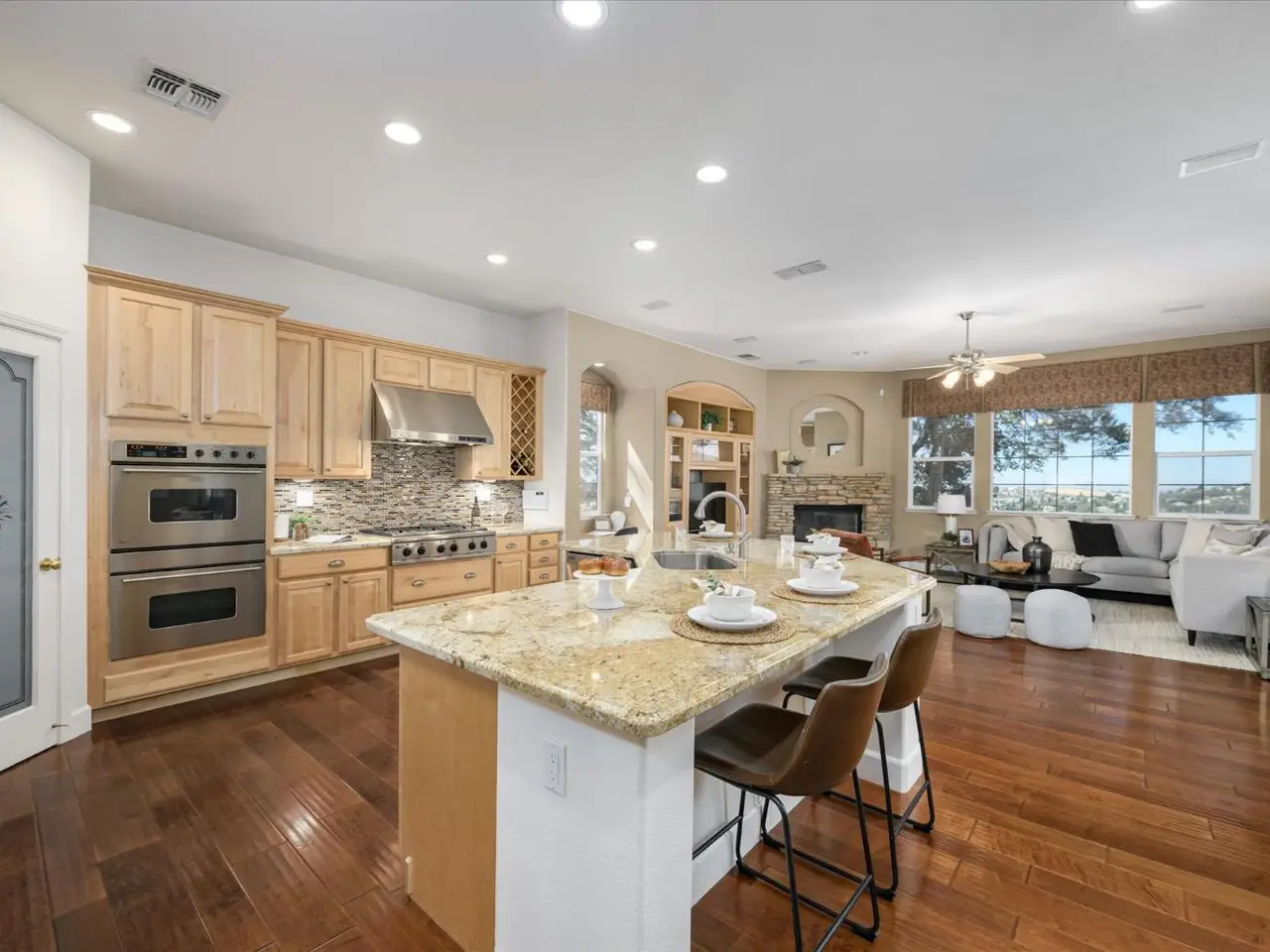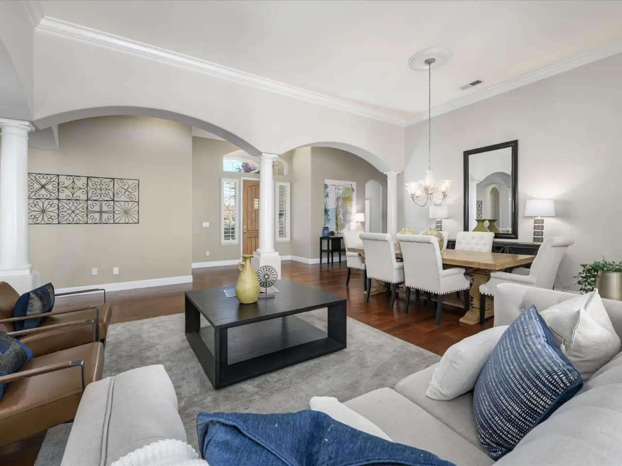 Welcome to your private retreat in the prestigious gated community of Serrano, where luxury living meets breathtaking scenery. This elegant single-story residence sits on a tranquil .57-acre lot shaded by mature oaks, offering unmatched privacy and serenity. Designed for both relaxation and entertaining, the home's open layout showcases a chef's kitchen with granite counters, stainless appliances, and a grand center island that opens to a spacious great room, while a formal living and dining room provide the perfect setting for entertaining with style. Expansive windows frame panoramic views of El Dorado Hills and the Sacramento Valley, filling the home with natural light. The primary suite is a true sanctuary, with direct deck access, a spa-inspired bath, and sweeping valley vistas. Outside, discover your resort-style escape with a sparkling infinity-edge pool, beach entry, and spa, where sunsets become your daily backdrop. A dedicated office or workout space, three bedrooms, and a rare 4-car garage complete the home's thoughtful design. Located in the highly desirable Oak Ridge High School district and surrounded by Serrano's trails, parks, and golf, this is more than a home - it's a lifestyle.