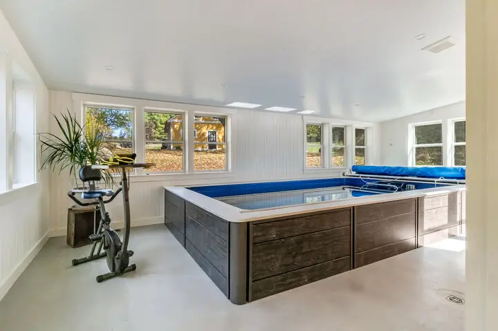Temperature-controlled fitness room with Endless Pool