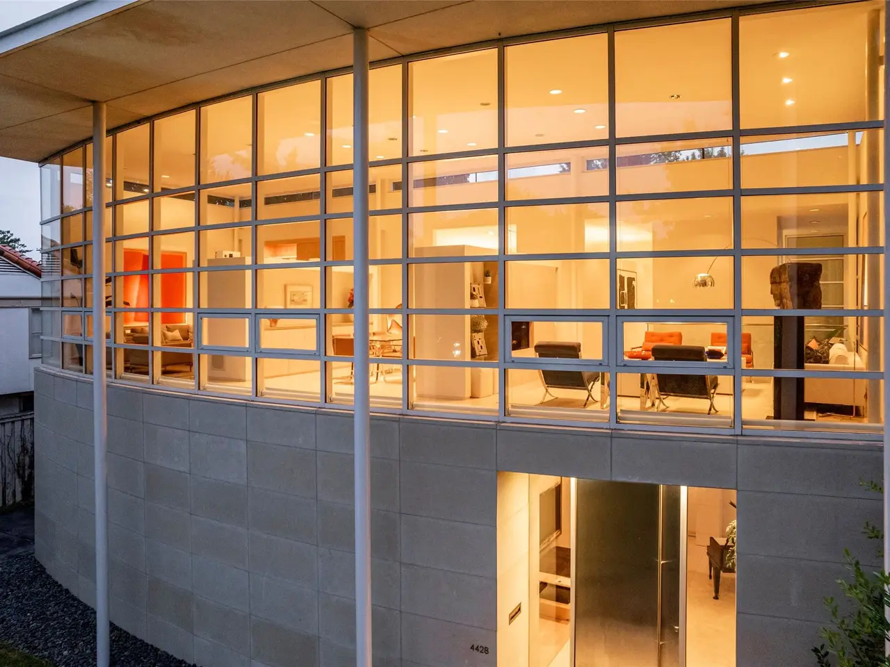 Experience the epitome of contemporary luxury in this breathtaking limestone-clad home, designed by renowned architect Lionel Morrison and built in 2001. This architectural masterpiece offers an exceptional blend of style, comfort, and functionality, located steps from Flippen Park. The first floor features a spacious entry with beautiful marble floors, elevator and stairwell access to the second floor, as well as generously sized secondary bedrooms, each with an en-suite bathroom. The second floor offers open-concept living spaces and dining with tall floor to ceiling windows and sweeping views of Flippen Park. The recently renovated sleek Bulthaup kitchen is equipped with Miele appliances, a dedicated wine refrigerator, and convenient access to a large outdoor kitchen and living area. An oversized primary suite with a spa-inspired en-suite bathroom and a study complete the second floor. The low maintenance backyard is lined in evergreen magnolias for privacy, has a tranquil water feature and gas fireplace perfect for entertaining. A separate, additional 282 sq ft air conditioned flex space adjacent to the backyard is currently storage, but plumbed and ready to be converted into a guest suite, gym or studio. Additional highlights are pier and beam construction, a large 3-car garage with ample storage, and 3 new AC units for modern efficiency and comfort. This timeless home offers a unique opportunity to live in an architecturally significant home while enjoying the serenity and beauty of Flippen Park. Short walk to Highland Park Village, Bradfield Elementary, and Whole Foods. Schedule your private showing today!