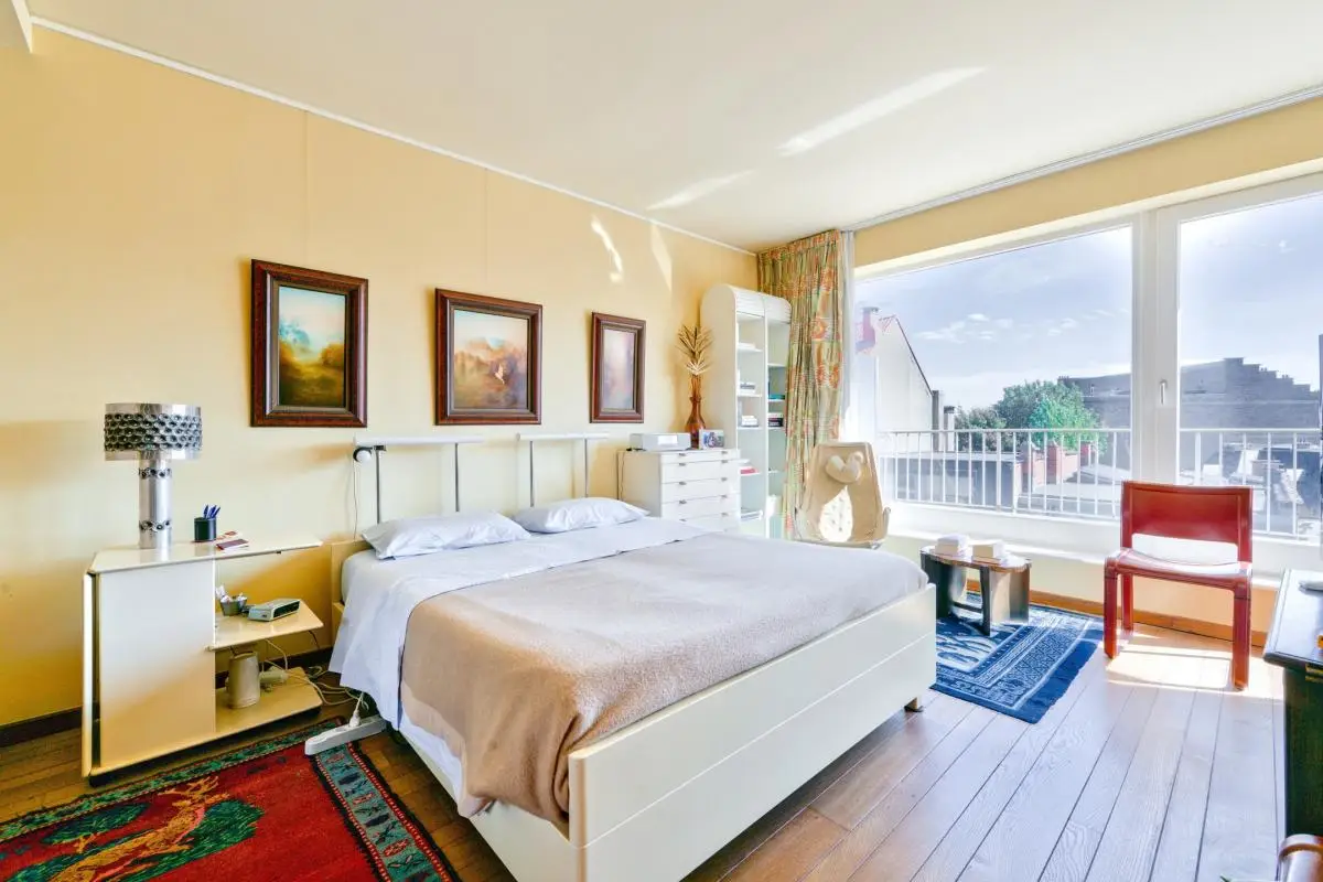 Molière neighbourhood, beautiful duplex penthouse of +/- 230 m² + with beautiful, spacious terraces totalling +/- 84 m² located on the 5th and 6th floors of a classic 1975 building. Beautiful reception rooms, fully equipped kitchen, 3 bedrooms, 2 bathrooms. Double garage. EPC D