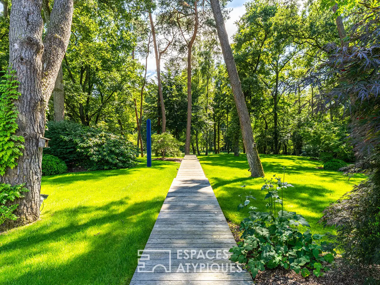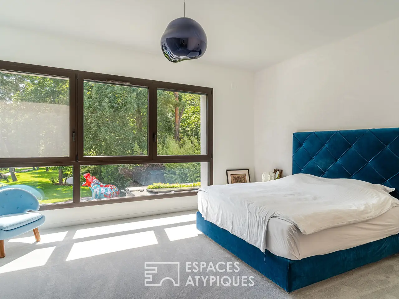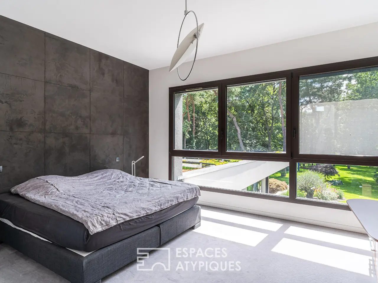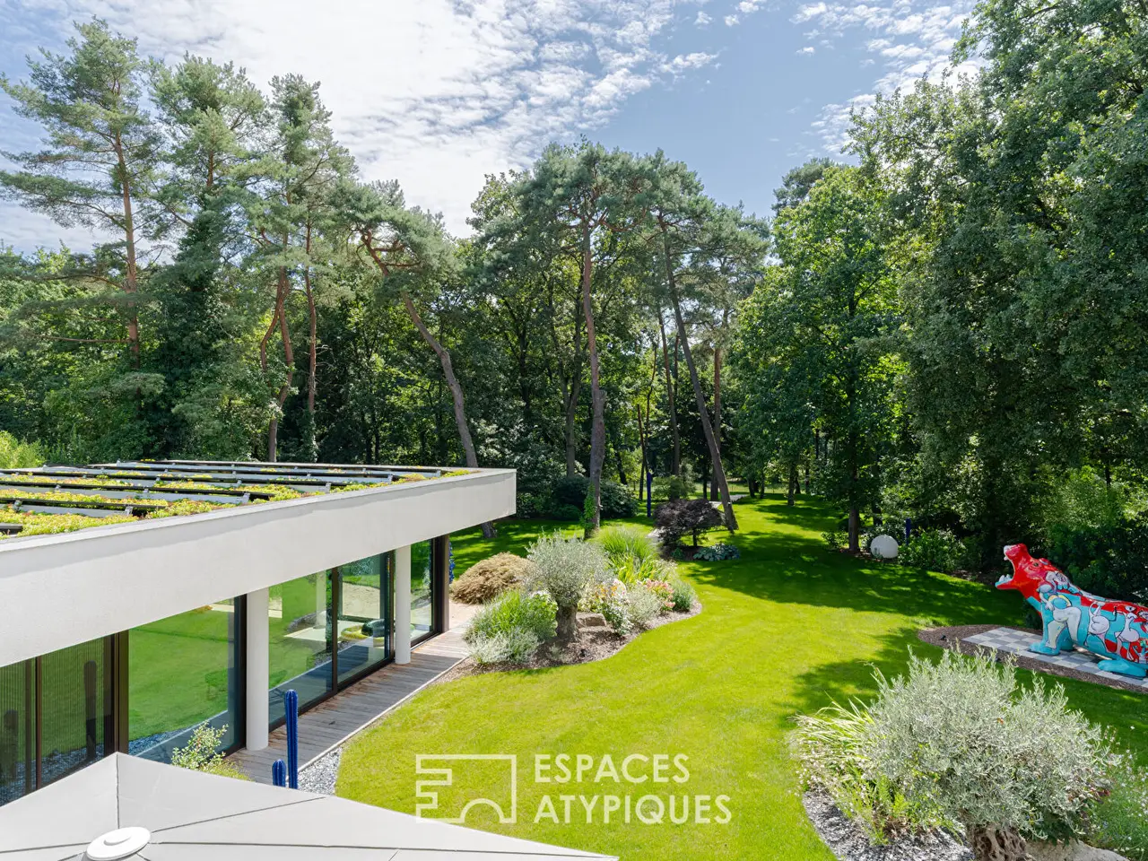 Nestled in a privileged setting on the outskirts of Haguenau, this architect-designed villa of 905 m², built in 2014, unfolds in complete privacy on a 7,500 m² landscaped park. With a distinctly contemporary inspiration, it stands out for its very high-end finishes and perfect integration into its natural surroundings. The ground floor is organized around a majestic 118 m² living space, where natural light enhances the generous volumes. It adjoins a 47 m² Bulthaup dining kitchen accompanied by a large wine cellar. From the living room, a bold and sculptural opening leads to an immersive cocoon: a private cinema room for unforgettable evenings. This level also features a luxurious master suite of over 90 m², complete with a dressing room and bathroom. The choice of noble materials and meticulous attention to detail reflect a rare level of excellence. A monumental staircase leads to the upper floor, which distributes the sleeping areas with five suites, two offices, a laundry room, and a dojo. Complementing this, a 200 m² wellness area reminiscent of a luxury hotel spa includes an indoor pool, sauna, hammam, and gym, creating a living space designed for absolute comfort. The outdoor spaces have been conceived as a natural extension of the home. Adorned with bicentennial olive trees and centennial Japanese maples, the carefully landscaped park and its large 100 m² terrace invite tranquility. A green roof and solar panels emphasize an environmentally conscious design. Situated in a quiet area near a forest, the villa benefits from quick access to shops and schools. This exceptional property, a signature of prestigious real estate, embodies a rare combination of architectural luxury and constant dialogue with nature. A truly unique home offering an extraordinary living experience. REFERENCE: 1656 Additional Information: 10 rooms 6 bedrooms 3 bathrooms 4 shower rooms 1 floor Land area: 7,500 m² Parking: 6 spaces Property tax: €5,889 Energy Performance Diagnostics: Primary energy consumption: B – 74 kWh/m²/year Extremely energy-efficient property CO₂ emissions: 2 kg CO₂/m²/year Very low CO₂ emissions Estimated average annual energy costs for standard use, indexed for 2021, 2022, 2023: €4,790 – €6,530 (including subscription) Agency Fees: All fees are VAT-inclusive and borne by the seller Mediator: Mediation Franchise-Consumers www.mediation-franchise.com 29 Boulevard de Courcelles, 75008 Paris Information on risks related to this property is available at: www.georisques.gouv.fr
