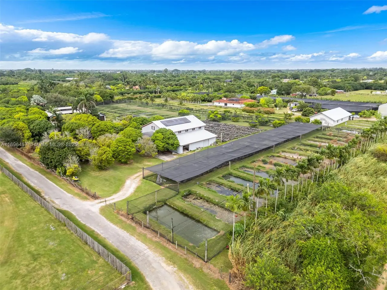 Approximately five-acre unique parcel in Redland. Custom Keys/Bali vibe pool home. She’s a 3/2 pool with lower level office, cabana or fourth with covered parking & equipment storage on ground level. The gem is the 6,200-plus square foot detached CBS double decker workshop can handle car lifts in center with office suites and bath. The property is surrounded by groves and fish pools dug into the aquifer. They are close enough to be connected into 1 or multiple large pools. The oolite removed can be used to construct falls. Could be a local aquatourism site or an amazing home. Imagine the possibilities on this agri exempt property. The compound and the workshop currently house tropical fish. The business, fish or equipment needed is not included. All can be negotiated if desired. The cement tanks are excluded as well.
