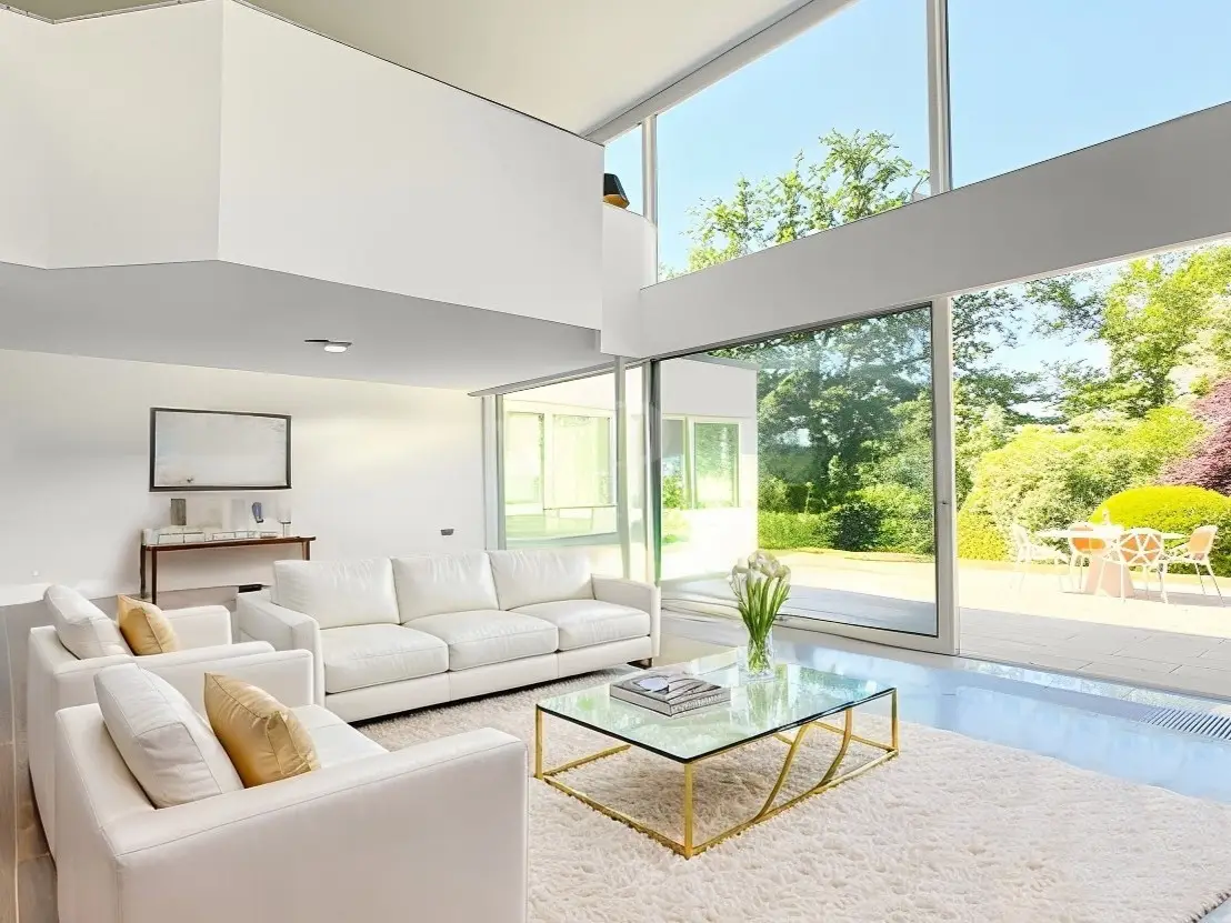 A rarity in the first row above the Bottigtal - Friedrichsdorf-Seulberg! Precious natural materials and modern building technology form an incomparable symbiosis in this impressive Bauhaus-style villa, whose architecture conveys lightness and a floating effect. The result: a luxurious home to feel at home in, equipped with every conceivable detail to make living an experience. Large glass fronts, granite stone and stainless steel - these are the basic elements that are stylishly reflected in and throughout the house and create a unique atmosphere reminiscent of a vacation in a luxury hotel. As soon as you enter the property, you can see the perfect staging of the various areas - the entrance in absolute privacy, the various entrances to different living areas, the park-like outdoor area with several terraces and a beautiful view directly into the Bottigtal nature reserve and, of course, a very spacious interior with various possible uses. The cozy lounge area with fireplace in front of the open-plan living and dining area and the versatile seating on the various terrace areas impress with their spaciousness, as the floor-to-ceiling, large windows facing the garden allow the indoor and outdoor areas to merge seamlessly. The modern designer kitchen with adjoining cold room and dining area in front leaves nothing to be desired, even for professional chefs, while also providing a cozy atmosphere for social gatherings with family and friends. The high-quality granite floors, which are not only found in the living area, are of timeless elegance and the best workmanship. Other areas on the garden level can be used in a variety of ways, including an indoor pool and whirlpool that have since been built over and could be reactivated with a little effort. A spacious home office or guest room with en-suite bathroom and the utility rooms are also located on this level. Another highlight on this floor is the inviting wellness area with sauna and floor-level rain shower. Two separate staircases lead to the second floor, where the gallery area and various bedrooms, offices, guest rooms and sports rooms with various bathrooms are spread over two wings. One of the bathrooms is adjoined by another sauna with a walk-in rain shower. Two staircases lead to the second floor, where various bedrooms, work and sports rooms with various bathrooms are spread over two wings. This underlines once again the versatility of the house, e.g. also as a two-family house (the individual living areas are already legally divided by a declaration of division). High hedges and walls all around the property ensure sufficient privacy and focus the view on the nature reserve directly in front of it with a magnificent view of the Bottigtal valley. The spacious double garage with adjoining parking spaces provides dry access directly into the house. This house can hardly be described, when would you like to experience it?
