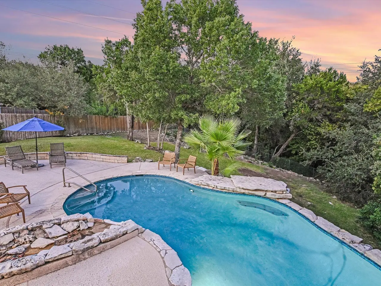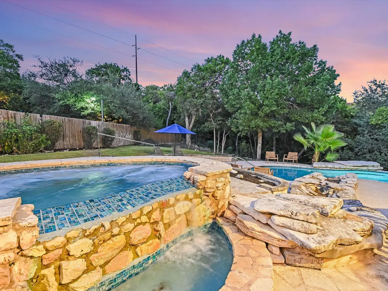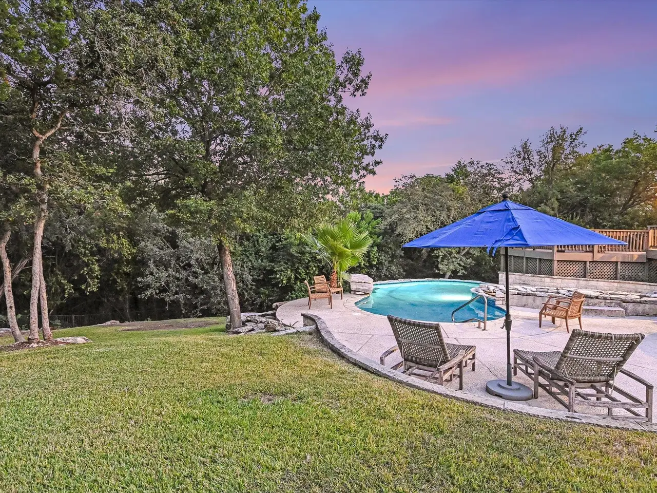 Well-maintained and updated home on iconic Mount Bonnell Rd, bordering the Bright Leaf Preserve with grandfathered private park and Lake Austin access via Mount Bonnell Shores Colorado Crossing park--no HOA dues required. Upgrades include a custom 6' stone wall with gated entry, extended paver driveway, and 8' garage extension. Inside features hardwood flooring, open living/dining, updated kitchen with gas cooktop, white cabinetry, and double ovens. Primary suite opens to a full-length back deck leading to a resurfaced pool/spa (2021). Spa-like primary bath, built-ins in living room, and updated lighting throughout.Major systems include: new windows (2024), new roof & skylights (2023), HVAC (2015), spray attic insulation. The walkable attic offers conversion potential for added square footage or an apartment. A rare Austin property blending privacy and functionality.
