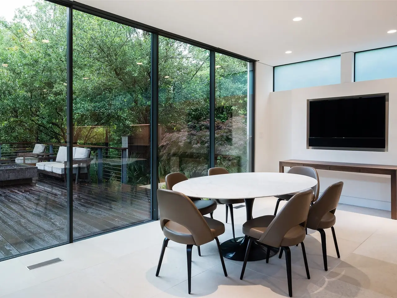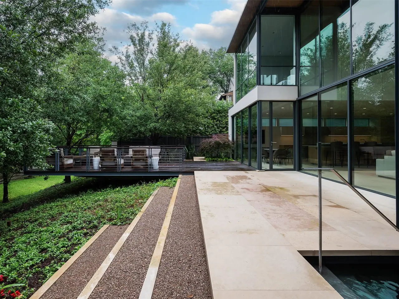 Introducing a stunning contemporary home in Park Cities. This architectural gem, designed by Oglesby Greene, offers an exceptional living experience. With 4 bedrooms and high-quality finishes, this home boasts floor-to-ceiling windows that bathe the interior in natural light. Enjoy the tranquil backyard in the cantilever deck overlooking the creek, a two-story living room with a fireplace, and a master bedroom featuring its own cozy fireplace. Don't miss the unique touch of the koi pond. This property is a true masterpiece of modern design.
