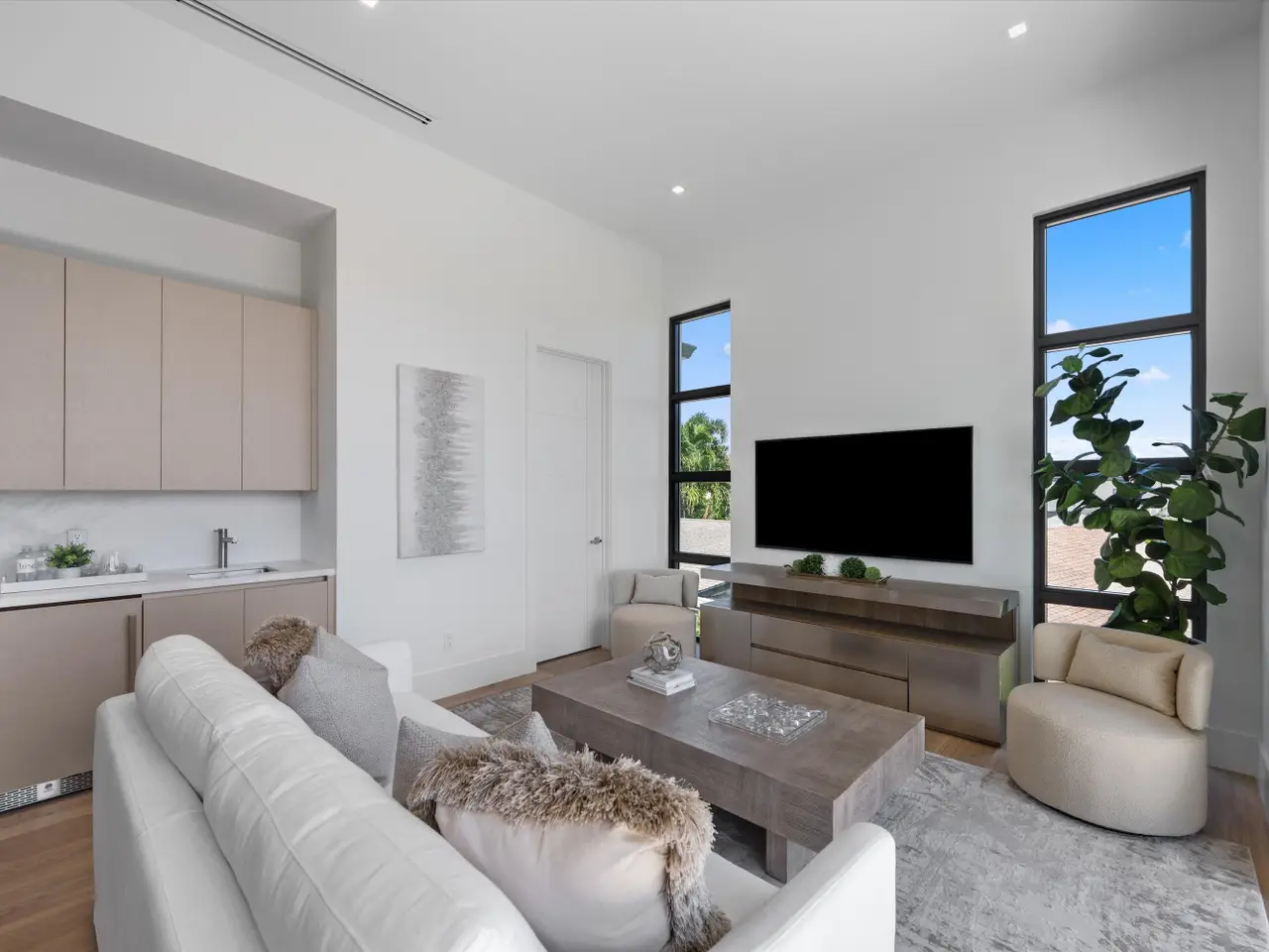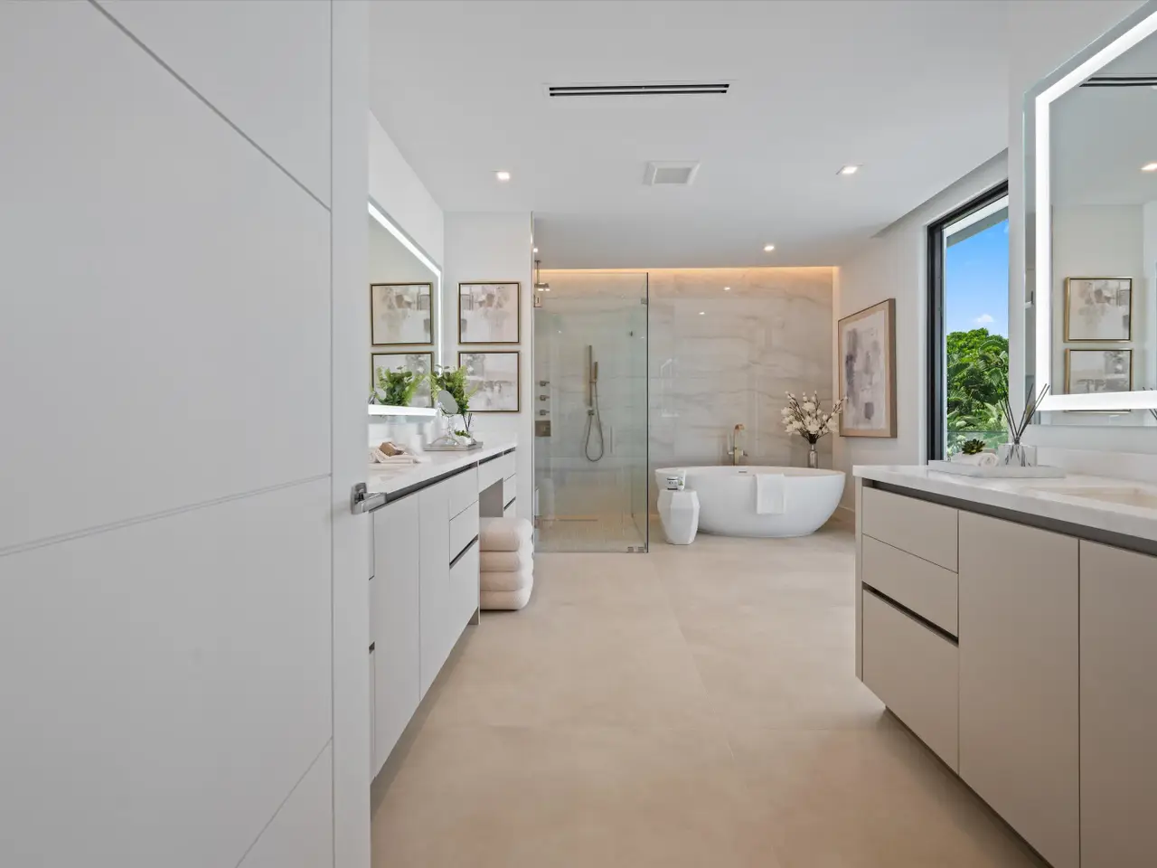 Introducing an extraordinary Zabci Custom Home, poised to grace the highly coveted Mizner Park section of Boca Villas. This remarkable residence embodies the pinnacle of luxury living in one of Palm Beach County's most prestigious neighborhoods, where world-class golf, elite tennis, gourmet dining, high-end shopping, and breathtaking ocean beaches are merely moments from your door.This unparalleled home features five en-suite bedrooms, and 6 full and 1/2 baths, complemented by an expansive loft and a full-sized home office, exquisitely designed to blend comfort with versatility. A private elevator and a state-of-the-art 32 KW generator elevate convenience, while strategically placed laundry rooms on both levels streamline daily living. With pre-installed wiring, this home is primed for seamless customization to accommodate all your cutting-edge smart technology aspirations, merging modernity with imaginative potential. As you enter, you are greeted by a grand two-story foyer adorned with a striking mono stringer staircase, crafted from tempered glass and ash wood treads, serving as a breathtaking centerpiece. The oversized gourmet kitchen is a culinary masterpiece, featuring a stunning 14-foot marble island that effortlessly accommodates ten, paired with high-end appliances concealed within exquisitely designed cabinetry. The dedicated home office provides an inspiring workspace, complete with a connecting bath for utmost convenience. This residence is an entertainer's dream, boasting an outdoor haven tailored for social gatherings, featuring a lavish covered lanai and a fully equipped BBQ kitchen. Ascend to the second floor, where elegant natural hardwood oak flooring reigns, leading to an inviting open loft space that enhances the home's allure. The sumptuous primary suite is a sanctuary of relaxation, offering two expansive closets and a spa-like bathroom replete with double vanities, an indulgent shower featuring six water outlets, and a separate soaking tub. Revel in serene views of the 38' x 10' pool from your private 20-foot covered balcony off the primary suite. This exquisite home is a perfect synthesis of refined design, modern amenities, and an extraordinary lifestyle. Your opulent paradise awaits in Boca Villas!