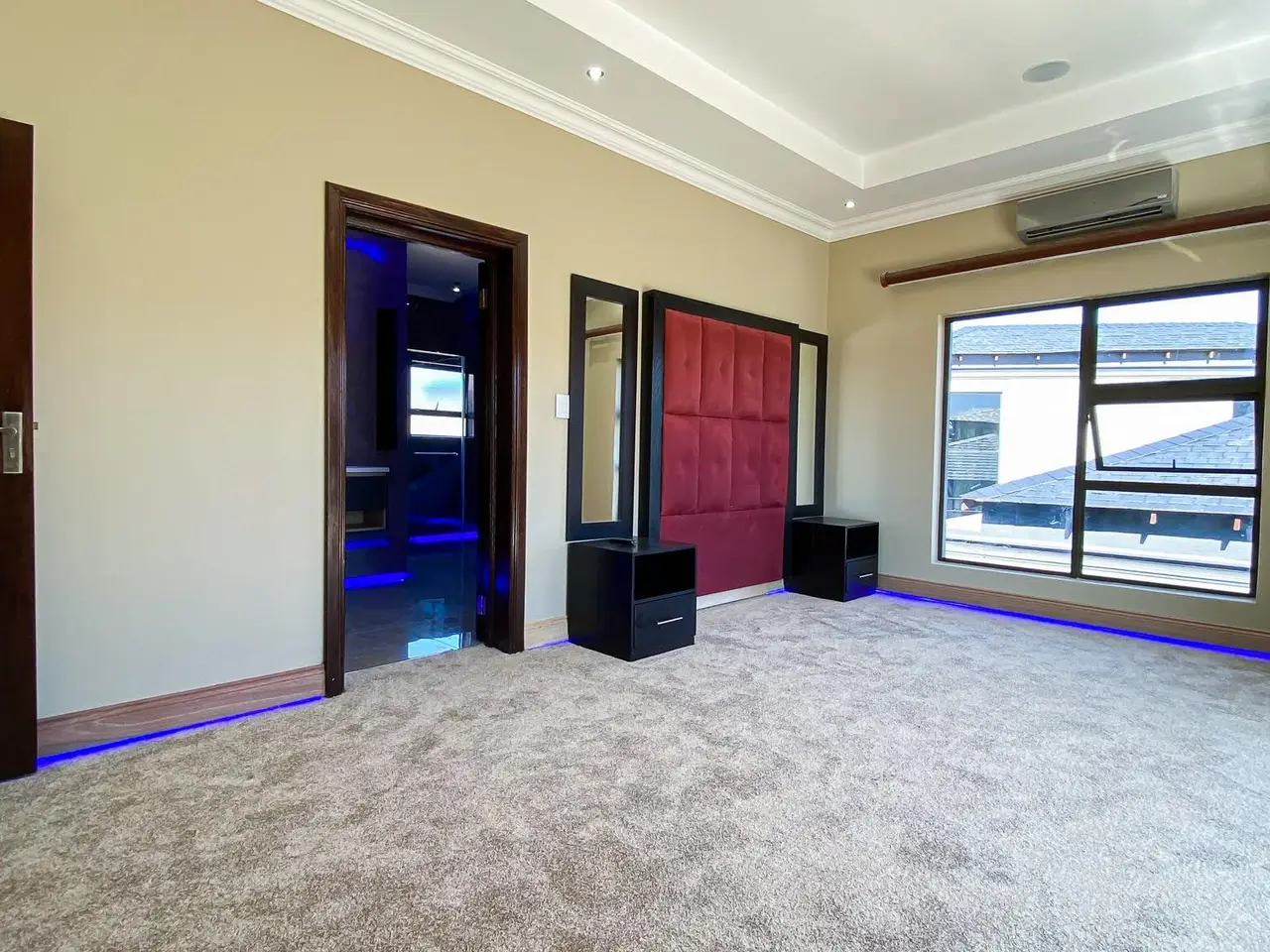 The charming and prestigious three storey home is set in a sought-after golf Estate with 24hr security. The house boasts six bedrooms en-suite, 4 garages, and domestic accommodation. The elegant and stylish home features an immaculate kitchen with built in appliances with a separate scullery comprising of open plan living / dining room area. Undercover patio with a built-in braai that leads to a sparkling pool. The master bedroom includes a stunning walk in closets and a balcony and a Pyjama Lounge. The additional features include Gym, Sauna, Study, Cinema Room, Bar area, and Laundry room. The Estate has tennis courts, squash courts, various parks, a clubhouse with a Restaurant and Coffee shop, Soccer field, Basket-ball court and access to walk along the golf course cart route. It's a family estate with a lifestyle that will allow you to enjoy your time at home. The Estate is situated centrally located between Johannesburg and Pretoria and its within easy reach of the Gautrain station and airports.