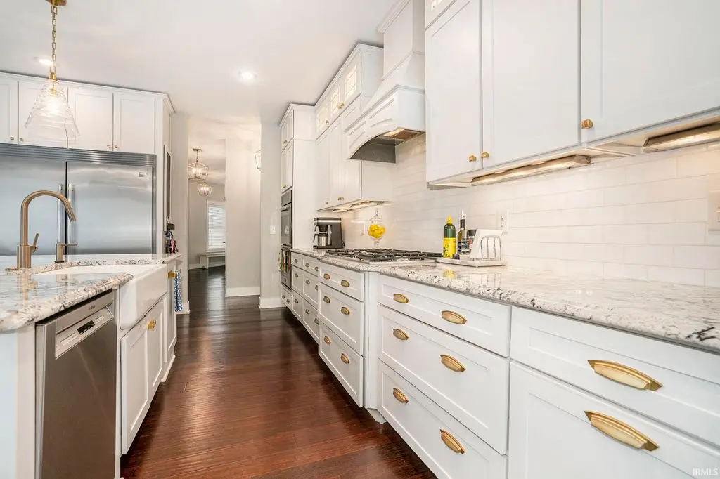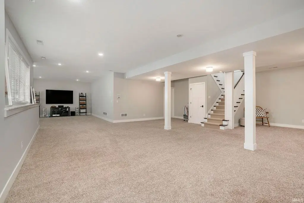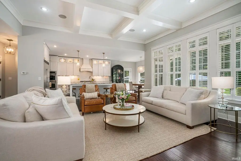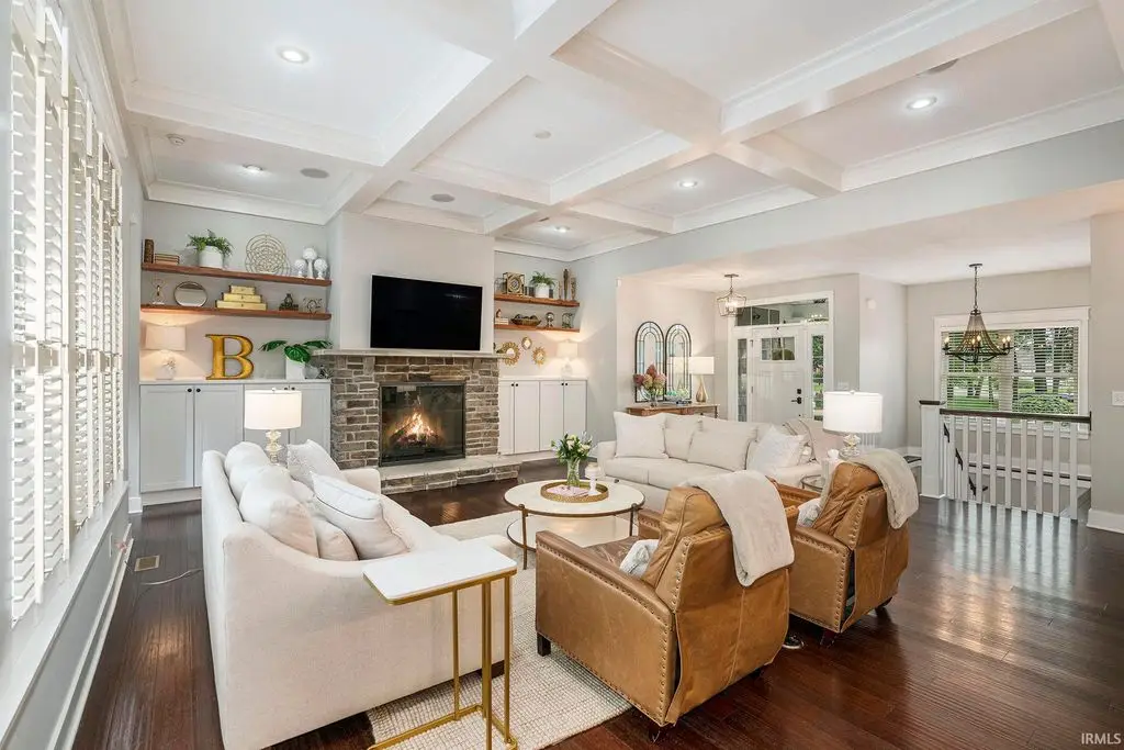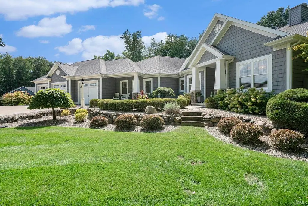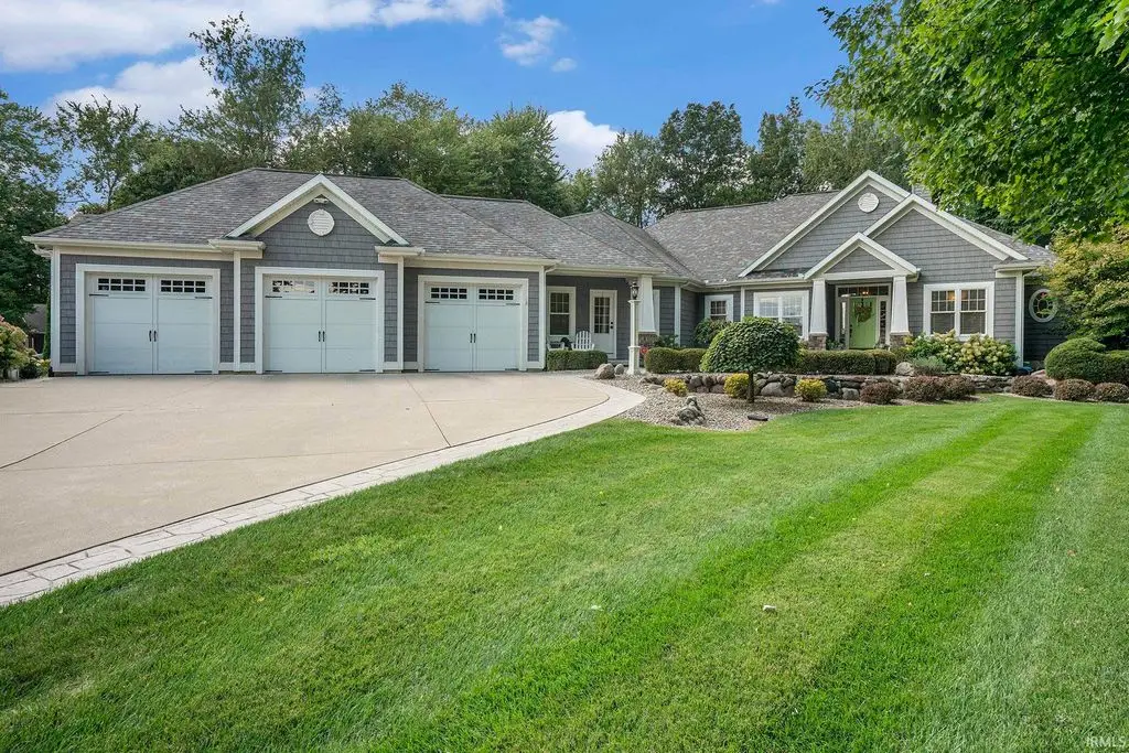 Welcome home to this stunning 5 bedroom executive ranch, located on a beautifully landscaped corner lot in Granger's Copperfield. Step inside to find an open yet cozy family room featuring coffered ceilings, a gas fireplace, and rich bamboo hardwood flooring. Gourmet kitchen includes granite countertops, double ovens, an oversized built-in refrigerator and large center island. Tasteful, high-end finishes throughout. Spacious mudroom and laundry area, accessible through a convenient side entrance, adds to the home's thoughtful layout. Primary suite offers a serene retreat-complete with an elegantly updated bathroom. Jack and Jill suites, each with generously sized closets, can be found on each level of the home. Walkout lower level expands your living space and opens to a partially fenced backyard oasis. Enjoy the inground pool, stone fireplace sitting area, and room to relax or entertain in total privacy. Heated three-car garage with included workout equipment. All TVs included in sale. Furnace new in 2021. Schedule your private showing today!